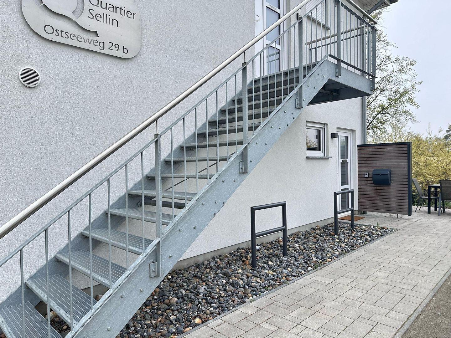 Die ebenerdige Ferienwohnung "Steuerbord 2" im 2017 fertiggestellten Ferienhaus "Quartier Sellin" ist ein gemütliches Zuhause für 3 Personen. Die Wohnung verfügt über eine gepflasterte Terrasse mit Windschutz, Grill und Gartenmöbeln, ideal für entspannte Stunden im Freien.