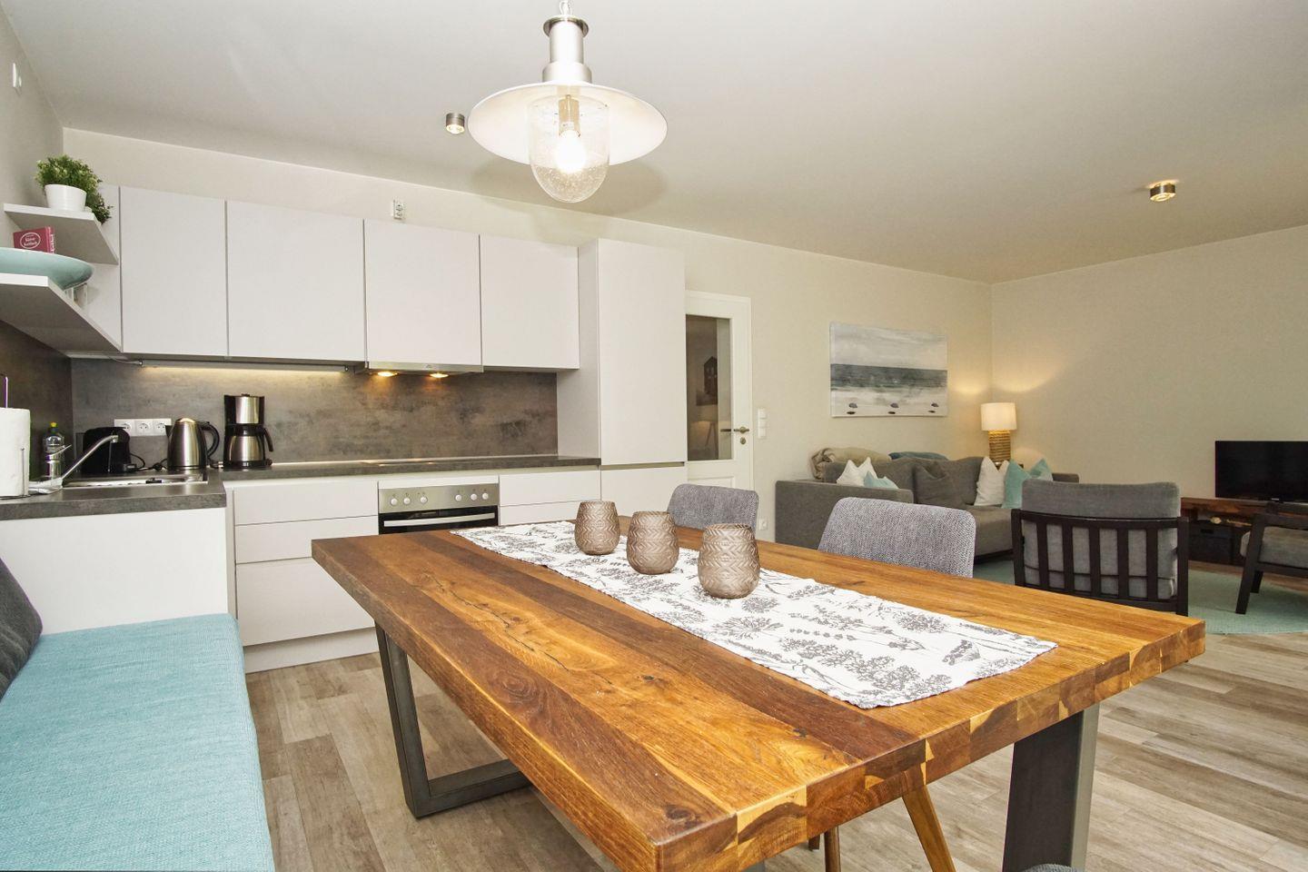KÜCHE // offen Küche, 4-Platten Ceranherd, Spülmaschine, Kühlschrank mit Gefrierfach, Backofen, Kaffeemaschine, reichlich Besteck, Geschirr und Küchenutensilien ++