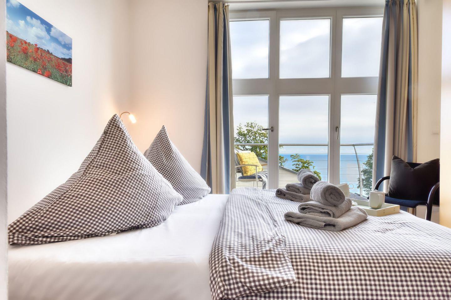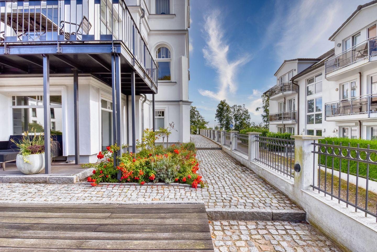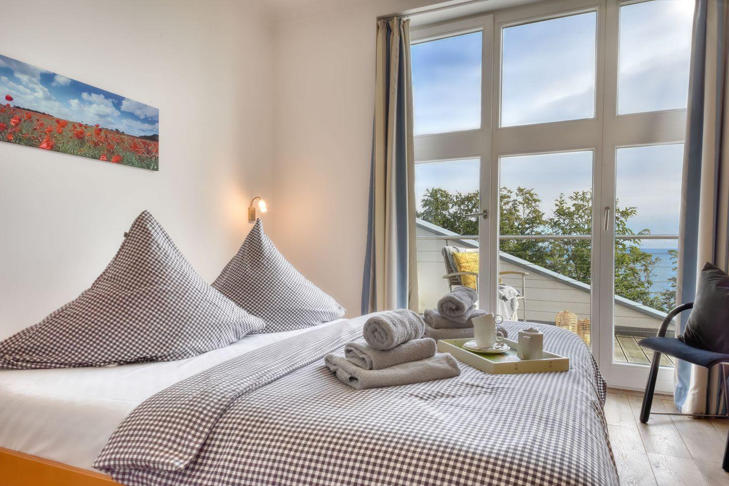 Exklusive Ferienwohnung Bernstein in Sellin mit Meerblick, Sauna, Kamin und drei Balkonen für erholsame Tage an der Ostsee.