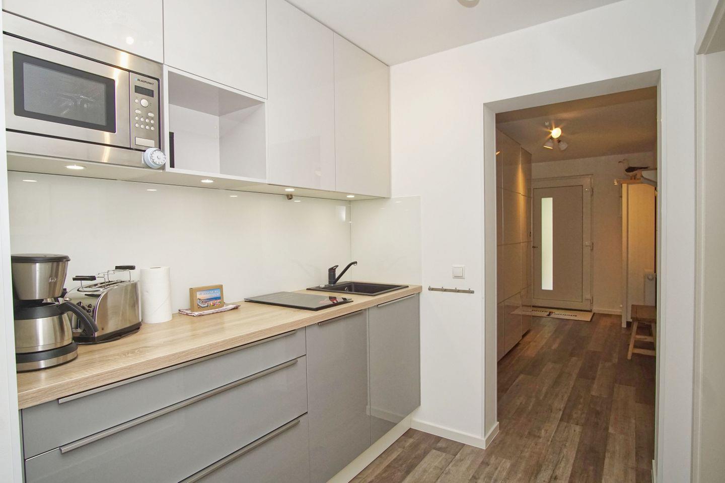 KÜCHE // offen Küche, 2-Platten Ceranfeld, Mikrowelle, Kühlschrank mit Gefrierfach, Backofen, Kaffeemaschine, reichlich Besteck, Geschirr und Küchenutensilien ++