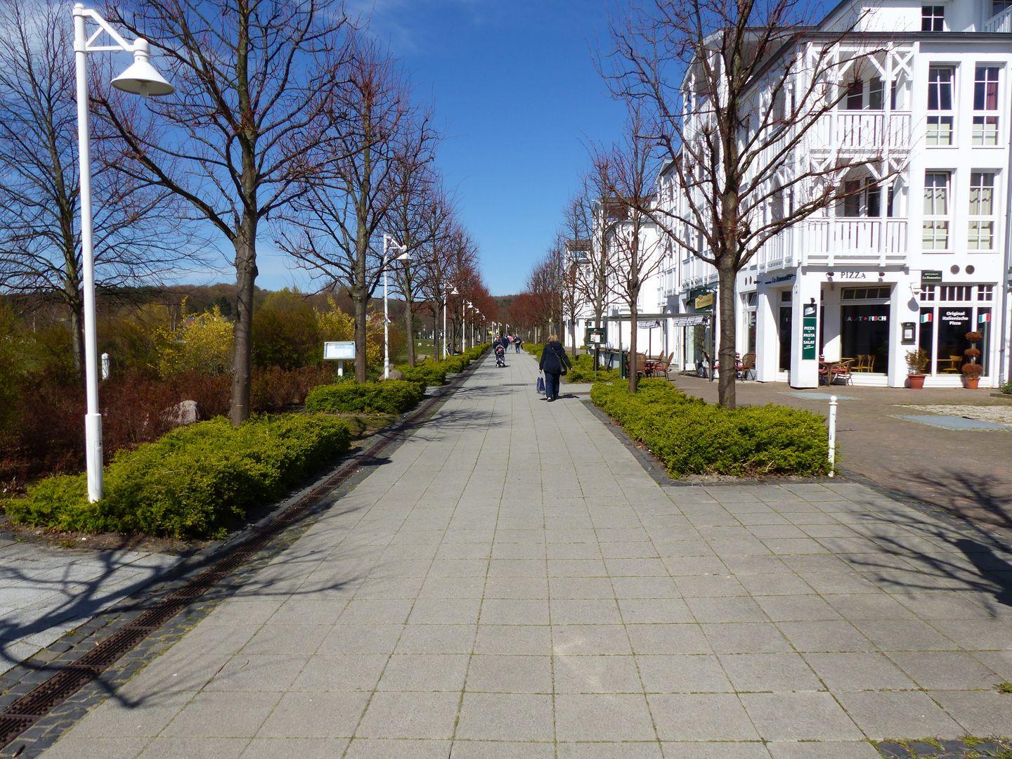 Haus Hühnergott in Sellin liegt optimal im Seebad Sellin. Einkauf, Gastronomie und Nahverkehr sind mit wenigen Schritten zu erreichen. EDEKA ist direkt im Gebäude, ebenso ein Bäcker. Den Südstrand in Sellin erreichen Sie am besten mit den Bäderbahn, die direkt vor der Haustür abfährt.
