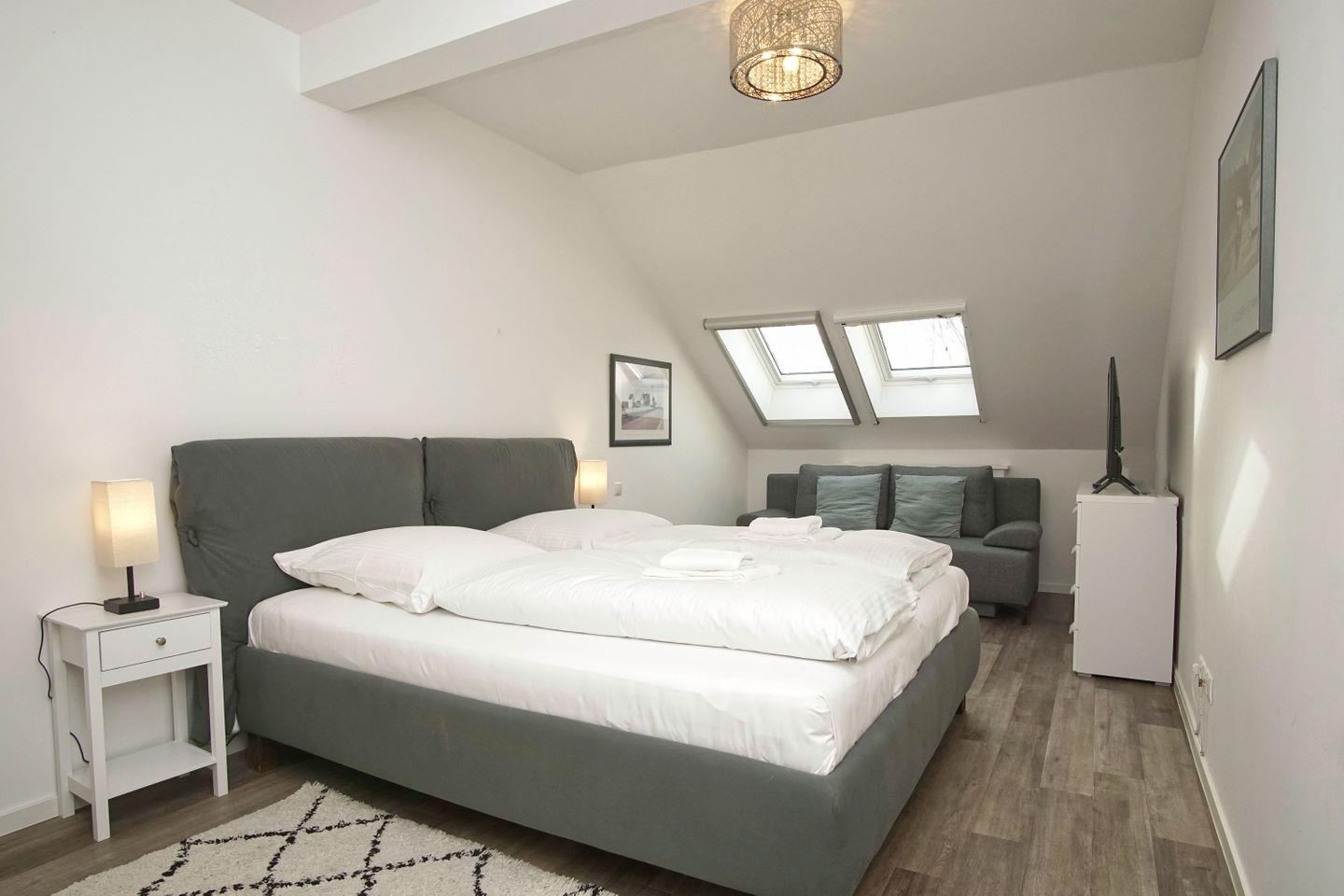 SCHLAFEN // ein Schlafzimmer mit bequemem Boxspringbett, zweites mit bequemem Boxspringbett und Schlafcouch, alle Schlafzimmer mit Flachbild-TV ++