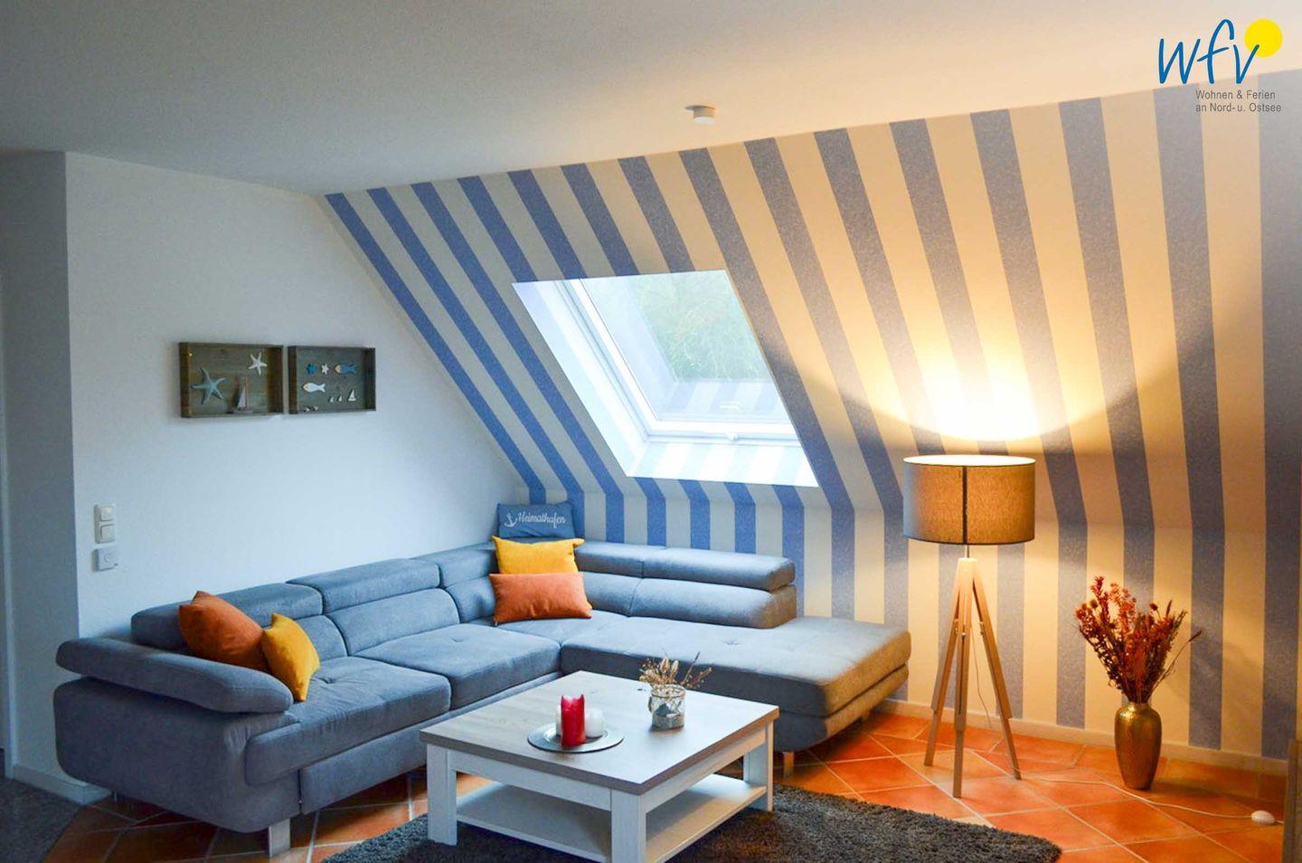 Bereits beim Betreten der Wohnung empfängt Sie eine einladende Atmosphäre. Helle Räume und eine moderne Einrichtung sorgen für Gemütlichkeit, maritime Accessoires für das entsprechende Ostseeflair. Die Maisonettewohnung erstreckt sich ab der 1. Etage über Obergeschoss und Dachgeschoss. Unten empfängt Sie ein offener Wohnraum mit integrierter Küche, Essplatz und Sitzecke mit TV - perfekt für gemeinsame Stunden zum Ausspannen. Oben befindet sich ein separates Schlafzimmer. Vom Wohnraum aus gelangen Sie auf den überdachten Balkon, auf dem Sie auch bei wechselhaftem Wetter entspannt draußen sitzen können. Als besonderes Highlight genießen Sie Seeblick – ideal, wenn Sie Ihren Aufenthalt gern mit einer stimmungsvollen Atmosphäre verbinden möchten, und auch für romantische Auszeiten.