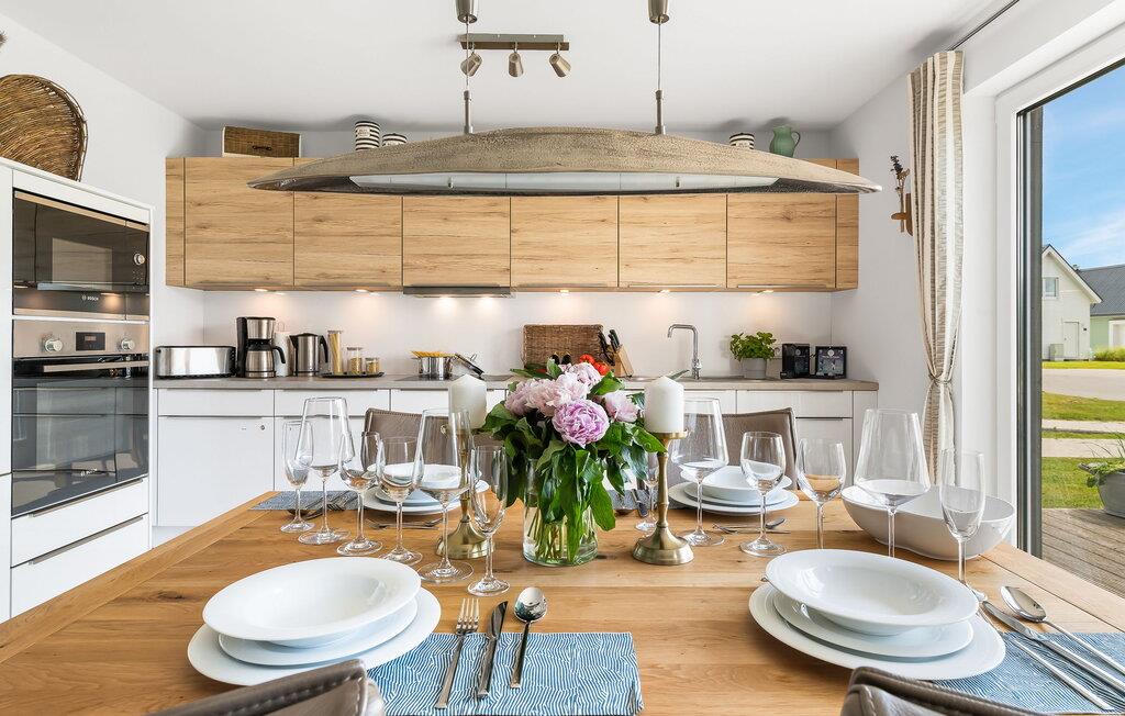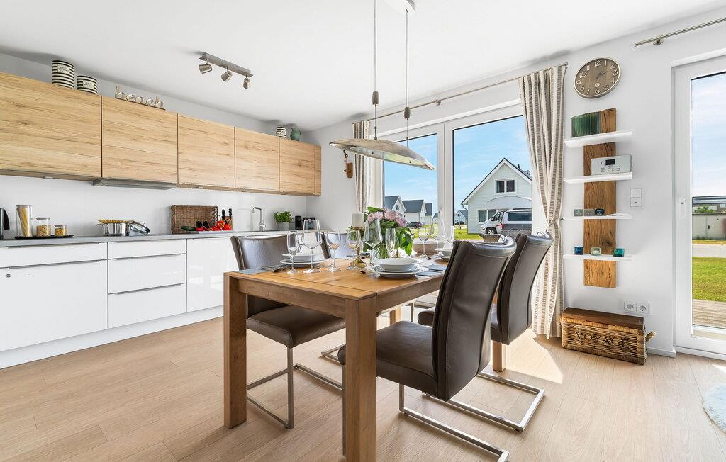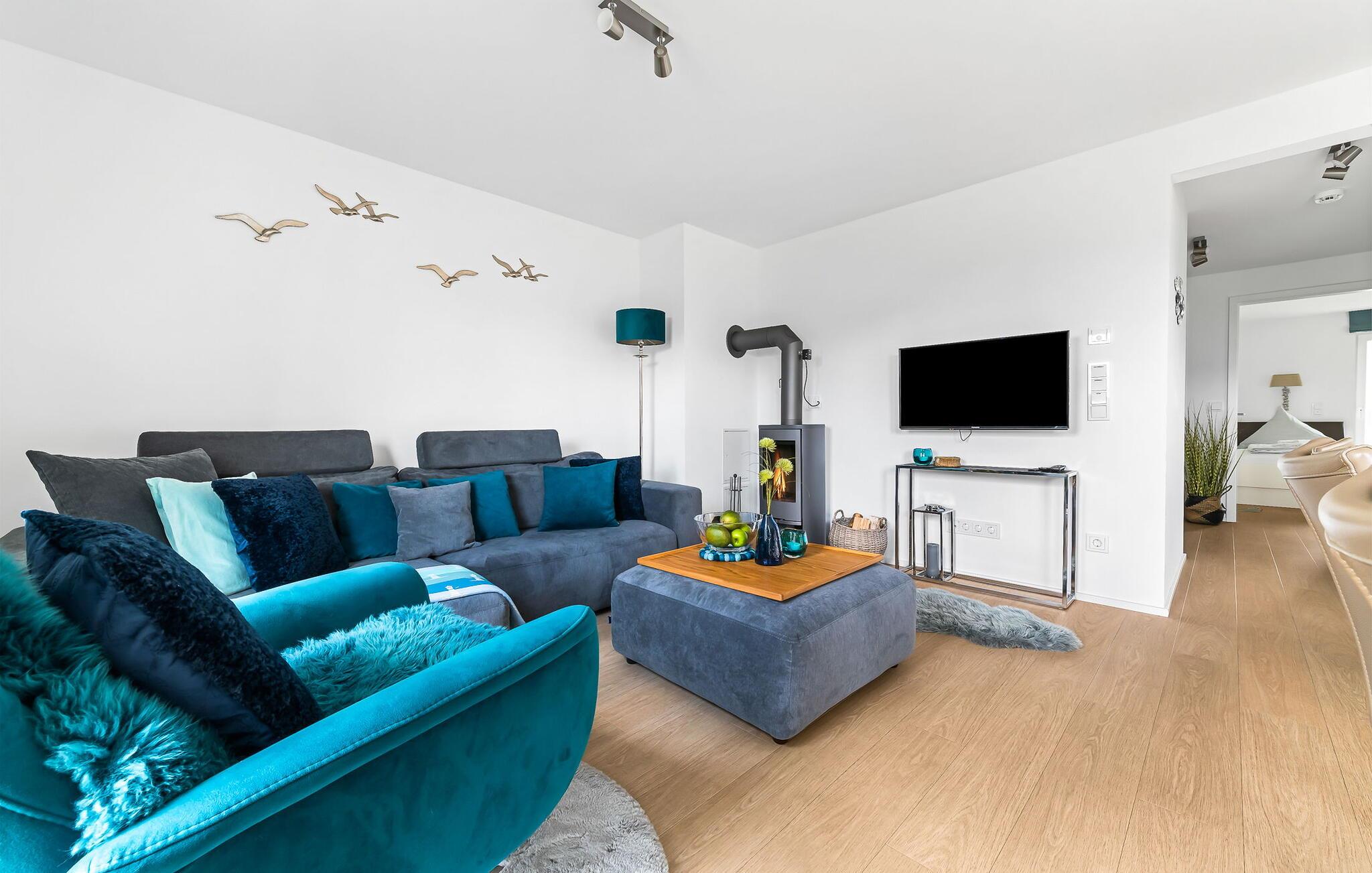 Eintreten und sich sofort Zuhause fühlen! Mit seiner bodentiefen Fensterfront und der angrenzenden großen Terrasse ist der offene Wohn-/Essbereich das Herz der Wohnung. Auf der Wohnlandschaft mit Kuschelfaktor zu entspannen, aus dem Fenster die Ruhe der Natur genießen oder fernsehen ist Entspannung und Erholung pur! SEUTEN DEERN lässt den Alltag immer mehr entrücken... Einige Gegenstände der Einrichtung sind aus recyceltem Holz aus der Förde gefertigt und holen maritime Stimmung direkt in die Wohnung. Sollte das Wetter sich einmal von der nordischen Seite zeigen, sorgt der Kaminofen mit seinem prasselnden Feuer für weitere Behaglichkeit.