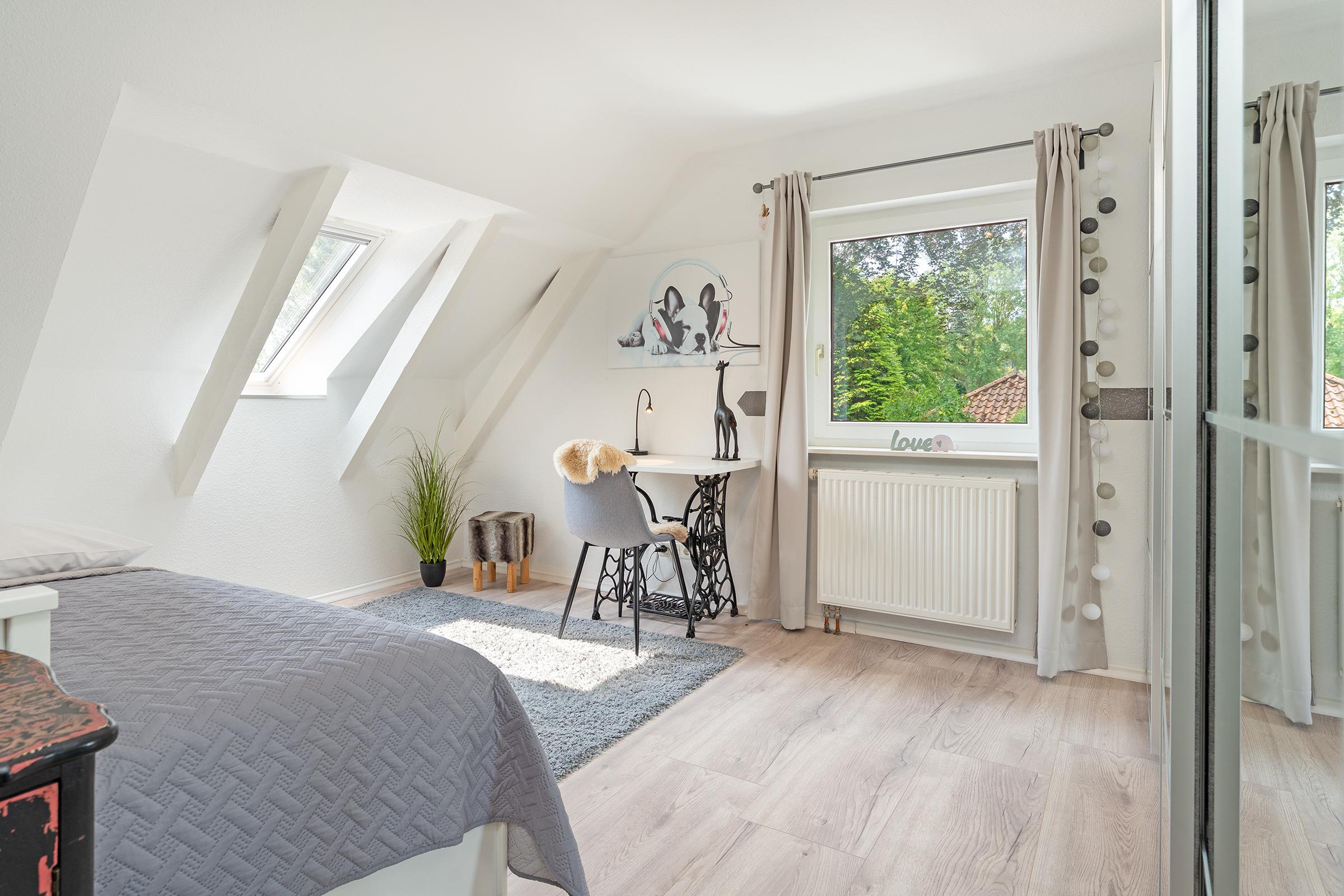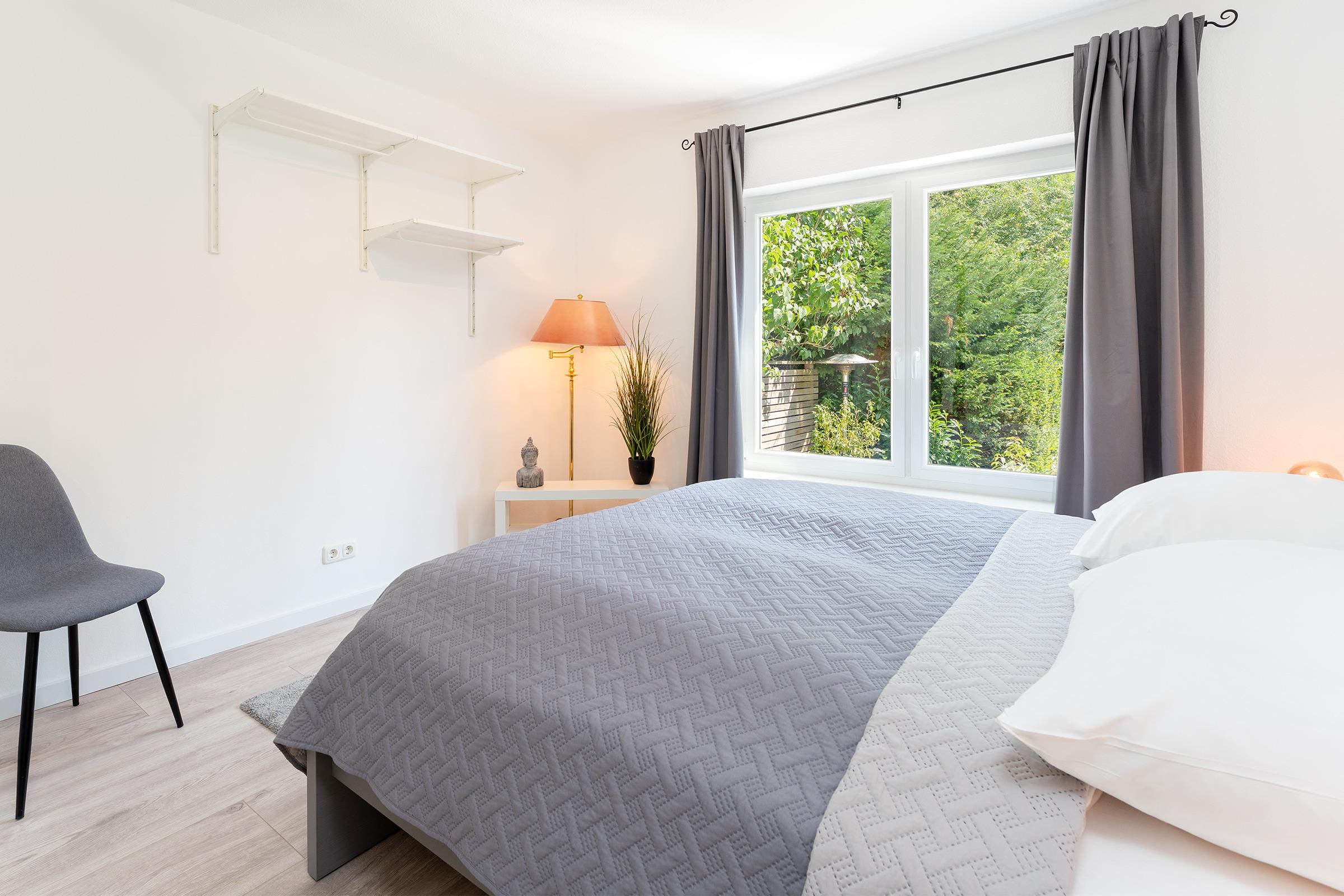 Im Obergeschoss befinden sich drei gemütlich eingerichtete Schlafzimmer: Das erste Schlafzimmer ist mit einem komfortablen Doppelbett (180×200?cm) ausgestattet. Im zweiten Schlafzimmer steht ein weiteres Doppelbett (2x 80×200?cm) zur Verfügung. Das dritte Zimmer bietet ein Schlafsofa (140×200?cm) und eignet sich ideal für Kinder oder flexible Schlafmöglichkeiten. Im Erdgeschoss befindet sich ein weiteres Schlafzimmer mit einem Doppelbett (2x 90×200?cm) – ideal für Gäste, die auf eine ebenerdige Unterkunft angewiesen sind oder einfach mehr Rückzugsmöglichkeiten wünschen. Ihre Urlaubsgarderobe verstauen Sie mühelos im jeweiligen Kleiderschrank. Im Obergeschoss erwartet Sie ein modern ausgestattetes Vollbad. Zusätzlich befindet sich im Erdgeschoss ein praktisches Gäste-WC.