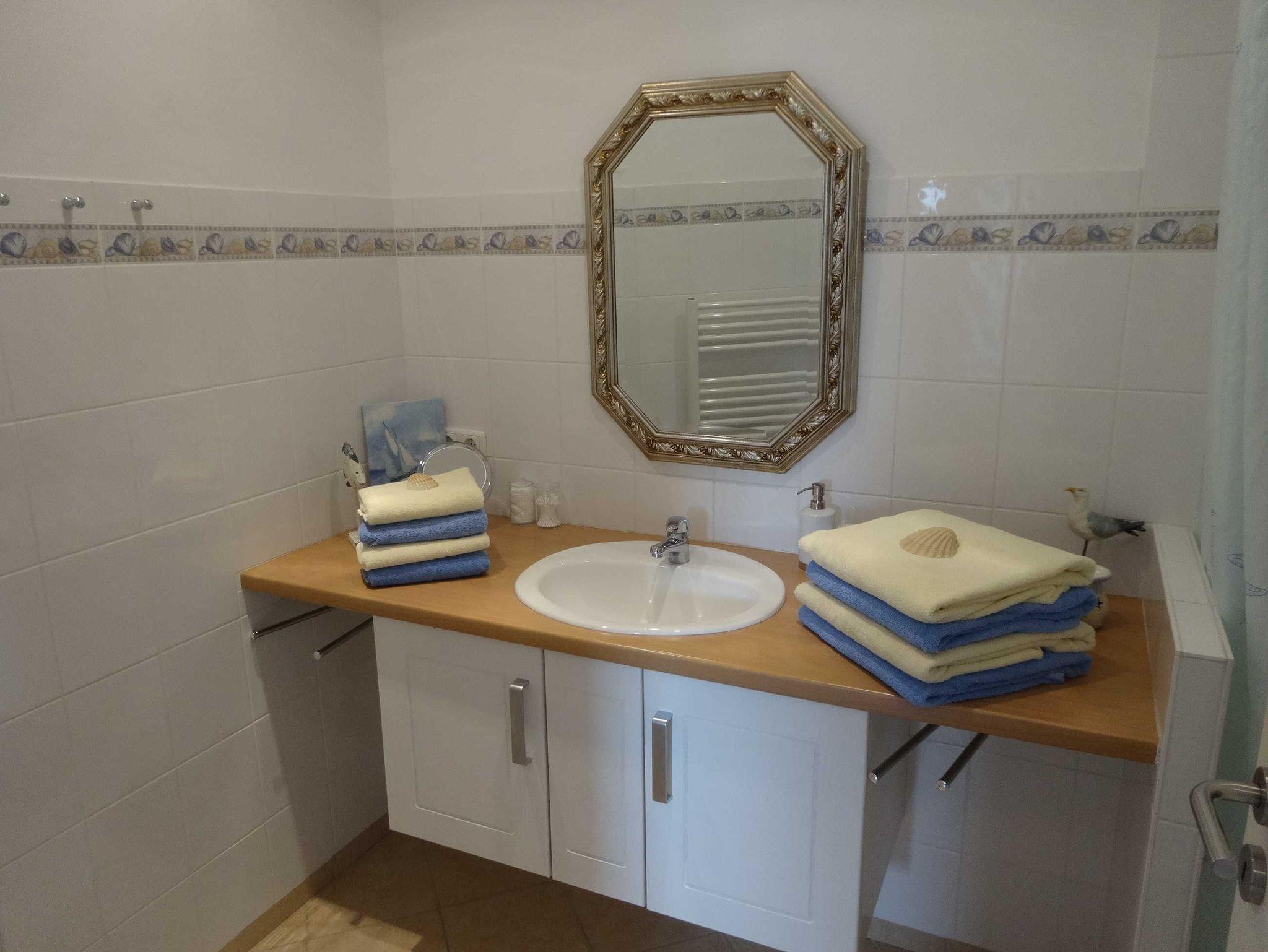 Das elegante Bad rundet die Ferienunterkunft ab.