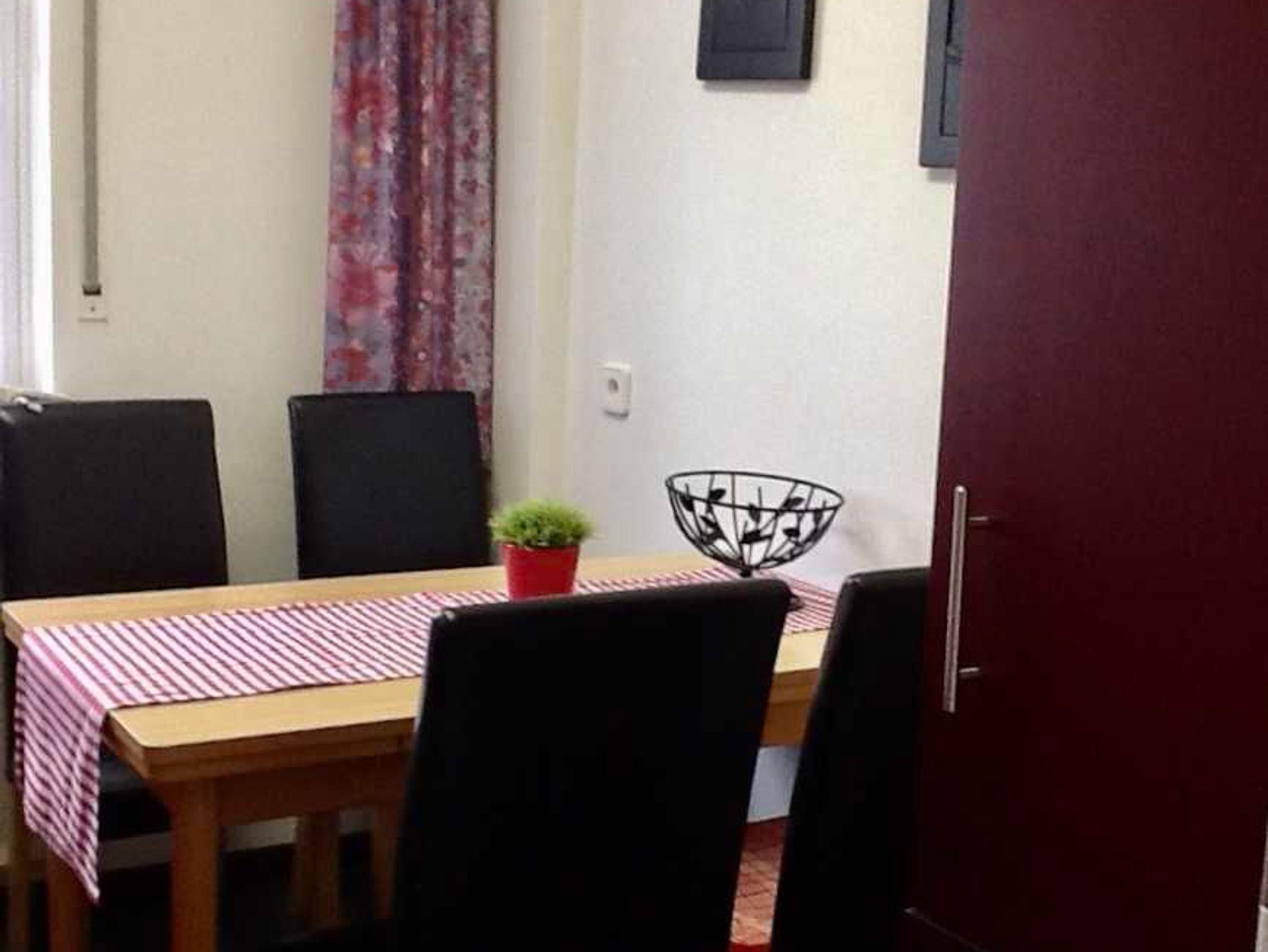 Die Ferienwohnung Nr. 1 liegt ebenerdig und hat einen eigenen Eingang. Vom großen Flur gehen alle Zimmer ab. Es gibt ein separates Schlafzimmer mit Schrank und einem Ehebett (2 x 2 m) und ein weiteres Kinderzimmer mit einem Einzel-/Doppelbett, welches auf 1,60 m ausziehbar ist. Auch im Wohnzimmer kann die Couch als Schlafmöglichkeit genutzt werden (1,60 x 2 m). Das Duschbad ist freundlich weiß/rot gefliest und entsprechend eingerichtet. Die separate Küche ist mit allem, was man zum Kochen und Genießen braucht, sehr gut ausgestattet. Der Boden besteht teilweise aus Fliesen, Laminat und Teppich und alle Fenster haben ein Außenrollo. Vor der Eingangstür befindet sich eine kleine niedliche Sitzmöglichkeit. Als optionale Serviceleistungen können Bettwäsche und Handtücher dazugebucht werden.