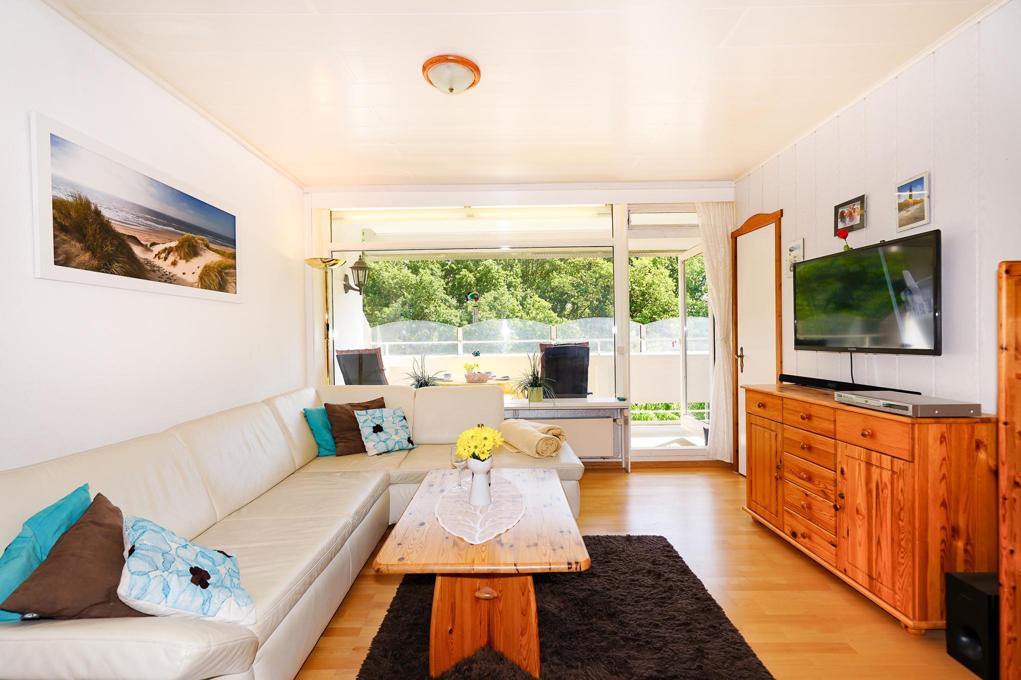 Die Ferienwohnung liegt im 1. Stock eines ruhigen Apartmenthauses in der Panoramic Ferienanlage Sierksdorf und hat eine Größe von etwa 50 Quadratmetern.