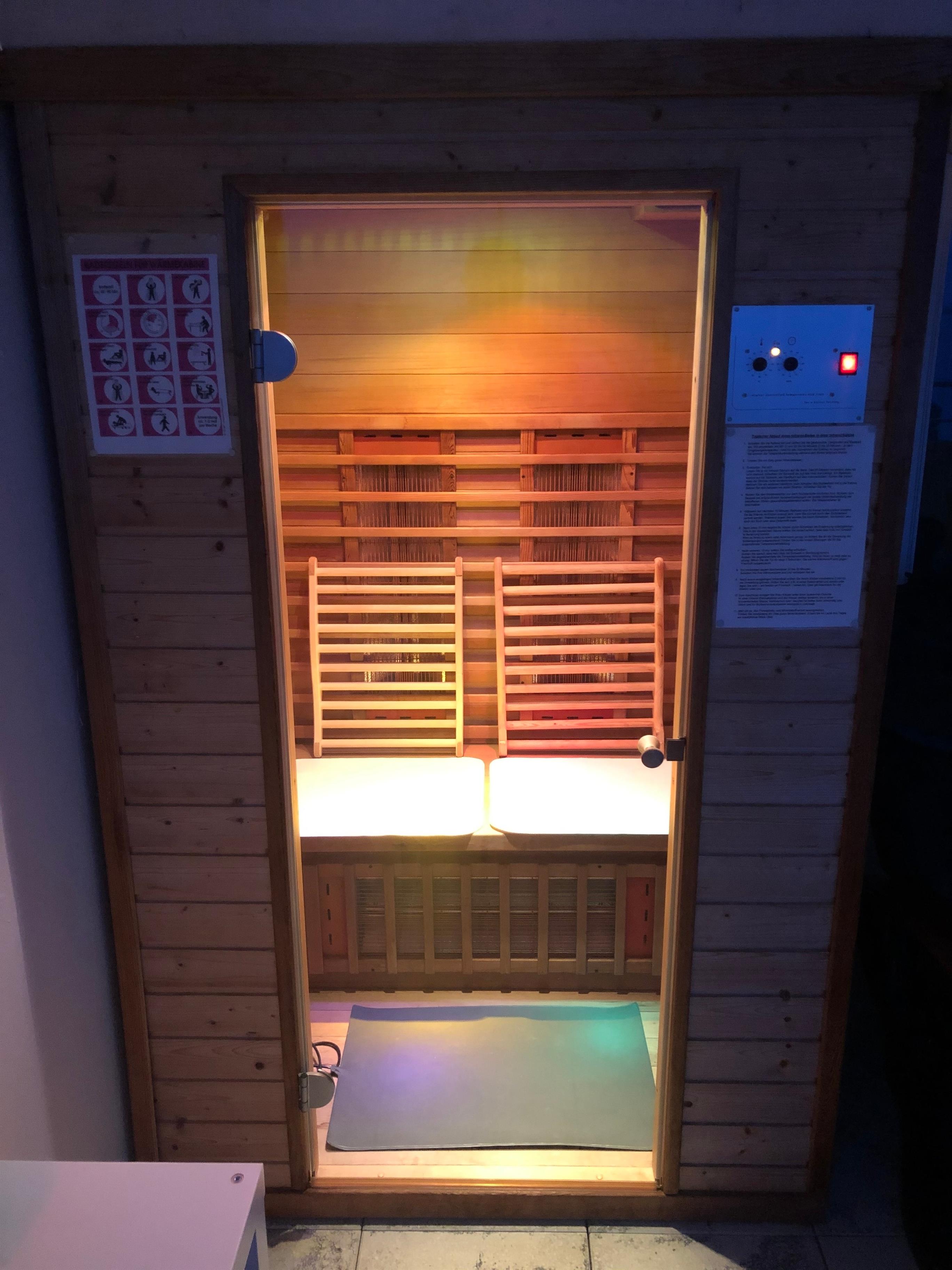 Damit Sie sich in Ihrem Penthouse ausgiebig erholen können, haben wir uns überlegt, unseren Gäste etwas ganz Besonderes zur Verfügung zu stellen: eine Infrarot-Wärmekabine. Die hier erzeugte Wärme ist vergleichbar mit der angenehmen und positiv wirkenden Strahlung der Sonne. Im Gegensatz zu einer klassischen Sauna werden in einer Wärmekabine Temperaturen um 45 Grad bereits als sehr angenehm empfunden. Herz & Kreislauf werden weniger belastet. Daher ist die Benutzung auch älteren Menschen & Kindern zu empfehlen. Vor allem, da die Anwendung eine positive Wirkung auf verschiedene Bereiche des Körpers haben kann wie z.B. Rückenschmerzen, Migräne und nervöse Spannungen. Zusätzlich zu den angenehm warmen Temperaturen der Wärmekabine (ca. 40-70 Grad) sorgen eine spezielle Farblichttherapie, erholsame Musik sowie anregende Aromastoffe für eine größtmögliche Entspannung. Unser Highlight: Entspannen Sie in unserer Wärmekabine und genießen Sie auch von dort den Panoramablick aufs Meer!