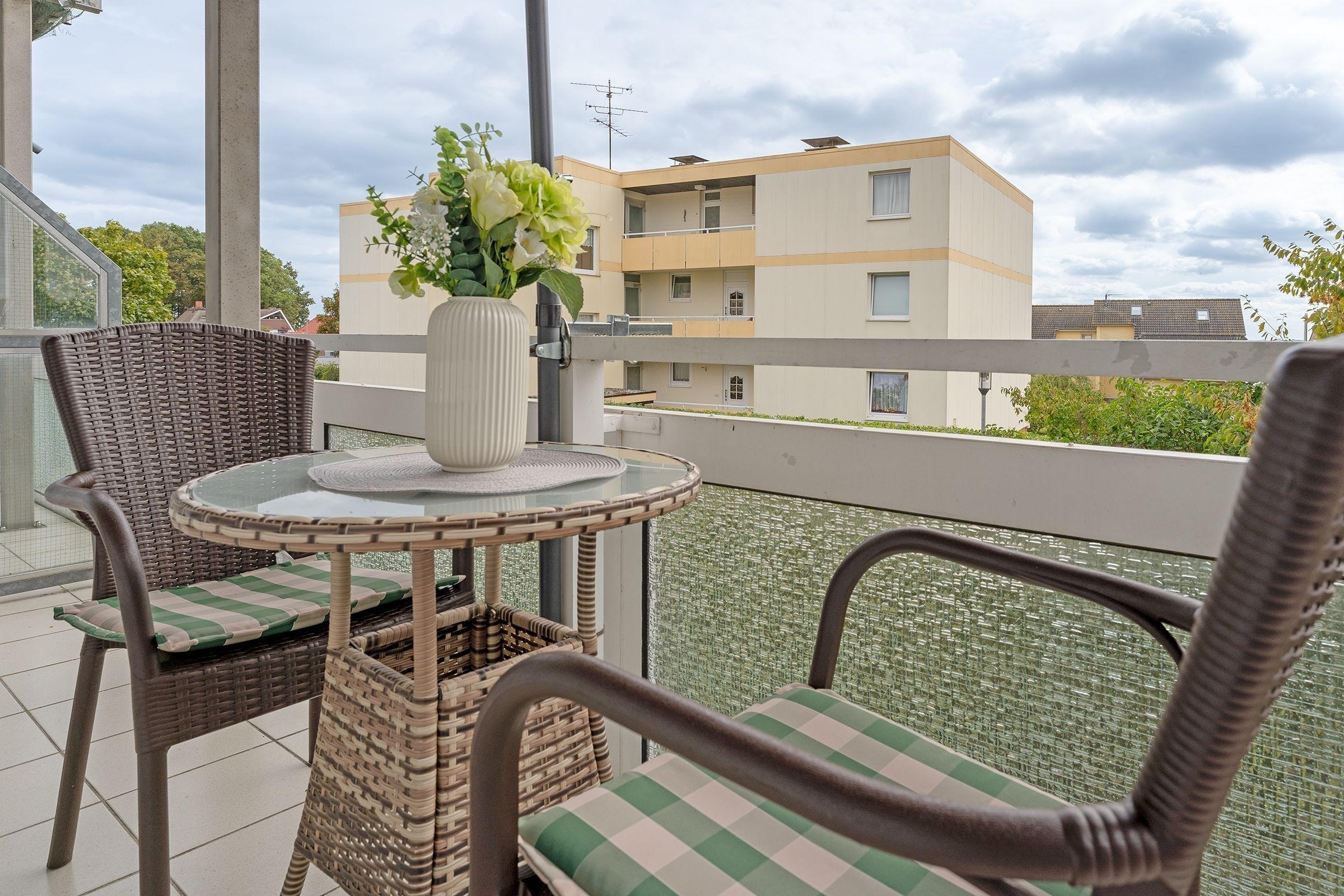 Gemütliche Ferienwohnung mit Balkon und Meerblick nahe dem Strand in Sierksdorf, ideal für Paare und mit Haustier erlaubt.