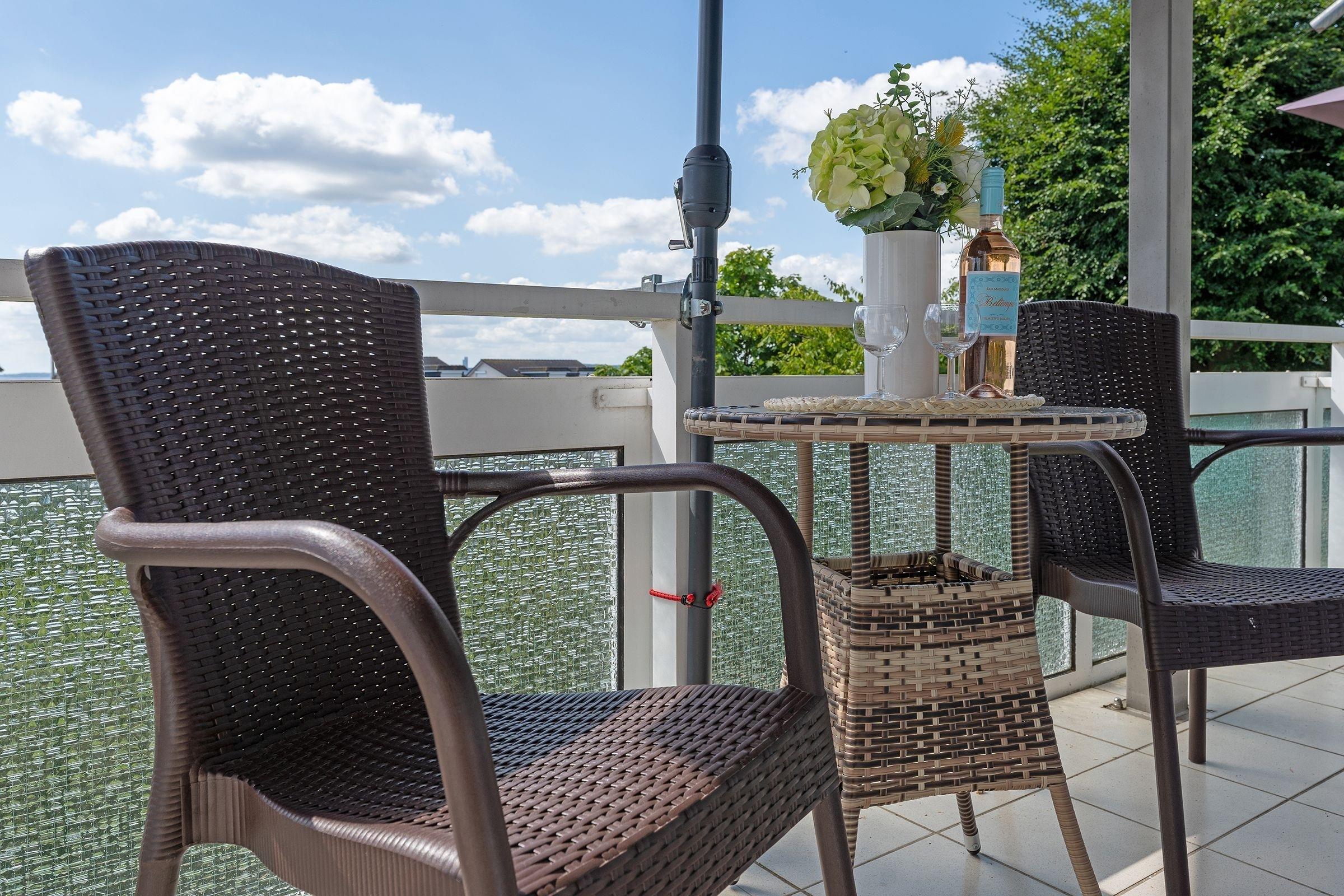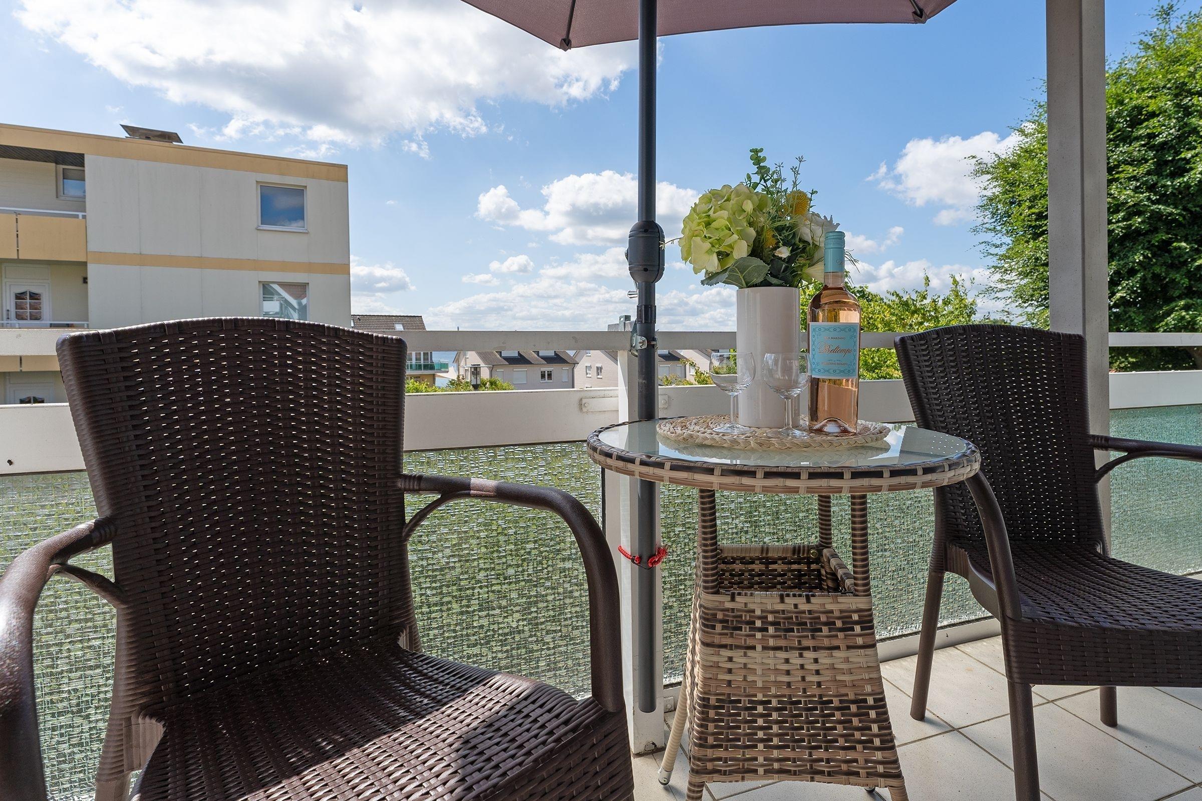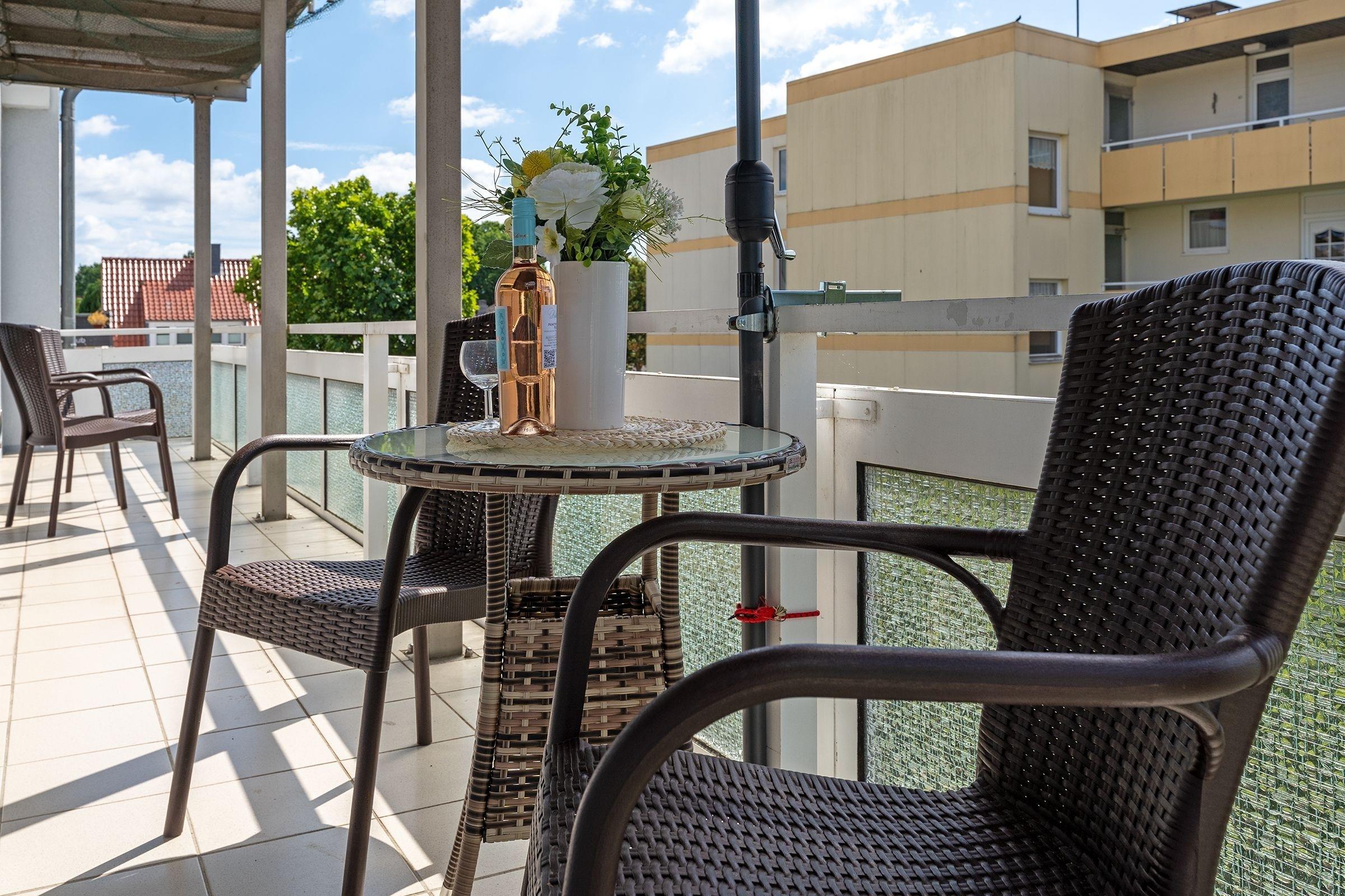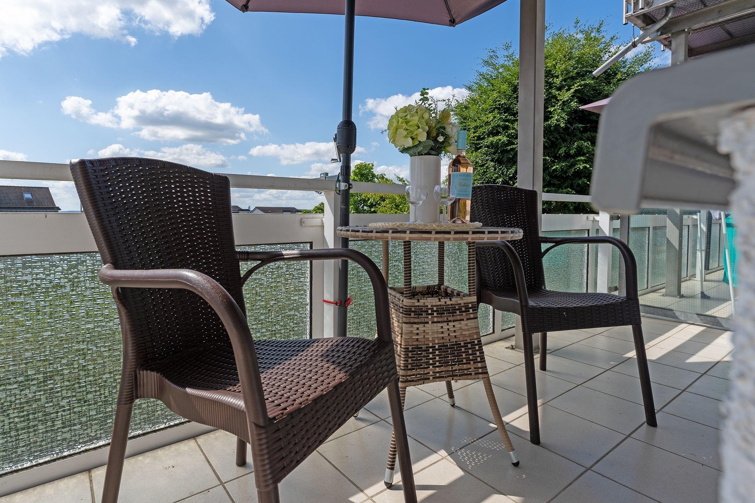 Gemütliche Ferienwohnung mit Balkon und Meerblick in Sierksdorf, nur wenige Schritte vom Strand und Hansa Park entfernt.
