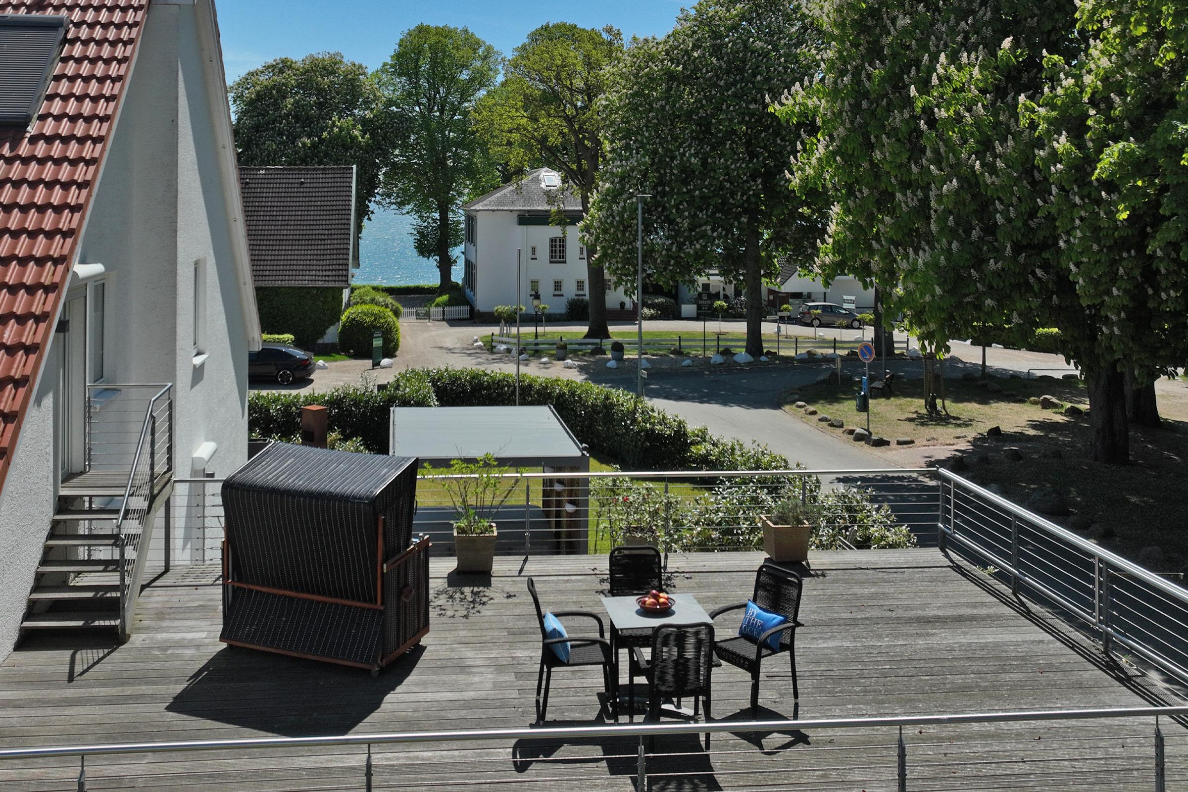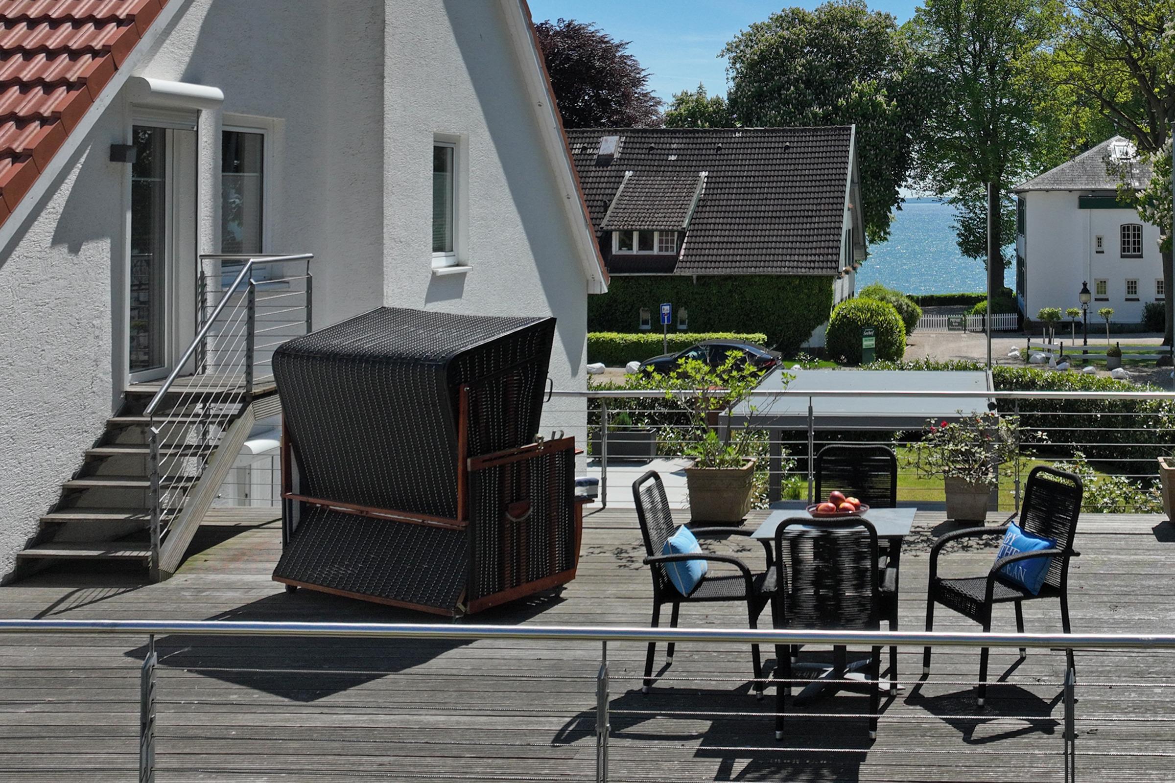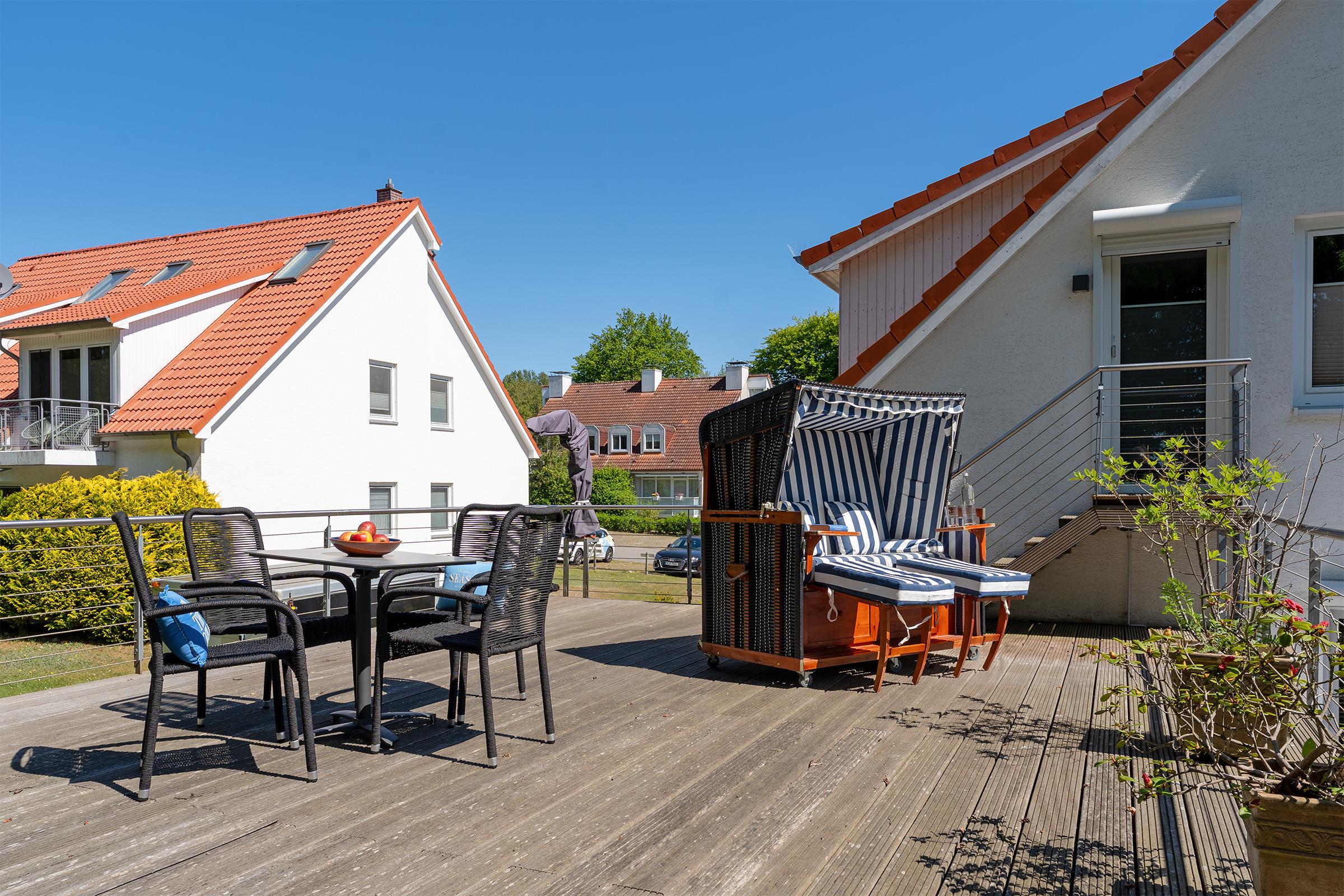 Moderne Ferienwohnung Seemöwe in Sierksdorf mit Balkon, Terrasse und Meerblick, nur wenige Schritte vom Strand entfernt.