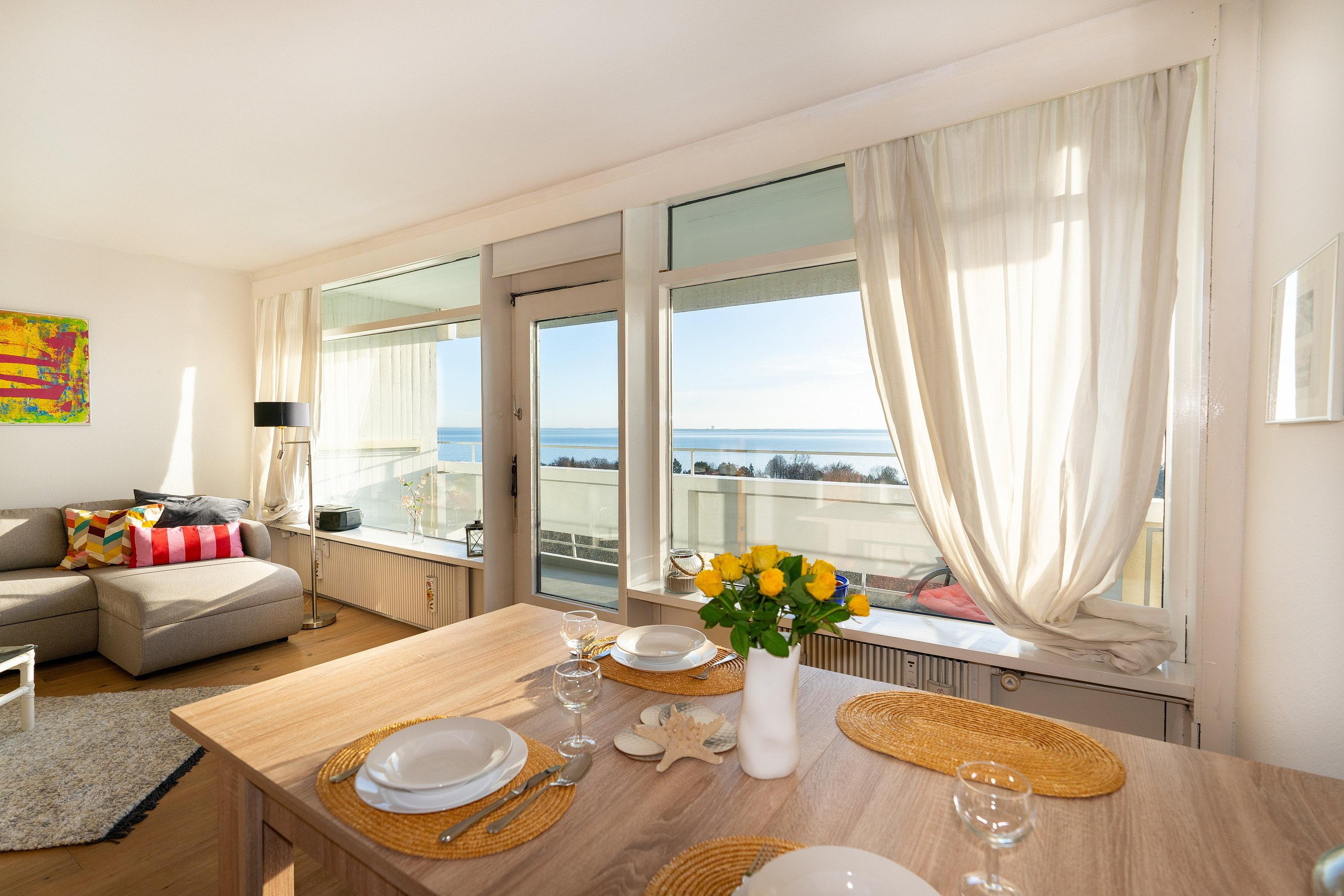 Die Captains Lounge in Sierksdorf bietet Ihnen auf 42 m² ein durchdachtes Ambiente für einen entspannten Aufenthalt an der Ostseeküste. In nur 500 Metern erreichen Sie sowohl das Meer als auch den feinsandigen Ostseestrand, sodass Sie jederzeit ausgedehnte Spaziergänge am Wasser oder ein erfrischendes Bad genießen können. Die Unterkunft besticht durch einen außergewöhnlich guten Meerblick, den Sie sowohl vom Innenraum als auch vom Balkon aus entspannt erleben können. Die großzügige Studiosuite ist ein optimal geschnittener, offen gestalteter Wohnraum ohne separates Schlafzimmer, der dennoch zwei komfortable Schlafmöglichkeiten bietet. Entspannen Sie sich in der gemütlichen Sofaecke und lassen Sie den Blick durch große Fensterfronten bis zur Ostsee schweifen. Ein stilvoller Essbereich, moderne Garderobe und praktische Details wie ein Staubsauger oder Abfalleimer ergänzen den hohen Wohnkomfort. Im Wohnzimmer sorgt ein kleines TV-Gerät für Unterhaltung in ruhigen Stunden. Die Küche ist offen zum Wohnbereich gestaltet und mit zahlreichen Annehmlichkeiten wie Backofen (Elektroanschluss), 4-Platten-Herd, Kühlschrank mit Gefrierfach, Kaffeemaschine, Wasserkocher sowie ausreichend Küchenutensilien, Geschirr und Besteck ausgestattet. Dies ermöglicht Ihnen die unkomplizierte Zubereitung eigener Mahlzeiten. Der Esstisch bietet einen schönen Platz für gemeinsame Mahlzeiten mit direktem Ostseeblick. Das Badezimmer verfügt über ein modernes Waschbecken, Spiegel und einer Dusche. Für längere Aufenthalte stehen Ihnen zudem gemeinschaftlich nutzbare Waschmaschine und Trockner zur Verfügung. Die Wohnung befindet sich im 7. Stock und ist via Aufzug zu erreichen. Für Ihr Fahrzeug steht ein Privatparkplatz in der Tiefgarage vor dem Haus zur Verfügung. In der unmittelbaren Umgebung haben Sie zahlreiche Freizeitmöglichkeiten: Von Aktivitäten wie Beachvolleyball, Bowlen, Fitness-Training und Joggen bis hin zu Angeln, Minigolf, Tennis oder Radtouren. In der Nähe befinden sich zudem ein Freizeitpark und mehrere Spielplätze, sodass auch für Abwechslung und Unterhaltung gesorgt ist. Auch Fans von Pilates und Yoga finden im Umfeld Angebote. Das Schwimmbad im Nebengebäude mit einem 25-Meter-Becken können Sie gegen eine Gebühr nutzen. Der beliebte Freizeitpark Hansa-Park ist in wenigen Minuten fußläufig erreichbar – und dennoch hört man ihn nicht, denn das Apartment liegt auf der abgewandten Seite der Anlage. Sie finden Einkaufsmöglichkeiten in etwa 3 Kilometer Entfernung, Restaurants sind in ca. 600 Metern bequem erreichbar. Der Bahnhof und der nächste Anschluss an den öffentlichen Nahverkehr sind jeweils nur rund 500 Meter entfernt, sodass auch eine Anreise ohne Auto problemlos möglich ist. Es handelt sich um eine Nichtraucherwohnung – wir bitten um Ihr Verständnis. Die Captains Lounge vereint modernen Komfort und eine hervorragende Lage mit einem besonderem, maritimen Flair. Sie eignet sich ideal für Paare oder Einzelreisende, die Wert auf eine gepflegte Unterkunft mit außergewöhnlichem Meerblick und direkter Strandnähe legen. Sichern Sie sich Ihren Aufenthalt und erleben Sie entspannte Tage an der Ostseeküste.
