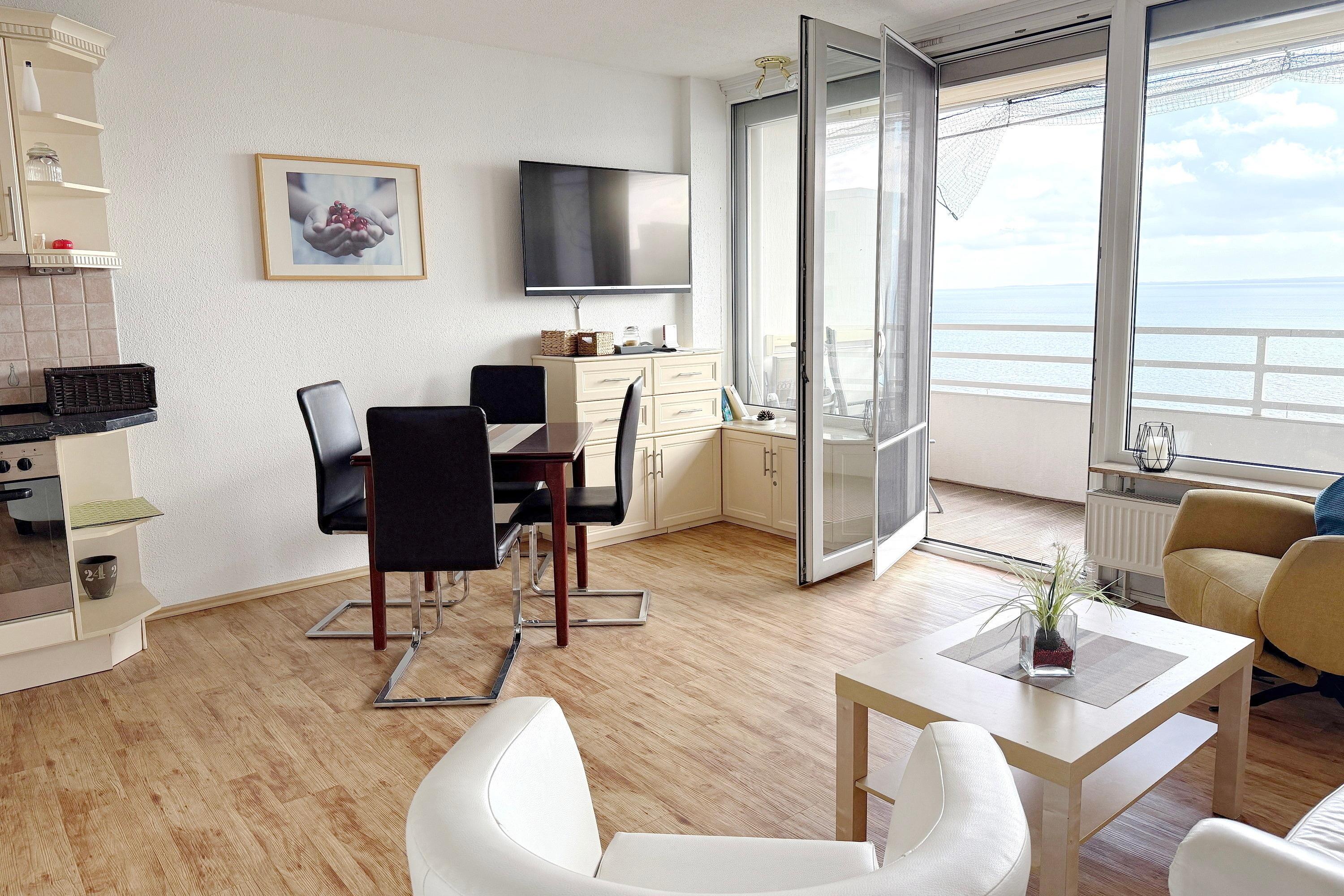 Moderne Ferienwohnung im 10. Stock mit Panoramablick auf die Lübecker Bucht und Balkon in Sierksdorf.