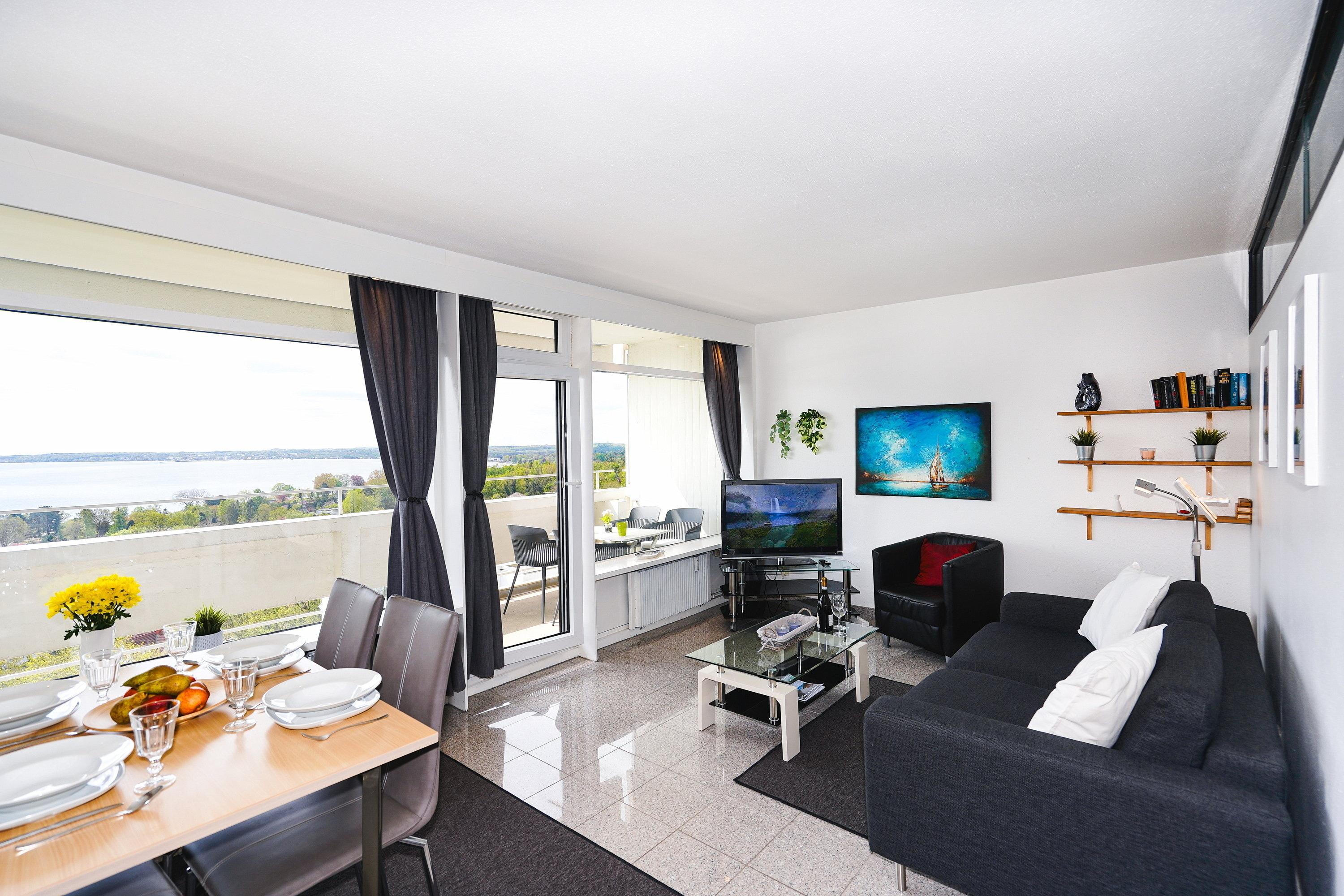 Mit Traumblick über die Ostsee den Urlaub bei einem Kaffee oder Gläschen Rotwein genießen, ein schöne Vorstellung. Ausgiebige Spaziergänge am feinsandigen Strand, auf dem Balkon die Sonne genießen oder in der nahe gelegenen Strandbar den Abend ausklingen lassen und dem Wellenrauschen zuhören. Nur 500 Meter trennen Sie von der Ostsee, der Blick ist bereits da. Das behaglich eingerichtete und etwa 40 m² große Apartment befindet sich in der 12. Etage in der Panoramic-Anlage, direkt neben dem Hansapark. Die kürzlich modernisierte Wohnung verfügt über ein Schlafzimmer mit Doppelbett und ein ausziehbares Schlafsofa, eine moderne, offene Küche mit großzügigem Essbereich sowie ein modernes Badezimmer mit Dusche. Gourmets und Feinschmeckern bietet die praktische und voll ausgestattete Einbauküche Gelegenheit, auch leckere Gerichte zuzubereiten. Der Balkon mit Traumblick über die Lübecker Bucht ist mit wetterfesten Möbeln eingerichtet. Ein großer Flachbildfernseher gehört ebenfalls zur Einrichtung der Ferienwohnung. Bettwäsche und Handtücher bringen Sie bitte selbst mit oder buchen diese bequem gegen Aufpreise hinzu. Haustiere sind in der Wohnung nicht erlaubt. Für das Auto steht ein privater Stellplatz bereit. W-Lan steht in dieser Wohnung ebenfalls zur Verfügung. In der Anlage können Sie das Schwimmbad mit einem 25-Meter-Becken gegen Gebühr nutzen. Auf dem Gelände befindet sich eine Grünanlage mit Tischtennisplatten, Tennis- (gegen Gebühr), Basketball-, und Boccia-Platz zur gemeinschaftlichen Nutzung.