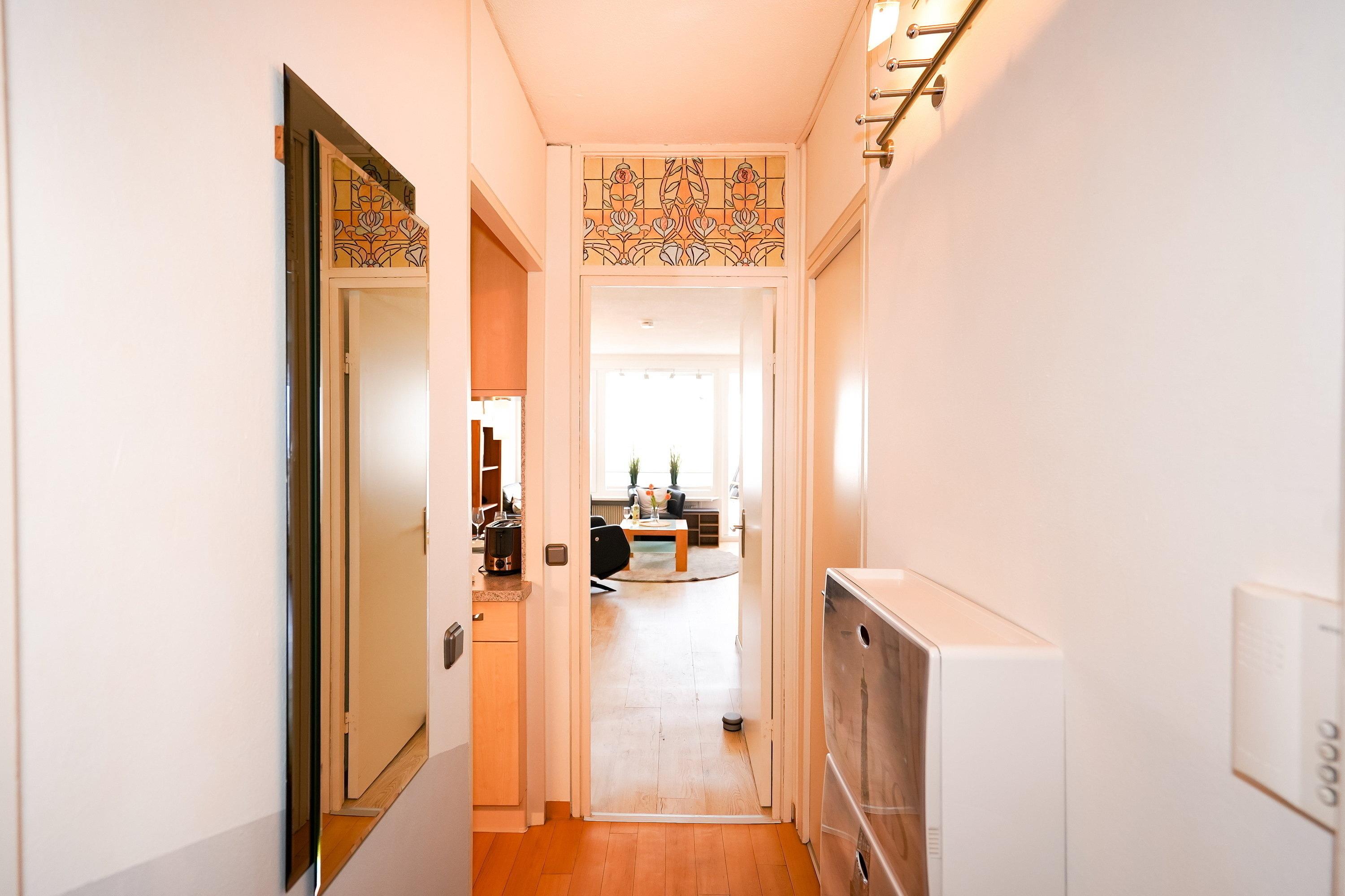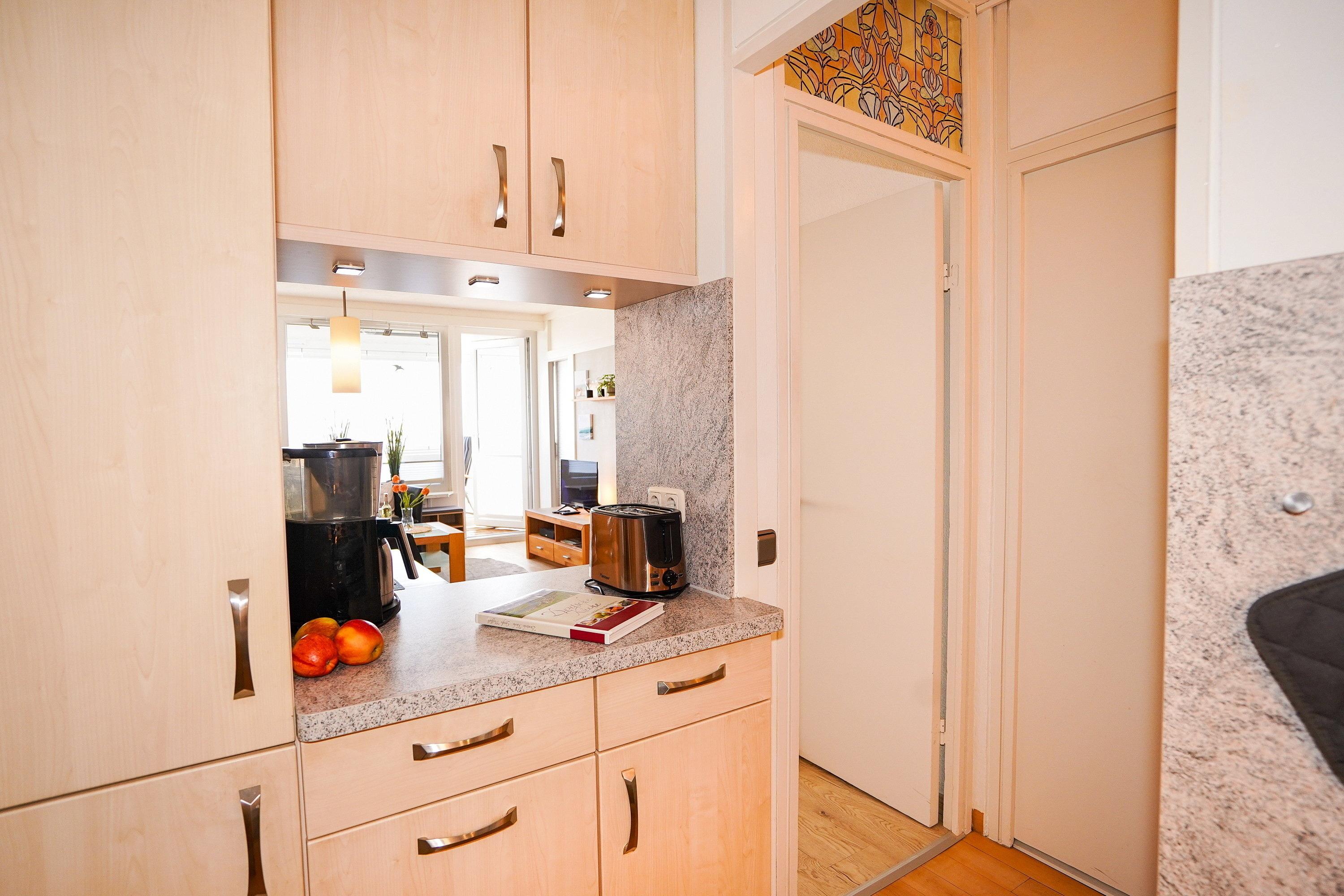Traumblick- Fewo mit tollem Meerblick für einen entspannten Urlaub für 2 -4 Personen mit kleinem Hund Schönes 42 qm Apartment im 9. Stock mit Ausrichtung zur Ostsee mit traumhaftem Meerblick auf die Lübecker Bucht. Die Ferienwohnung ist gut ausgestattet mit einer hochwertigen Ledergarnitur und zwei passenden Sesseln, einem verglasten Balkon (teilweise oder komplett zu öffnen) mit Frühstückstisch und Sitzgelegenheit. Ihr neuer Lieblingsplatz am Meer. Eine gut ausgestattete Küche, mit Geschirrspüler, Mikrowelle und allem, was man im Urlaub benötigt. Und auch die Kaffeegenießer kommen hier zum Zuge. Eine Kaffeemaschine und eine zusätzliche Nespresso Kapselmaschine warten auf Sie. Sonne, Kaffee ein schöner Platz und einfach drauf los genießen - herrlich! Der Schlafbereich ist mit zwei Türen versehen, so dass man von beiden Seiten leicht ins Bett steigen kann. Sitzend können Sie vom Bett aus den Meerblick genießen (Bettwäsche und Handtücher bringen Sie gern selbst mit oder buchen diese bequem gegen Aufpreise hinzu). Hier finden Sie einen großen Kleiderschrank und Ablagemöglichkeiten. Ins Sonnen-Apartment gelangen Sie über einen der zwei Fahrstühle - kostenloses WLAN (soweit technisch verfügbar) (ab Herbst 2023 via Glasfaser mit 300 MBit super-schnelles und grenzenloses Surfen/Streamen). Waschmaschine (Tümmler) finden Sie zur kostenfreien Nutzung. Ein kleiner Hunde ist erlaubt - Hansa-Park nur 100 m entfernt - nur 400 m zum Strand - Schwimmbad im Nebengebäude mit 27 Grad Wassertemperatur (Eintritt) - Wäschepakete (Handtücher und Bettwäsche) können gern dazu gebucht werden - Urlaub von Anfang an. Schwimmbad am Haus (Gebühr), komplett verglaster Balkon