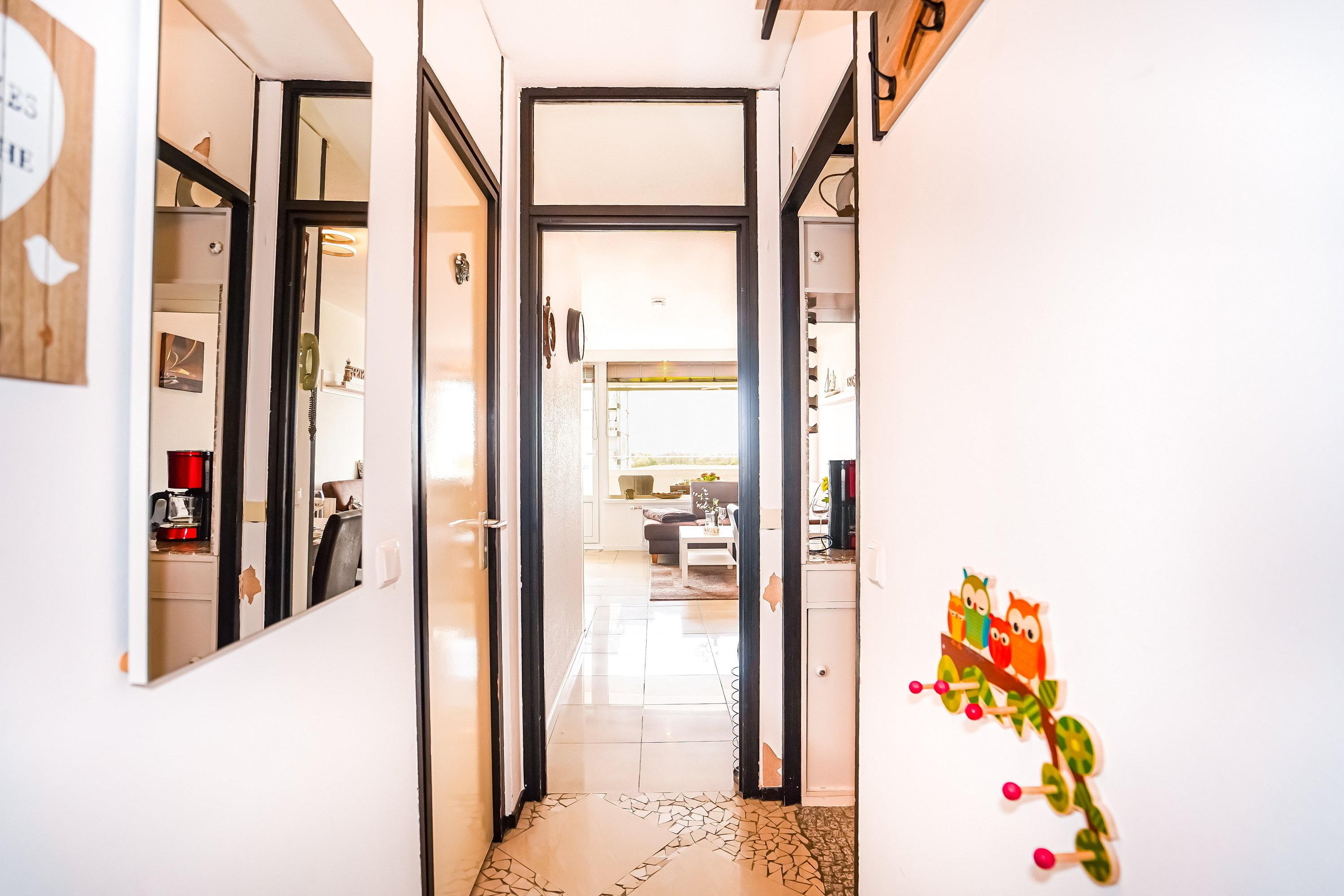 Fewo Poseidon, Ideal für die kleine Familie mit zwei Kindern. Familienurlaub an Hansapark und Ostsee mit beheiztem Schwimmbad in der Anlage. Strandnähe, seitlicher Meerblick und fantastische Abendsonne 3 Zimmer, 40 qm, Balkon, mit kompletter Ausstattung und tollem Blick auf die Lübecker Bucht Fewo Poseidon im 8. Stock, Ideal für die kleine Familie mit zwei Kindern. Familienurlaub an Hansapark und Ostsee mit beheiztem Schwimmbad in der Anlage (Gebühr). Strandnähe, Westausrichtung, seitlicher Meerblick und fantastische Abendsonne. Freuen Sie sich auf ihre 3 Zimmer Ferienwohnung mit 40 qm, Balkon, mit kompletter Ausstattung und tollem Blick auf die Lübecker Bucht. Erholen Sie sich in Ihrem nächsten Urlaub in unserer komplett ausgestatteten Ferienwohnung "Poseidon Sierksdorf" mit bis zu 4 Personen. Genießen Sie nach Ihrem Strandbesuch traumhafte Sonnenuntergänge auf Ihrem Balkon mit bequemen Stühlen und Frühstückstisch. Zwei separate Schlafzimmer, eins mit Oberlicht und zwei Einzelbetten (hochwertige Boxspringbetten 90 x 200 cm) und Nachtisch und ein weiteres Schlafzimmer für die Kids an der Balkonseite mit zwei Etagenbetten (80 x 190 cm). Im Wohnzimmer ist bei Bedarf zusätzlich ein ausklappbares Sofa-Bett (Liegefläche 120 x 180 cm) vorhanden (Bettwäsche und Handtücher bringen Sie selbst mit oder buchen diese bequem gegen Aufpreise hinzu). Im integrierten Wohn-/Esszimmer bietet der Esstisch hinreichend Platz für 4 Personen. Hier finden Sie auch eine großen Flat-TV sowie einen DVD-Player. WLAN steht Ihnen über einen Spot ebenfalls zur Verfügung (soweit technisch verfügbar). Das himmelblaue Badezimmer ist mit einer Badewanne und Duschabtrennung ausgestattet und ist auch für die Kleinen gewappnet (Toilettensitz, kleiner Tritt, Kindersicherungen). In die Ferienwohnung gelangen sie über -2- Fahrstühle. Ein Hund ist hier herzlich willkommen. Wäschepakete (Handtücher und Bettwäsche) können gegen Aufpreis hinzugebucht werden - Urlaub von Anfang an Weitere Highlights für Sie: Der bekannte Hansa-Park ist nur 250 m entfernt und bis zum Strand (auch Hundestrand) sind es fußläufig auch nur 400 m. Das Schwimmbad im Nebengebäude bietet mit 27° Grad eine angenehme Wassertemperatur und ist dazu bequem im Bademantel erreichbar. Eintritt ist separat zu zahlen. Zur Ferienwohnung gehört noch ein kostenloser Stellplatz auf dem zur Anlage gehörenden Parkdeck