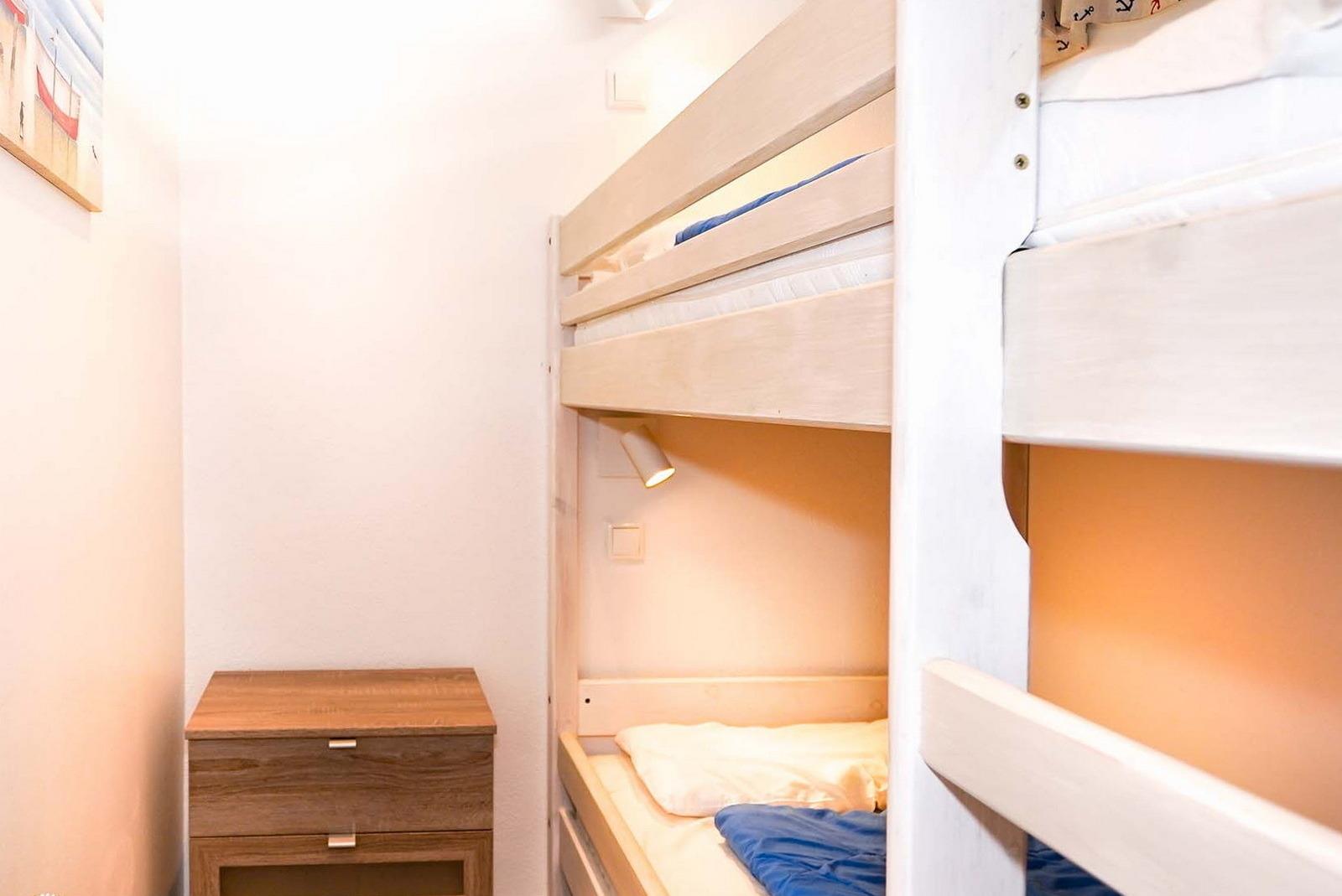Die im Ferienpark Sierksdorf gelegene Ferienwohnung bietet mit einer Wohnfläche von 50 Quadratmetern Platz für 2 bis 4 Feriengäste. Das kürzlich renovierte Ferienapartment hat eine Wohnfläche von etwa 50 Quadratmetern. Von dem mit wetterfesten Möbeln eingerichteten Balkon und vom Wohnzimmer aus gewährt Ihnen die Wohnung einen Traumblick auf die Ostsee. Die komplett ausgestattete Küche enthält alle Geräte und Kochutensilien, um auch mal eigene Gerichte zuzubereiten. Diese können im ansprechenden Essbereich des Wohnraums serviert werden. Ein großer Flachbildfernseher gehört ebenfalls zur Wohnungseinrichtung. Das Badezimmer ist mit einer frei zugänglichen Dusche ausgestattet. Ein komfortables Doppelbett befindet sich im Schlafzimmer der Ferienwohnung, im zweiten Schlafzimmer befindet sich ein Etagenbett. Hunde sind in der Wohnung herzlich willkommen (gegen Gebühr). Die nähere Umgebung bietet reichlich Auslauf für die Vierbeiner und daher beste Bedingungen für einen Urlaub mit Hund. Für das Auto steht ein Außenstellplatz bereit. Da Rauchen in der Ferienwohnung nicht erwünscht ist, wird gebeten, Zigaretten nur auf der Terrasse mit Traumblick auf die Ostsee zu rauchen.