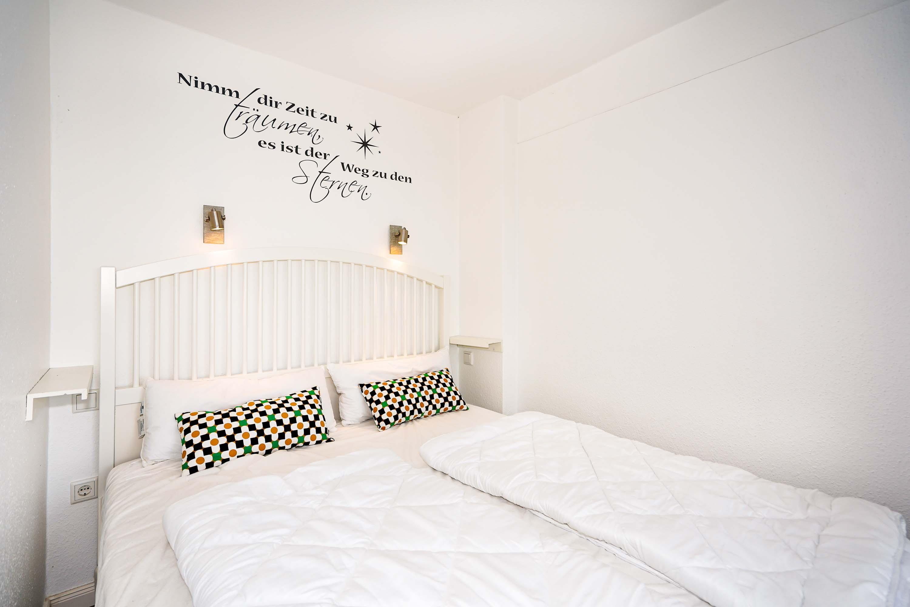 Das geräumige und helle Wohnzimmer verfügt über einen Schlafbereich mit komfortablem Doppelbett, eine Schlafcouch für 2 weitere Besucher sowie über eine offene Küche. Im Küchenbereich finden sich alle Utensilien und Kochgeräte für die Zubereitung eigener Mahlzeiten. Zur weiteren Einrichtung gehört ein großer Flachbildfernseher. Das Bad ist hochwertig mit einer frei zugänglichen Dusche ausgestattet. Ein weiteres ausziehbares Bett, das sowohl als Einzel- als auch als Doppelbett genutzt werden kann, befindet sich im kleineren Schlafzimmer der Ferienwohnung. Die 8 Quadratmeter große und mit Sitzmöbeln und Markise ausgestattete Loggia bietet eine Traumaussicht auf die Ostsee. Ein Nebenzimmer kann als Ankleideraum oder als Aufbewahrungsraum für das Reisegepäck verwendet werden. Zusätzlich steht ein Abstellraum für bis zu 2 Fahrräder bereit (ohne Treppe zugänglich). Hunde sind in der Wohnung herzlich willkommen (gegen Gebühr). Die nähere Umgebung bietet reichlich Auslauf für die Vierbeiner und daher beste Bedingungen für einen Urlaub mit Hund. Für das Auto steht ein Garagenstellplatz bereit. Da Rauchen in der Ferienwohnung nicht erwünscht ist, wird gebeten, Zigaretten nur auf dem Balkon mit Traumblick auf die Ostsee zu rauchen. LAGE Die im Ferienpark Sierksdorf liegende Wohnung befindet sich direkt am Strand. Auf dem Weg bis zum 30 Meter entfernten Ostseestrand muss keine störende Straße überquert werden. Der Urlaub mit Hund wird ebenfalls zu einem Erlebnis am nahegelegenen Hundestrand. Dort dürfen sich die Vierbeiner ohne Leinenzwang austoben. Um die benötigten Utensilien für ein morgendliches Frühstück auf dem Balkon zu besorgen, genügt ein kurzer Spaziergang zum Kiosk des Ferienparks. Weitere Einkaufsmöglichkeiten und Supermärkte liegen etwa 3 Kilometer entfernt. Für einen abwechslungsreichen Urlaub an der Ostsee sorgen die zahlreichen Attraktionen in der Umgebung. Ein Sportflugplatz mit Rundflugangebot, Schwimmbäder, Restaurants mit einem vielfältigen Angebot an fangfrischem Fisch sind nur einige Möglichkeiten, den Ostseeurlaub erlebnisreich zu gestalten. Nahegelegene Sport- und Freizeitmöglichkeiten bereichern die Ferientage auf vielfältige Weise. Ob Bowling, Tennis, Wandern, Segeln oder Rundflüge über die Lübecker-Bucht, der erlebnisreichen Gestaltung des Ostseeurlaubs sind kaum Grenzen gesetzt. Zu den größten Attraktionen gehört der Hansapark, ein familienorientierter Freizeitpark, der weit über die Grenzen der Region bekannt ist und nur wenige Gehminuten entfernt liegt. Zahlreiche Restaurants für den Hunger zwischendurch wie auch mit einem Angebot an regionalen Gerichten befinden sich an der nahegelegenen Strandpromenade [&] in der näheren Umgebung. Sierksdorf ist auch ein idealer Startpunkt um die Lübecker Bucht zu entdecken. So lassen sich beispielsweise viele Badeorte bequem von Sierksdorf aus erreichen.