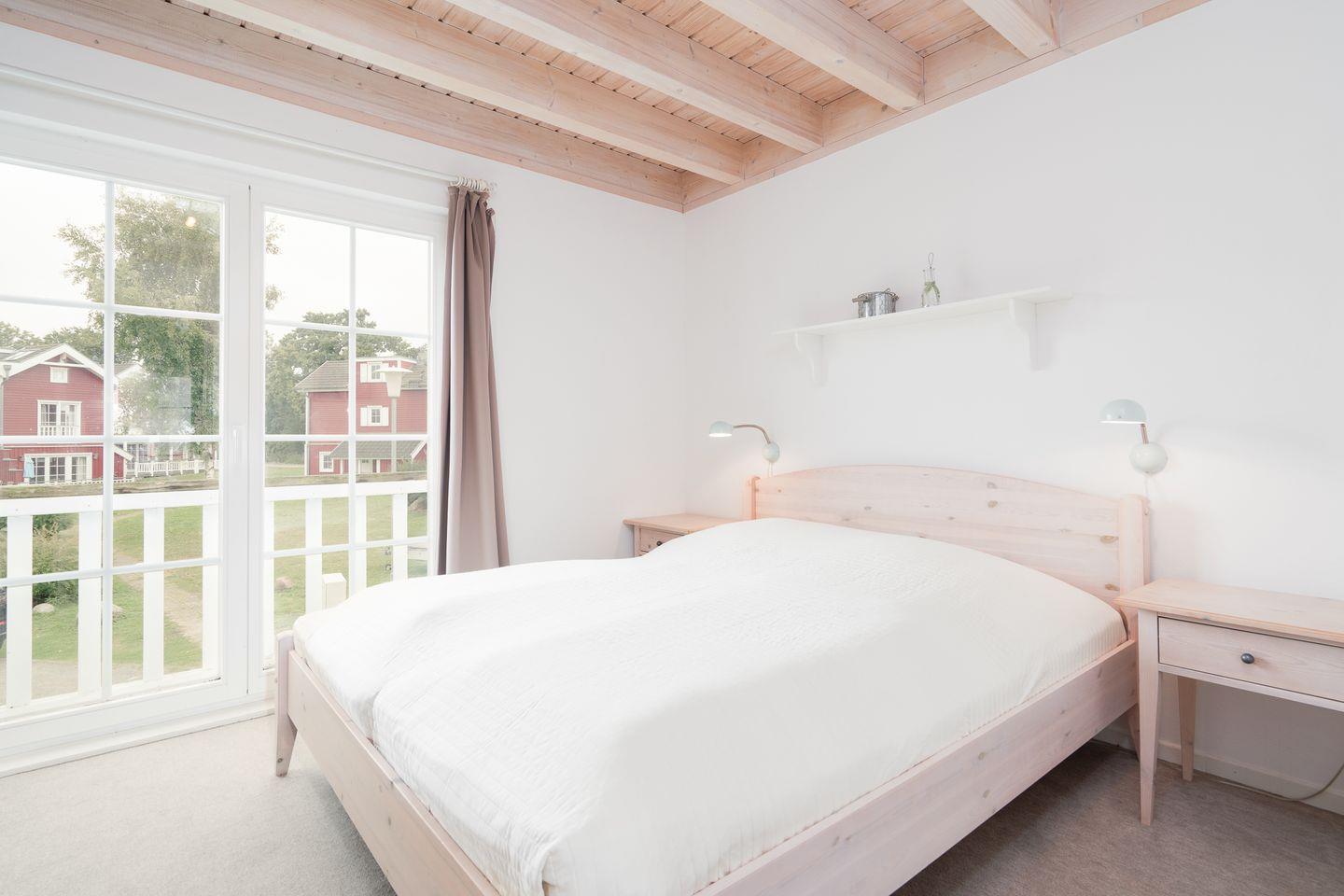 Die große Doppelhaushälfte Nr. 90 bietet viel Platz und Wohlfühl-Komfort über 3 Etagen und Blick auf die Ostsee. Der Wohn- und Essbereich mit Kamin und offener Küche liegen im Erdgeschoss, sowie die Sauna mit Dusche und WC. Die Küche verfügt über Spülmaschine, Backofen, Herd und Waschmaschine. In der ersten Etage sind 2 Schlafräume mit Doppelbetten und das Bad mit Whirlwanne. Zur offenen Schlafgalerie mit zwei Einzelbetten führt von der 1.Etage aus eine steile Raumspartreppe. WLAN ist inklusive.