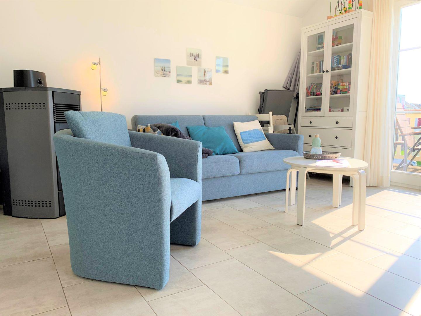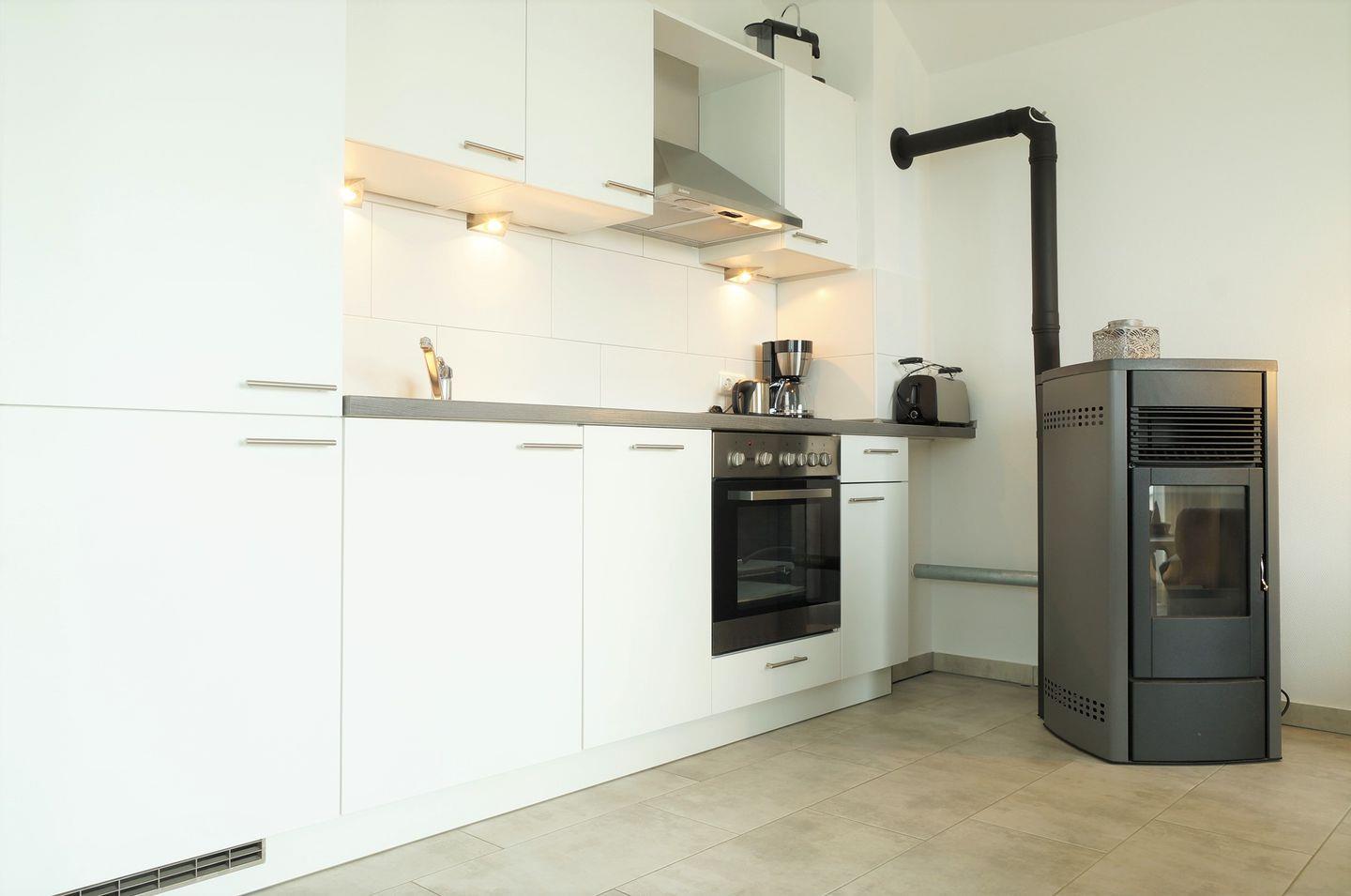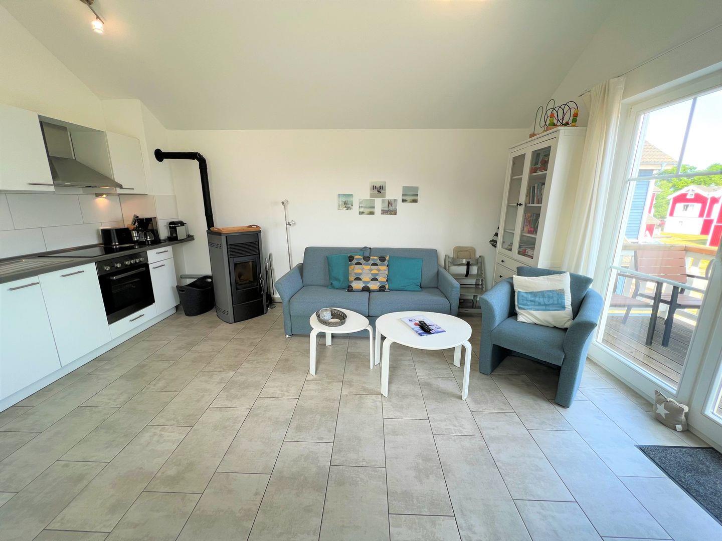 Es stehen Ihnen ein Schlafraum mit Doppelbett und ein geräumiger Wohnraum mit offener Küchenzeile und Pelletofen zur Verfügung. Der Ofen sorgt für gemeinsame und gemütliche Stunden. Auf der Schlafcouch im Wohnraum ist Platz für eine weitere Person. Vom Balkon aus können Sie über die Anlage hinweg die Ostsee sehen. Die Küche ist mit Geschirrspülmaschine, Herd und Backofen gut ausgestattet. Im Bad finden Sie auch die Sauna, sowie eine Dusche und die Waschmaschine. Der Komfort einer eigenen Sauna wird sehr von unseren Wintergästen geschätzt. Die Beheizung erfolgt über Elektroheizungen und den Kamin.