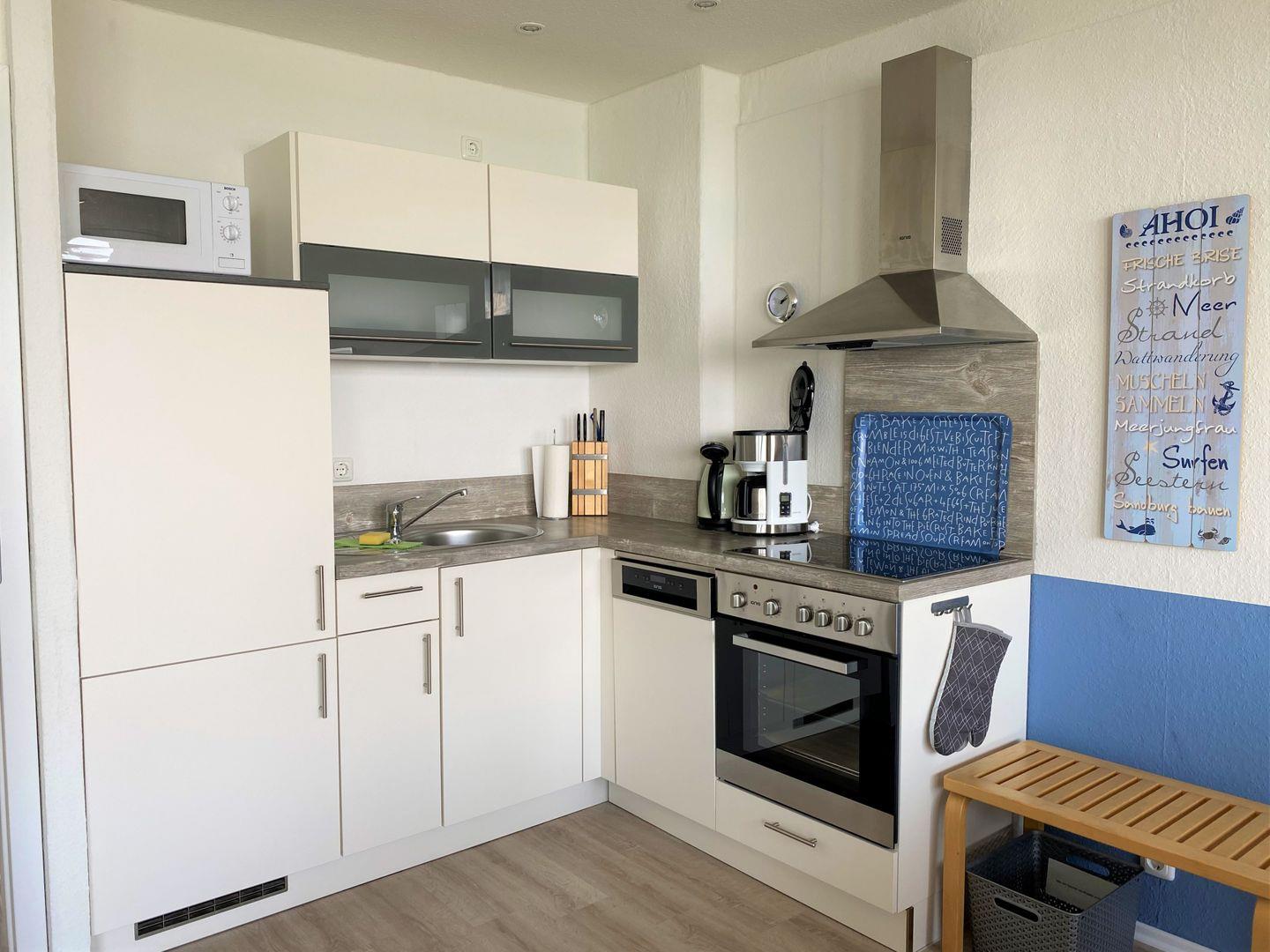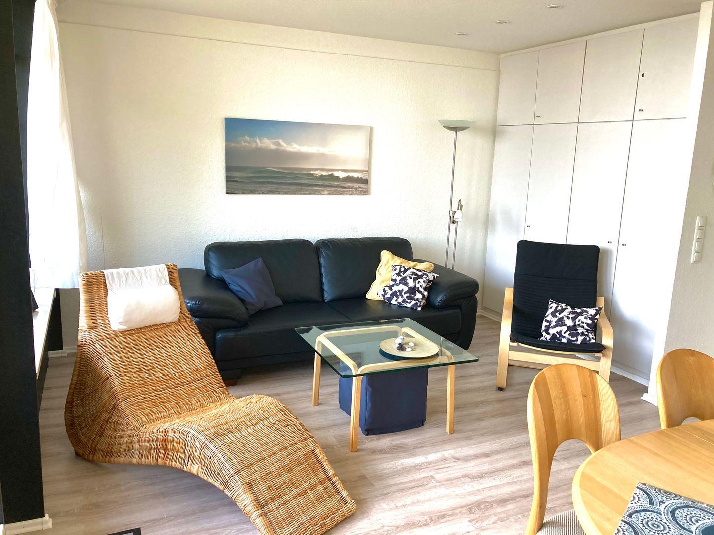 Herzlich willkommen in der 3-Raum-Ferienwohnung Nr. 091. In der 1. Reihe gelegen (1. Etage) bietet die Wohnung einen herrlichen Blick auf die Ostsee. Vom gemütlich eingerichteten Wohn- und Essbereich mit integrierter Küche gelangen Sie auf den große Balkon. Die Küche ist mit Spülmaschine, Herd und Backofen gut ausgestattet. Im ersten Schlafraum steht ein Doppelbett, im zweiten Schlafraum ein Etagenbett. Das moderne Duschbad ist innenliegend. WLAN ist inklusive.