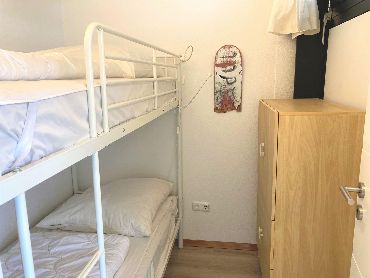 Herzlich willkommen in der 3-Raum-Ferienwohnung Nr. 091. In der 1. Reihe gelegen (1. Etage) bietet die Wohnung einen herrlichen Blick auf die Ostsee und ist der perfekte Ort für Ihren erholsamen Familienurlaub. Vom gemütlich eingerichteten Wohn- und Essbereich mit Sofaecke, Esstisch und integrierter Küche gelangen Sie auf den großen Balkon. Die Küche ist mit Spülmaschine, Herd und Backofen gut ausgestattet. Im ersten Schlafraum steht ein Doppelbett (2x 80 cm x 200 cm), im zweiten Schlafraum ein Etagenbett (jeweils 90 cm x 185 cm). Das moderne Badezimmer ist innenliegend und verfügt über eine bodentiefe Dusche. Ohne eine Straße zu überqueren sind es zum Strand nur wenige Fußschritte. PKW-Stellplatz inklusive.