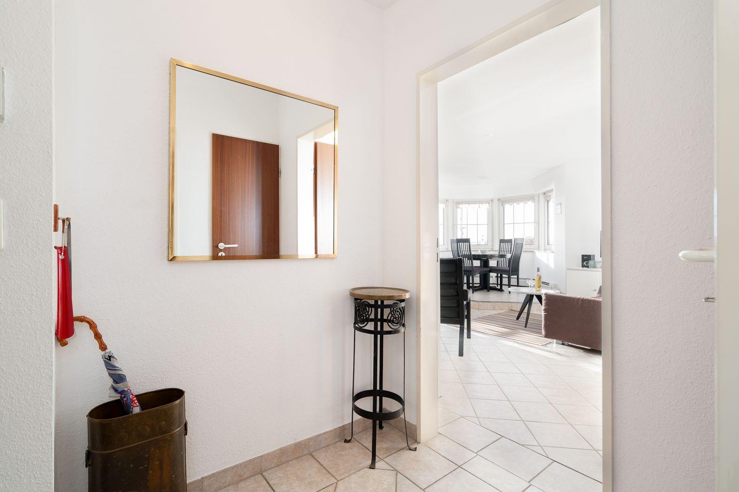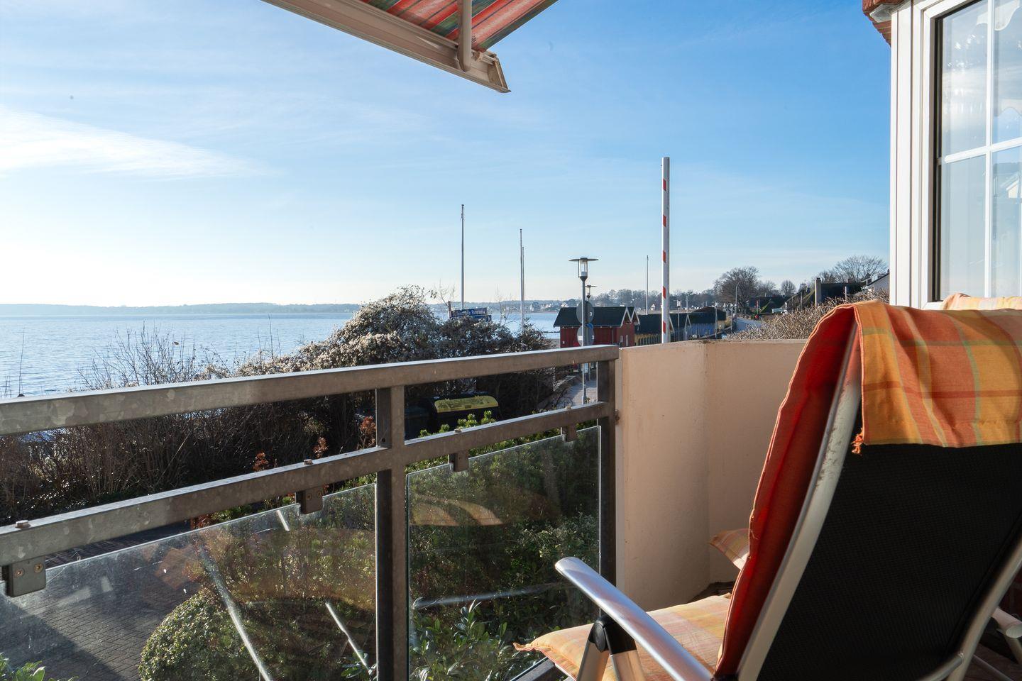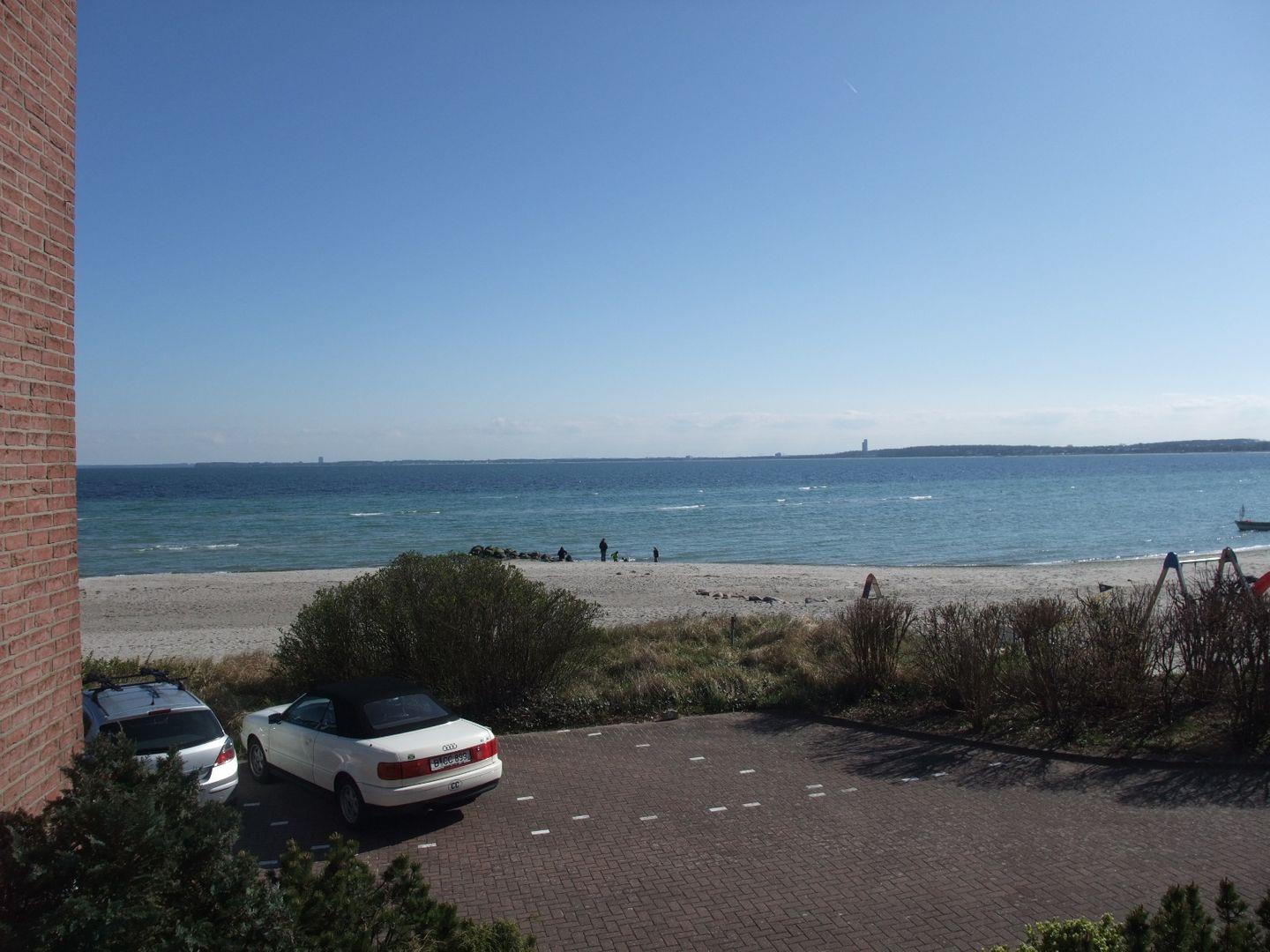 Die Fewo erreichen Sie über den Haupteingang über ein paar Stufen, durch den Nebeneingang liegt die Fewo in der ersten Etage im Haus Strandresidenz. Zur Wohnung gehört eine Garage direkt am Haus. Zum feinsandigen Badestrand sind es tatsächlich nur wenige Meter, es braucht dafür keine Straße überquert zu werden, deshalb auch bestens für unsere kleinen Gäste geeignet. Der möblierte Balkon mit Markise in Südlage ist zum Meer ausgerichtet und hat natürlich Ostseeblick.