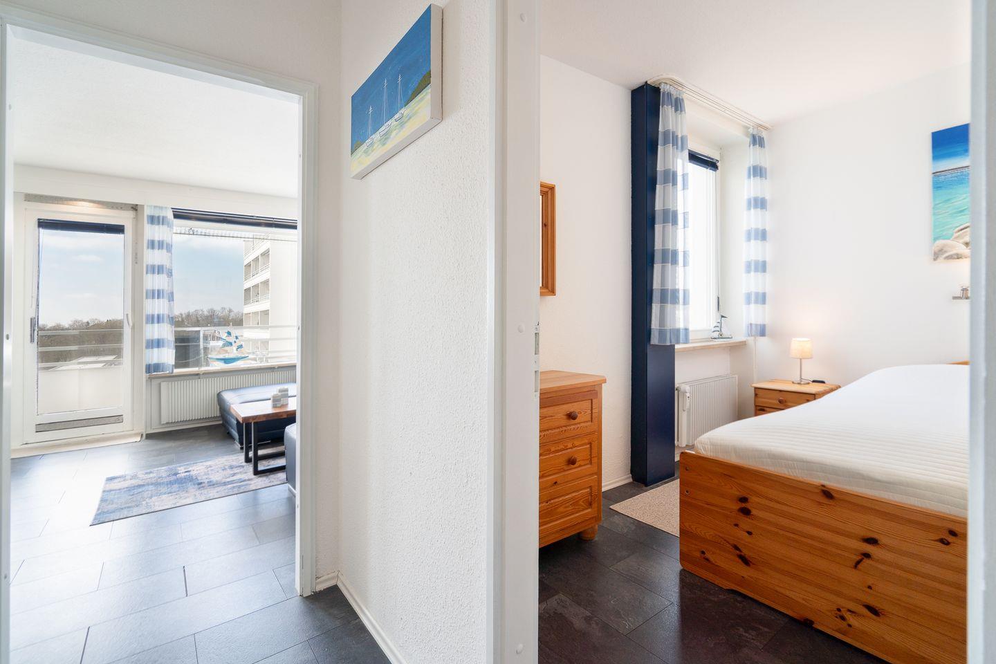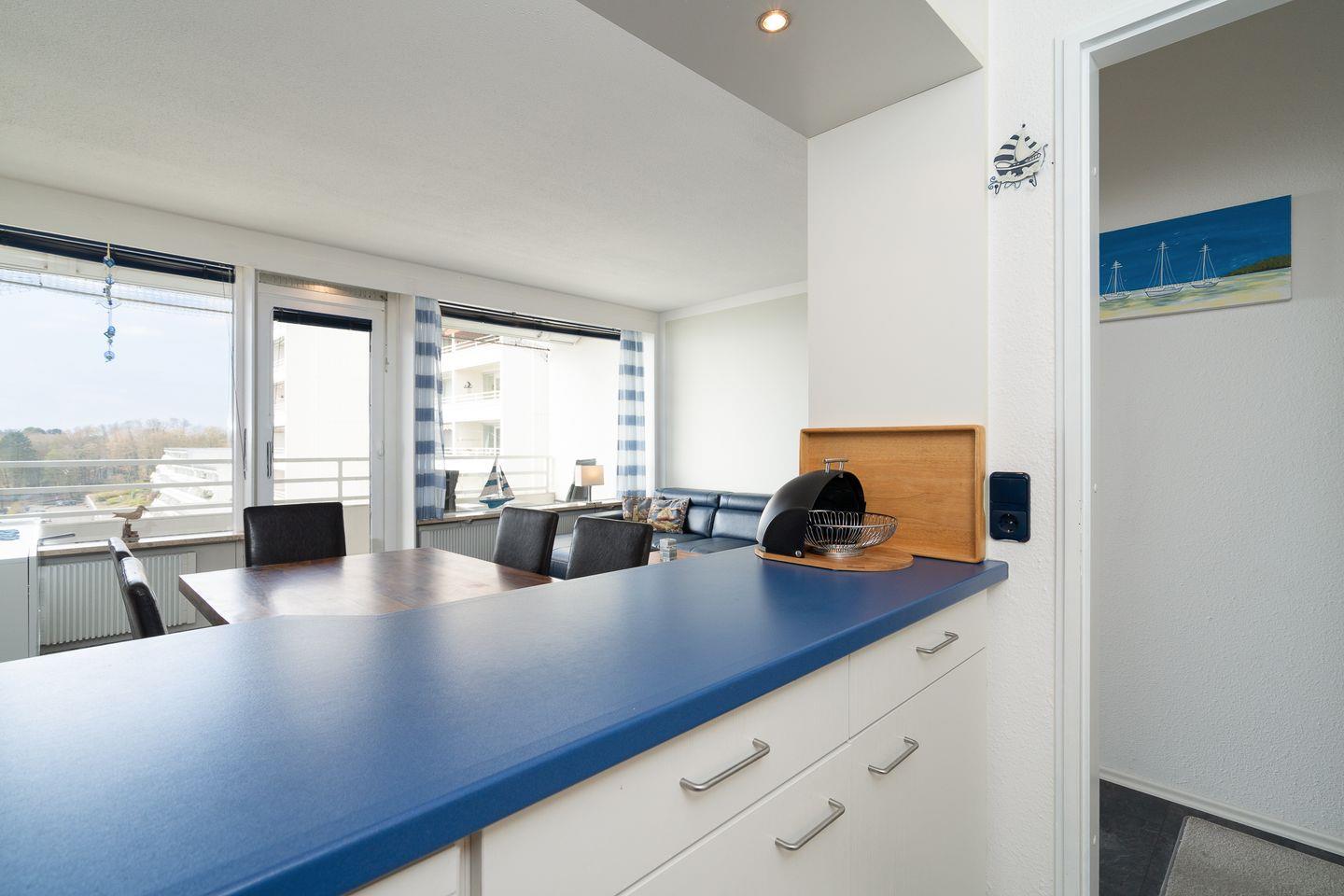 Die geräumige Wohnung ist 55 qm groß und für bis zur 4 Personen geeignet. Vom Balkon in Süd-West-Lage in der 4. Etage haben Sie einen schönen Ostseeblick Richtung Haffkrug.