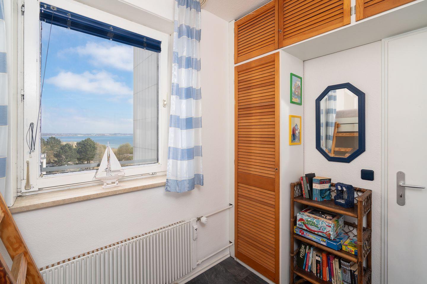 Herzlich Willkommen in der 3-Raum-Ferienwohnung Nr. 299! Die geräumige Wohnung ist 55 qm groß und für bis zur 4 Personen geeignet. Vom Balkon in Süd-West-Lage in der 4. Etage haben Sie einen schönen Ostseeblick Richtung Haffkrug. Die mit Spülmaschine, Backofen und Herd gut ausgestattete Küche ist in den kombinierten Wohn-/Essbereich integriert. Das 1. Schlafzimmer hat ein Doppelbett, das 2. hat ein Etagenbett. Das modernisierte Duschbad ist innenliegend. Zum Strand sind es nur wenige Gehminuten.