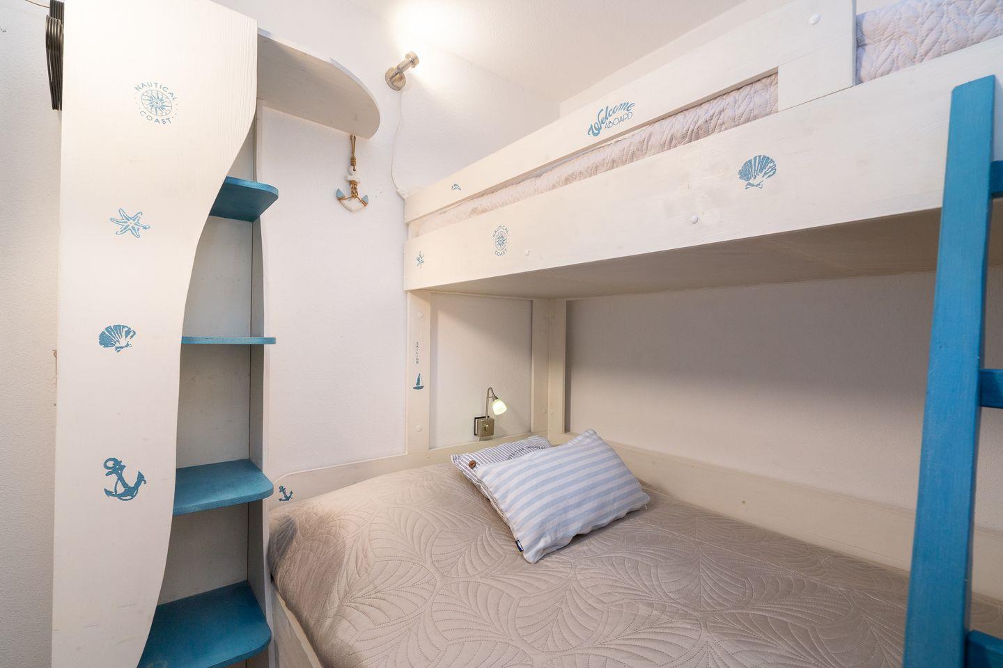 diese gepflegte Wohnung befindet sich in der 2. Etage mit geräumigen Balkon in herrlicher Süd-Ost-Lage und Blick auf die Ostsee über die 1. Reihe hinweg. Vom kombinierten Wohn-Essbereich mit Küchenzeile haben Sie Zugang zum Balkon. Im Elternschlafraum befinden sich 2 Einzelbetten (90 x 190 cm), die man nicht zusammenstellen kann. Im Kinderschlafraum steht ein Etagenbett (oben 80 cm x 190 cm, unten 135 cm x 190 cm). Platz für ein Kinderreisebettchen steht in den Schlafräumen nicht zur Verfügung. Es gibt ein innenliegendes Duschbad.