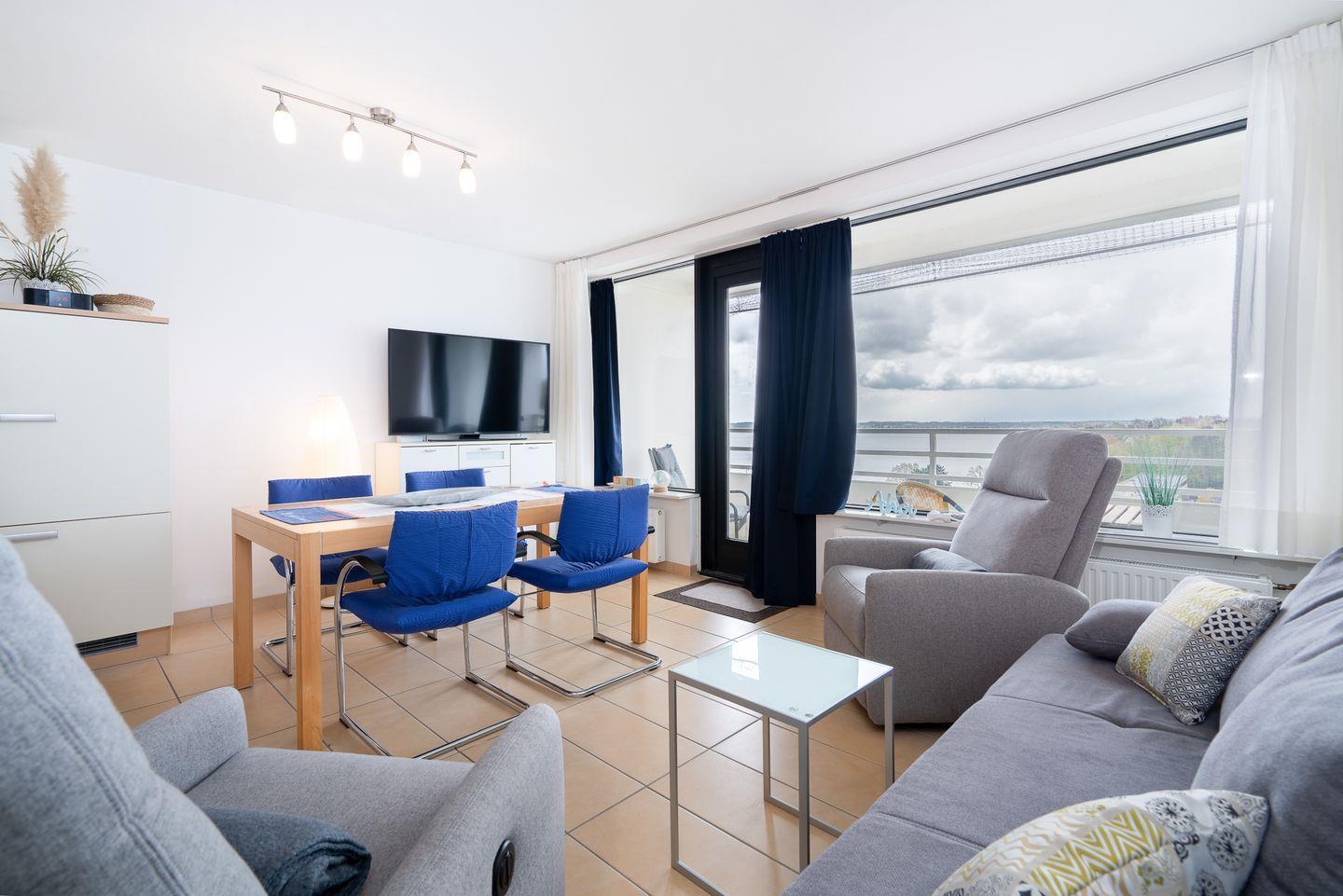 Die Wohnung ist ausgestattet für eine 5-köpfige Familie. Vom Balkon in der 6. Etage können Sie in Süd-West-Lage einen herrlichen Blick über die Ostsee genießen. Der moderne, kombinierte Wohn-/Essbereich hat eine offene Küche. Im 1. Schlafzimmer steht ein Doppelbett, im 2. ein Schlafsofa. Das Wohnzimmer verfügt über ein weiteres Schlafsofa. Das helle Wannenbad ist innenliegend. Zum Strand sind es nur wenige Gehmin.