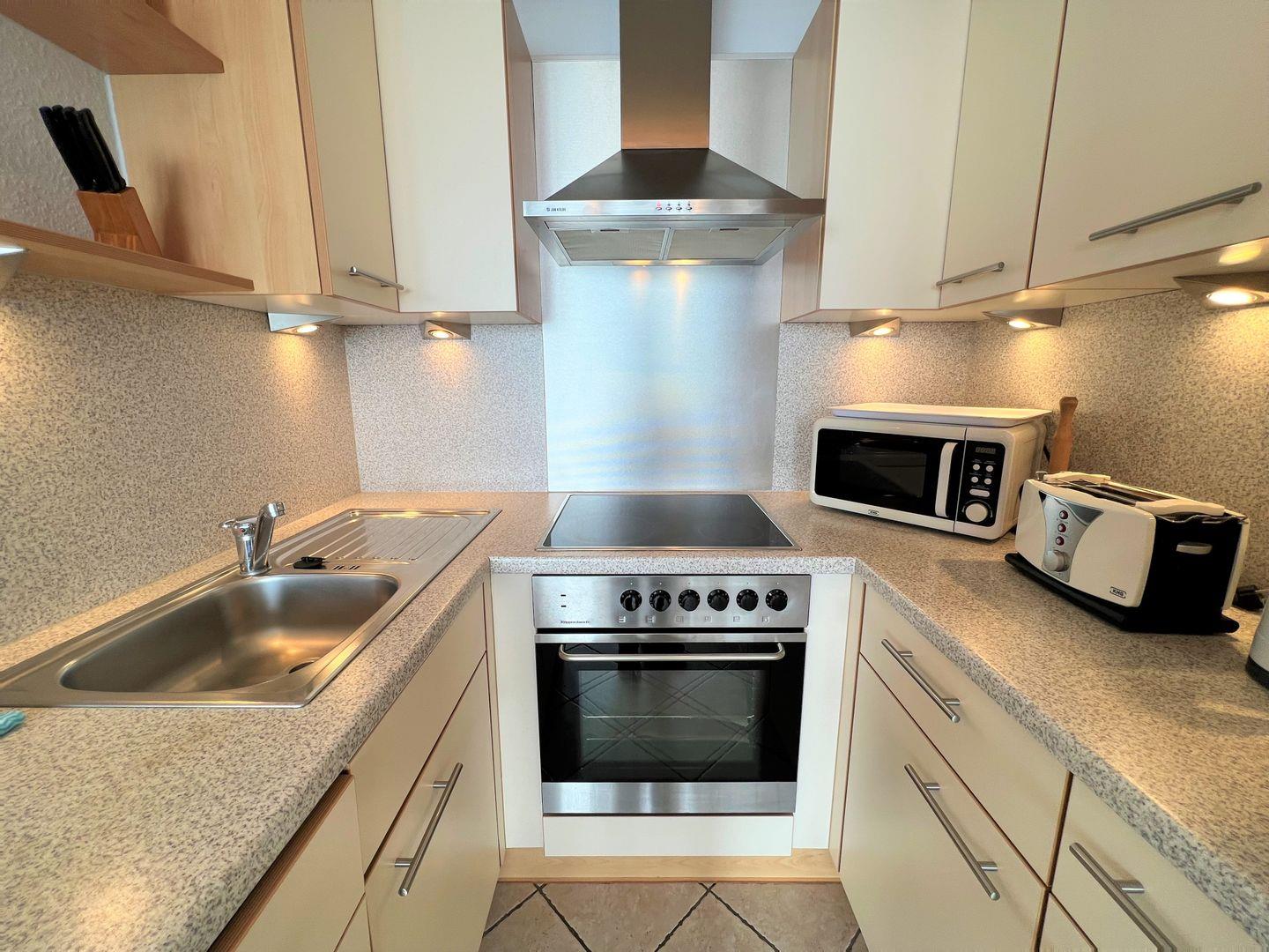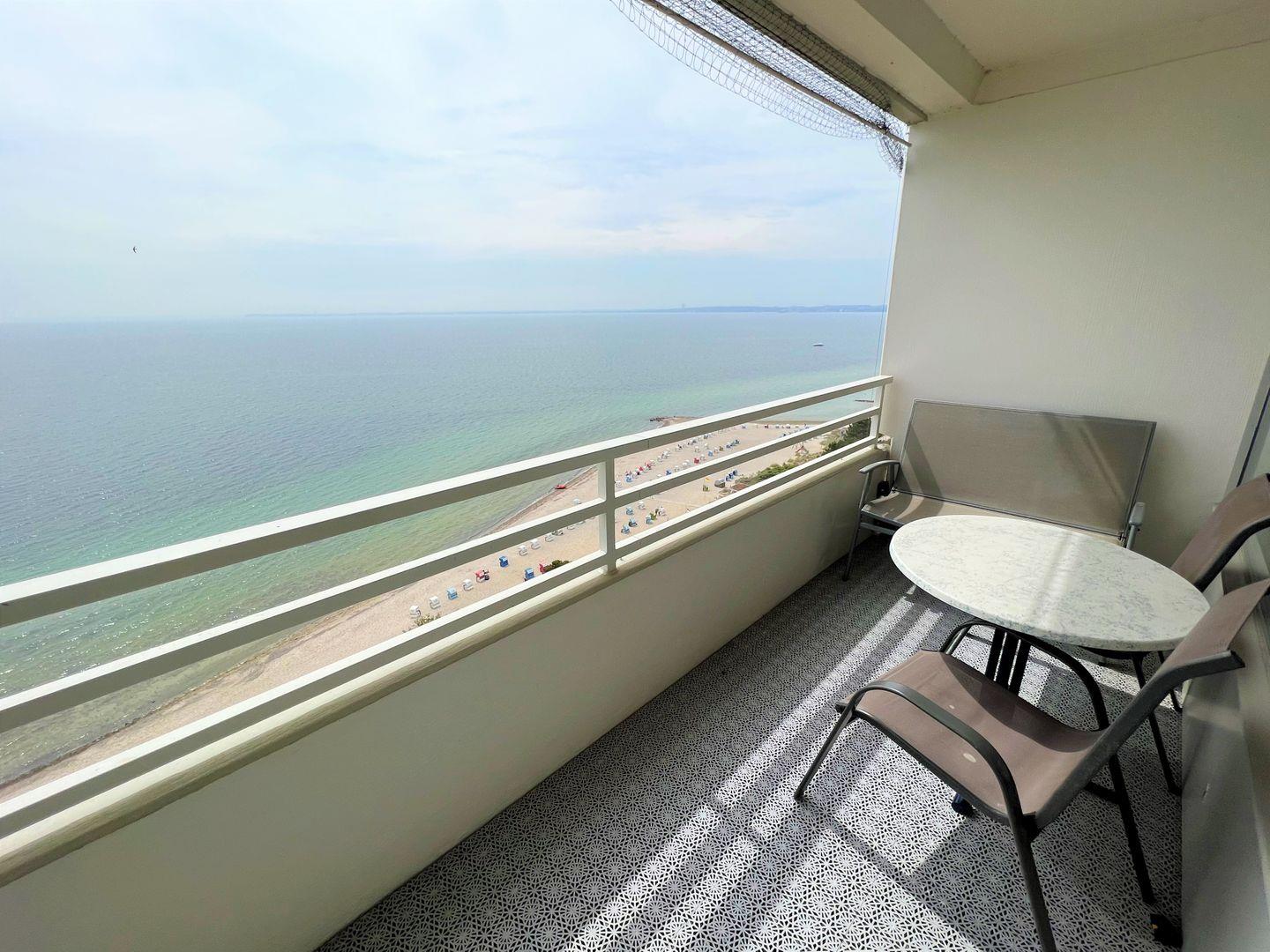 die Wohnung befindet sich in der 10. Etage mit Balkon in Süd-Ost-Lage und traumhaftem Ostseeblick über die Lübecker Bucht. Vom kombinierten Wohn- und Essbereich haben Sie Zugang zum Balkon. Die kleine, aber mit Spülmaschine, Backofen und Herd ausgestattete Küche, ist in den Wohn-/Essbereich integriert. Das Schlafzimmer hat ein Doppelbett (2 x 190 cm x 90 cm) und ein Fenster mit Ostseeblick - Aufwachen und das Meer sehen, was gibt es Schöneres im Urlaub? Im Wohnbereich steht zudem eine Schlafcouch (120 cm x 180 cm). Es gibt ein innenliegendes Duschbad. Zum Strand und zur Promenade sind es nur wenige Fußschritte. PKW-Stellplatz im Parkdeck, es führen Treppen von dort aus zur Wohnung. Über einen Seiteneingang gelangt man zum Fahrstuhl für ebenerdiges Be-und Entladen.