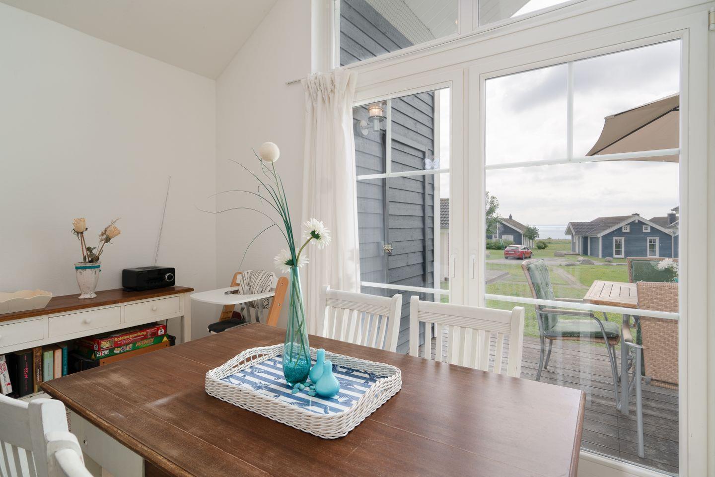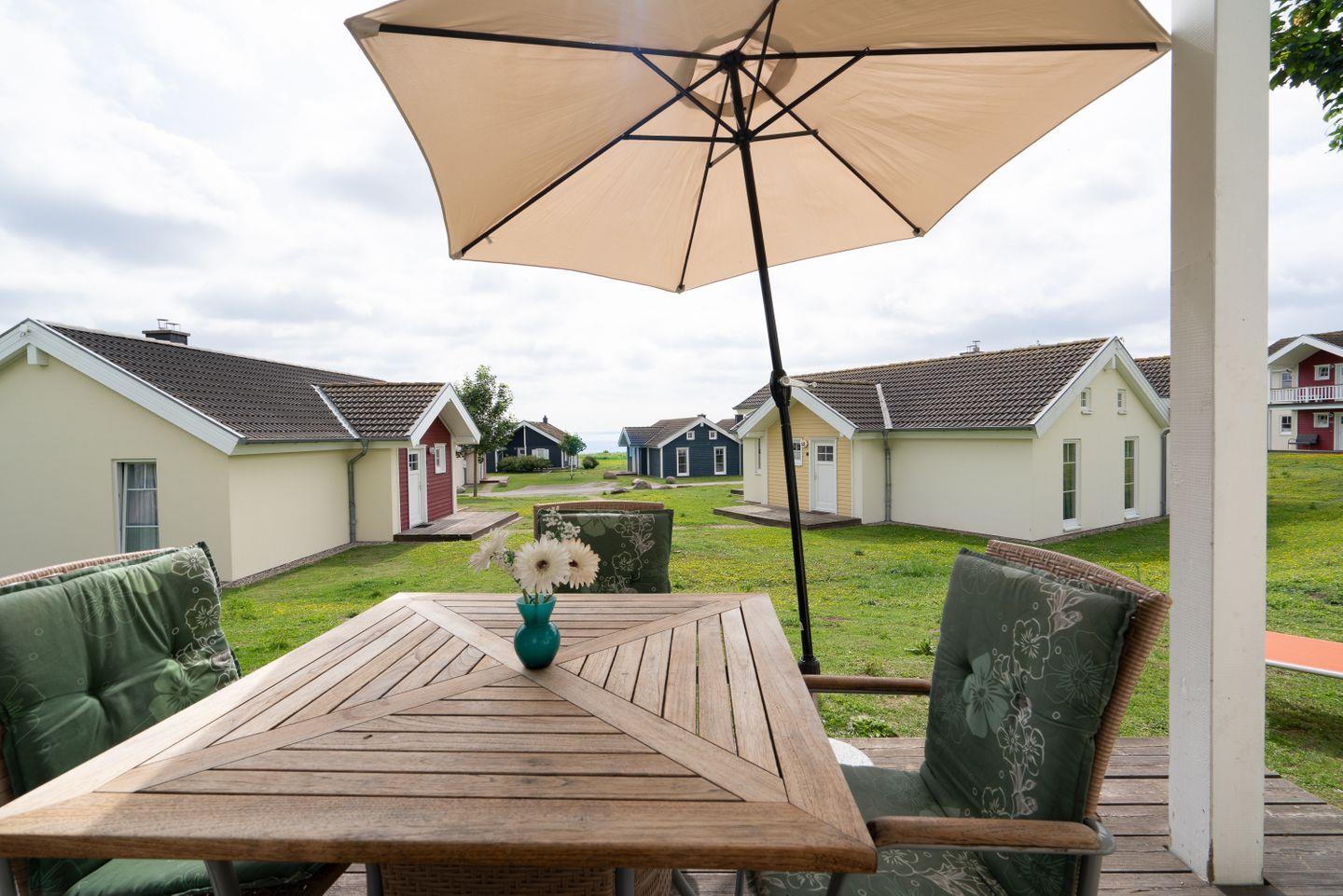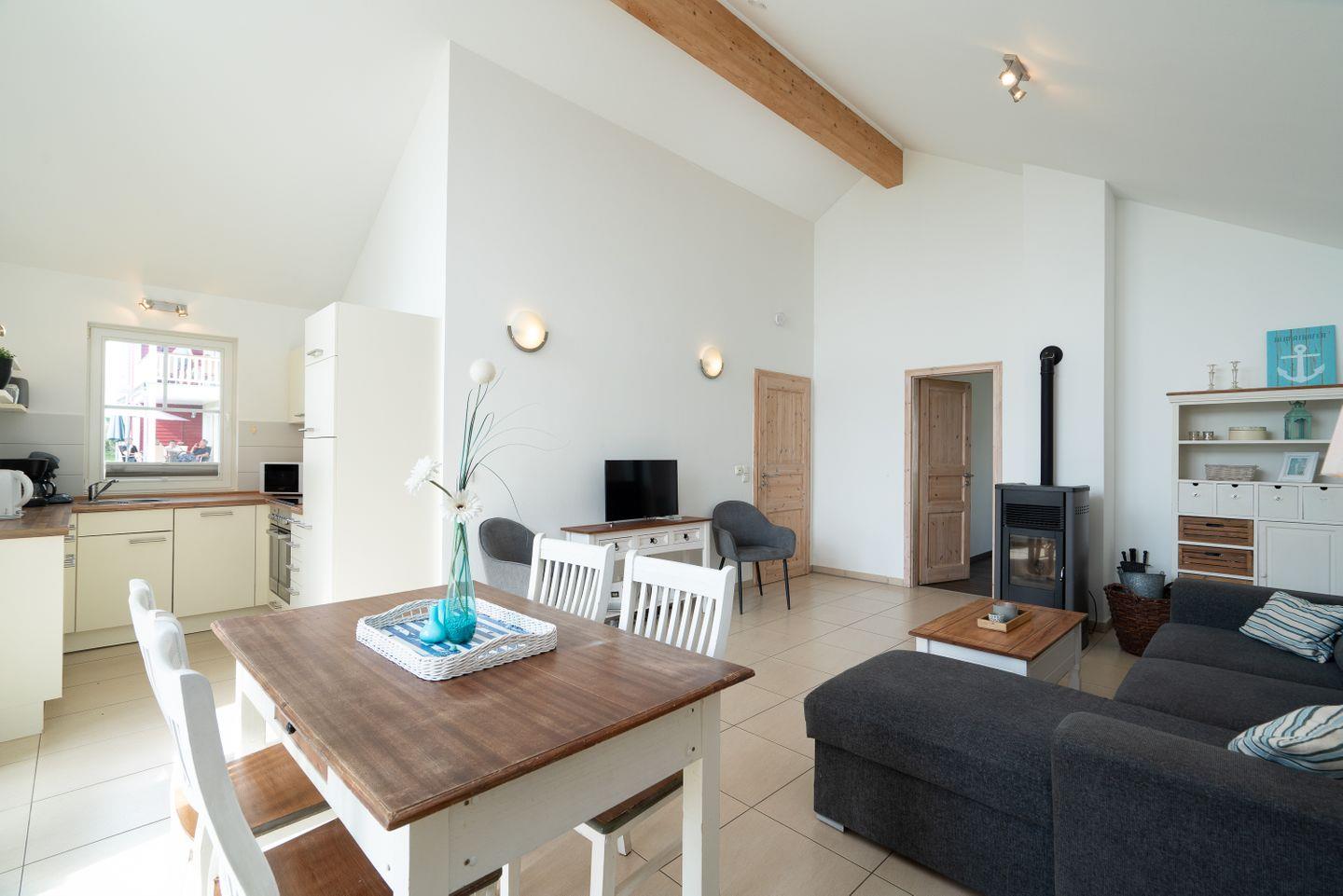 Die gemütliche Bungalowhälfte "Heimathafen" Nr. 51 liegt in der Strandpark-Anlage und ist für 4 Personen geeignet. Vom geräumigen Wohnraum mit Pelletofen und offener Küche haben Sie Zugang zur Terrasse. Die Küche ist mit Spülmaschine, Backofen und Herd ausgestattet. Im ersten Schlafraum steht ein Doppelbett, im zweiten Schlafraum stehen zwei Einzelbetten. Das Bad verfügt über Dusche, Sauna und Waschmaschine. WLAN ist inklusive.