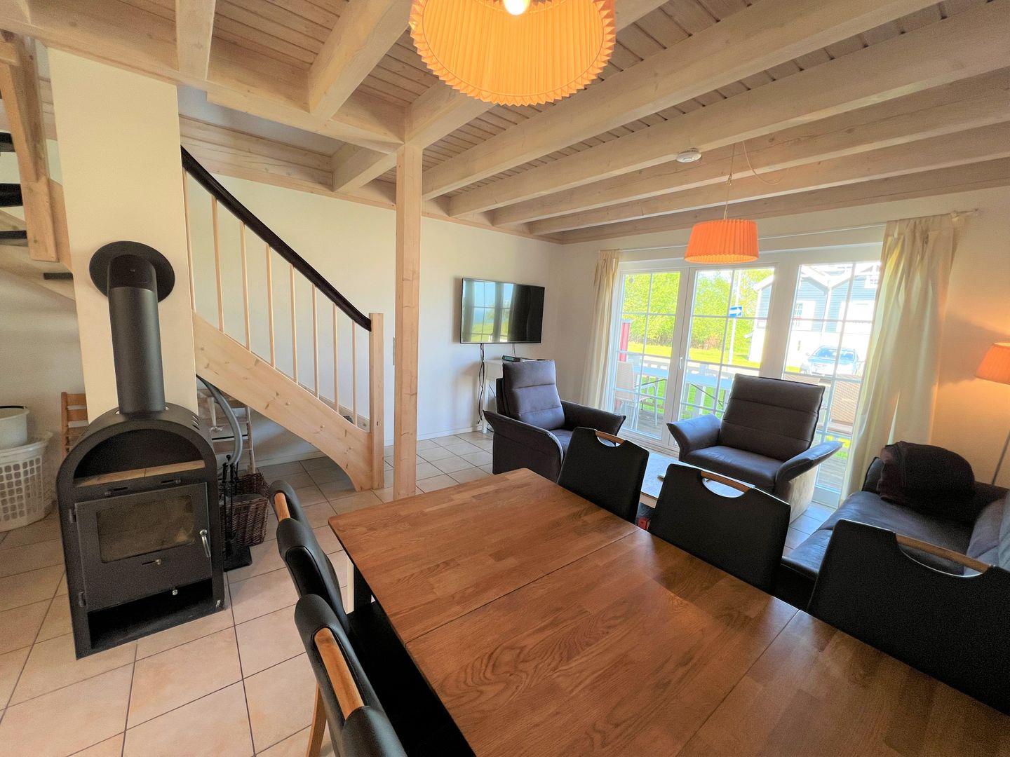 Die große Doppelhaushälfte "Steuerbord" Nr. 79 bietet viel Platz und Wohlfühl-Komfort über 3 Etagen und Ostseeblick. Der Wohn-/Essbereich mit Kamin und offener Küche mit Waschmaschine, sowie Sauna mit Dusche und WC liegen im EG. Die Küche ist mit Spülmaschine, Backofen und Herd ausgestattet. In der 1. Etage sind 2 Schlafräume mit Doppelbetten und das Bad mit Whirlwanne. Zur offenen Galerie mit zwei Einzelbetten und Fernsehecke führt von der 1.Etage aus eine steile Raumspartreppe. WLAN inklusive.