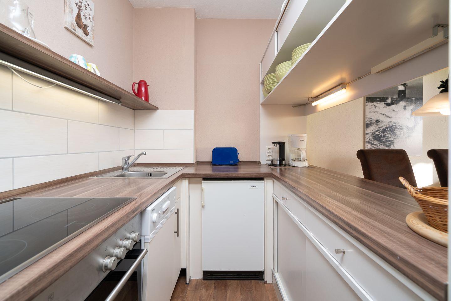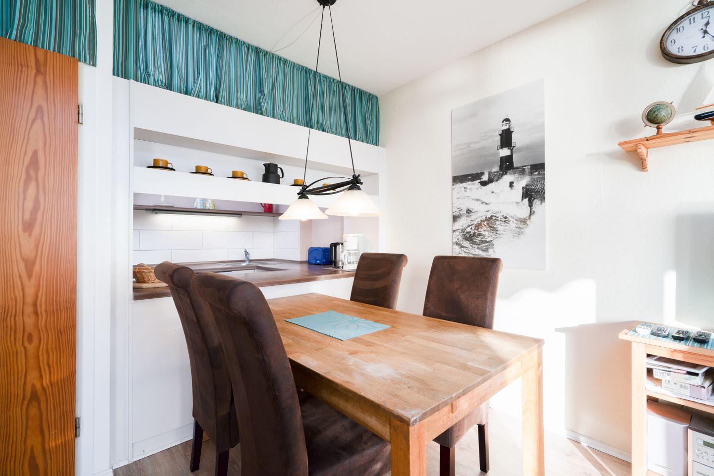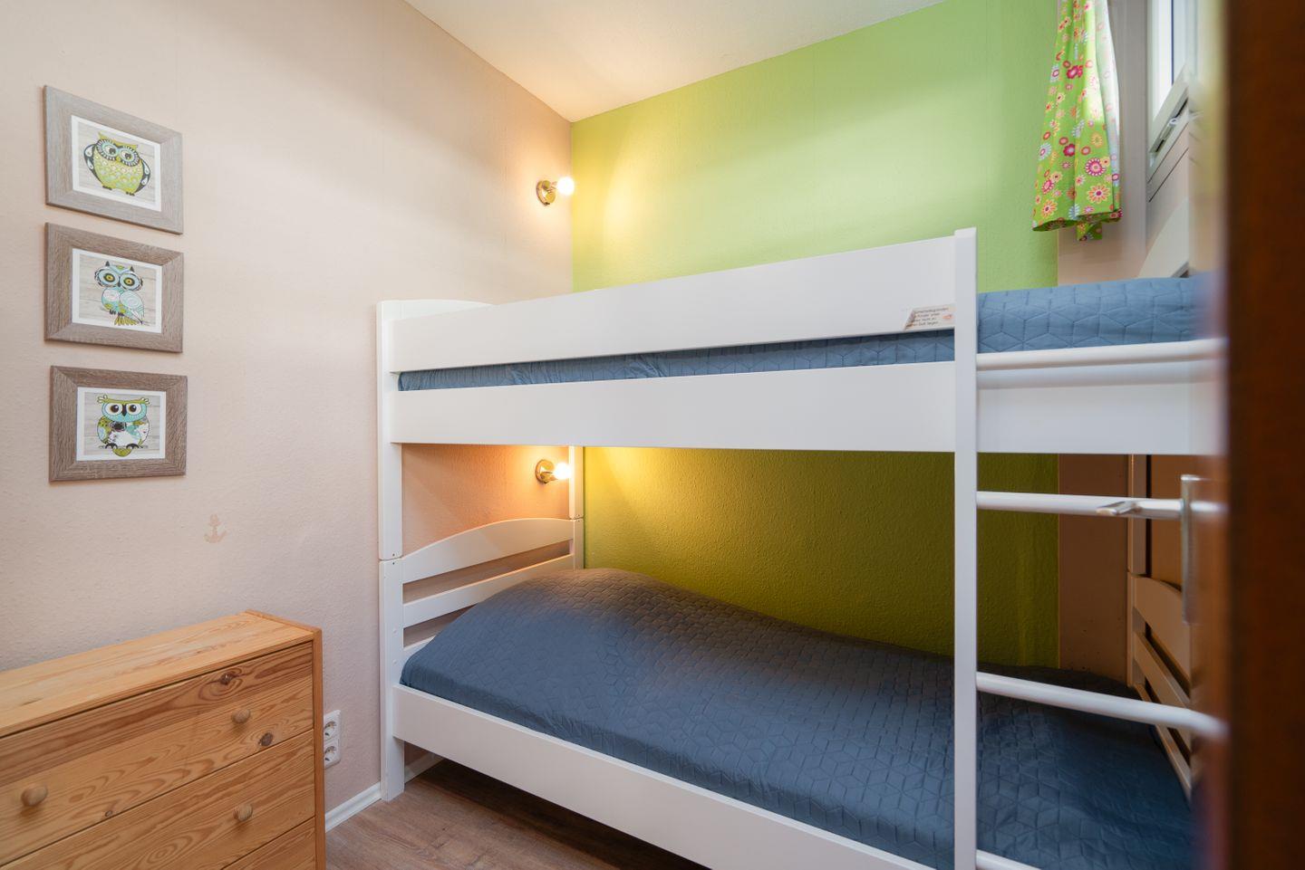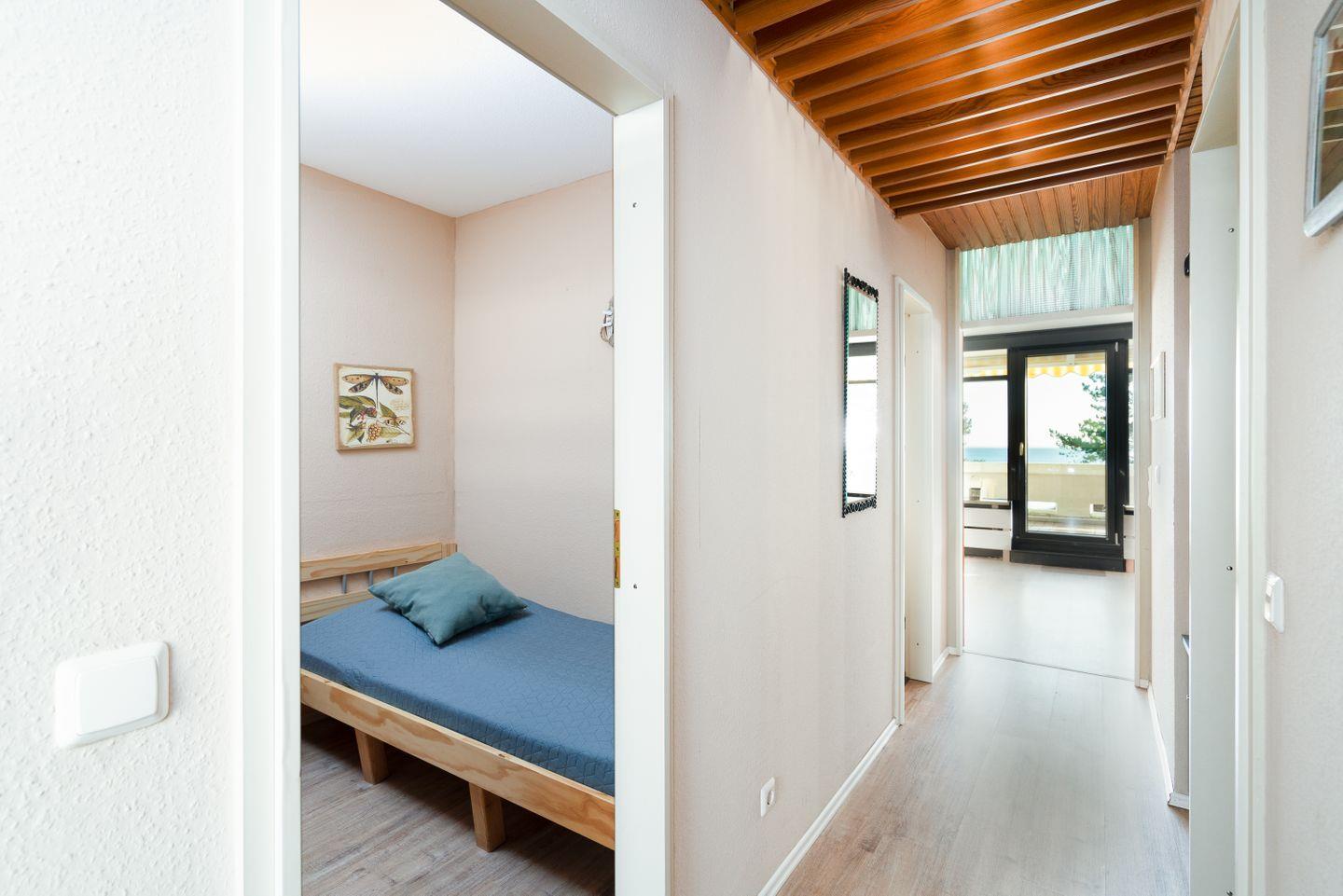 Hier finden Sie ein schönes Urlaubsdomizil für die ganze Familie in ruhiger Lage. Ohne eine Straße überqueren zu müssen, sind es nur wenige Schritte von der Wohnung zum schönen Sandstrand. Vom kombinierten Wohn- und Essbereich gelangen Sie auf den Balkon in Süd-Ost-Lage mit schönem Ostseeblick. Die Küche, mit Spülmaschine, Herd und Backofen ausgestattet, ist mit einer Durchreiche in den Wohn- und Essbereich integriert. Im ersten Schlafraum stehen zwei Einzelbetten (je 90 cm x 200 cm), die nicht zusammenzuschieben sind. Im zweiten Schlafraum steht ein Etagenbett (je 90 cm x 190 cm). Das Duschbad ist innenliegend. PKW-Stellplatz am Haus inklusive.