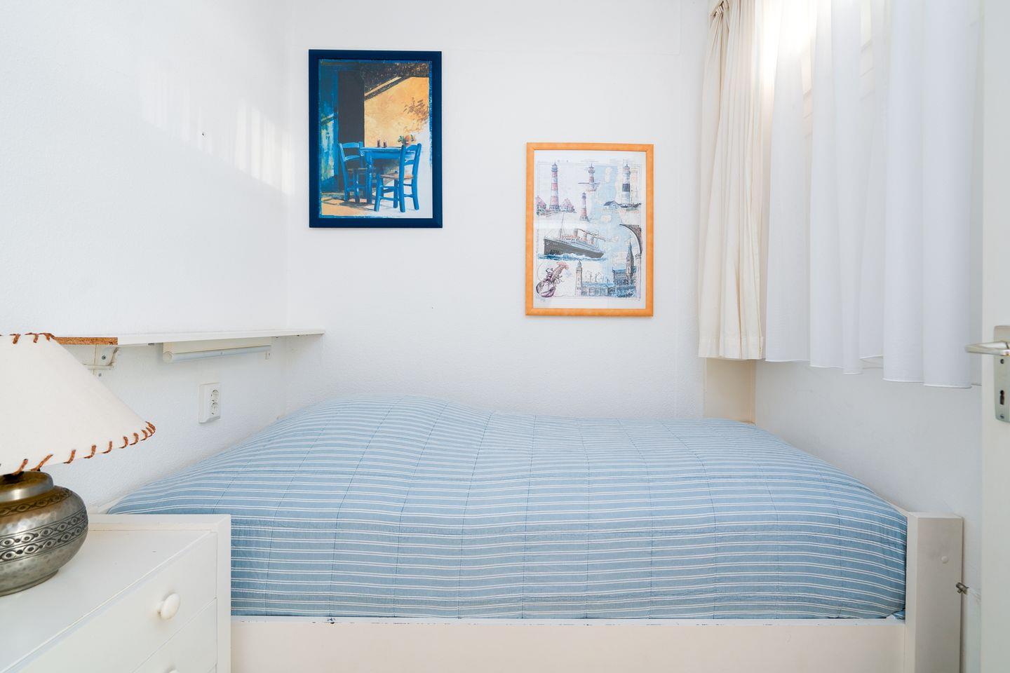 Herzlich willkommen in der 3-Raum-Ferienwohnung Nr. 103. Die Wohnung liegt in der 2. Etage der 1. Reihe in den Terrassenhäusern und hat einen herrlichen Meerblick. Den großen Balkon in Süd-Ost-Lage erreichen Sie vom kombinierten Wohn- und Essbereich aus. Die Küche ist mit einer Durchreiche zum Wohn- und Essbereich hin offen und ist mit Spülmaschine, Herd und Backofen ausgestattet. Im ersten Schlafraum steht ein französisches Bett (140 cm x 200 cm), im zweiten Schlafraum ein Einzelbett (90 cm x 200 cm). Das Duschbad ist innenliegend. Ohne eine Straße überqueren zu müssen, sind es nur wenige Gehminuten zum schönen Sandstrand. PKW-Stellplatz inklusive.