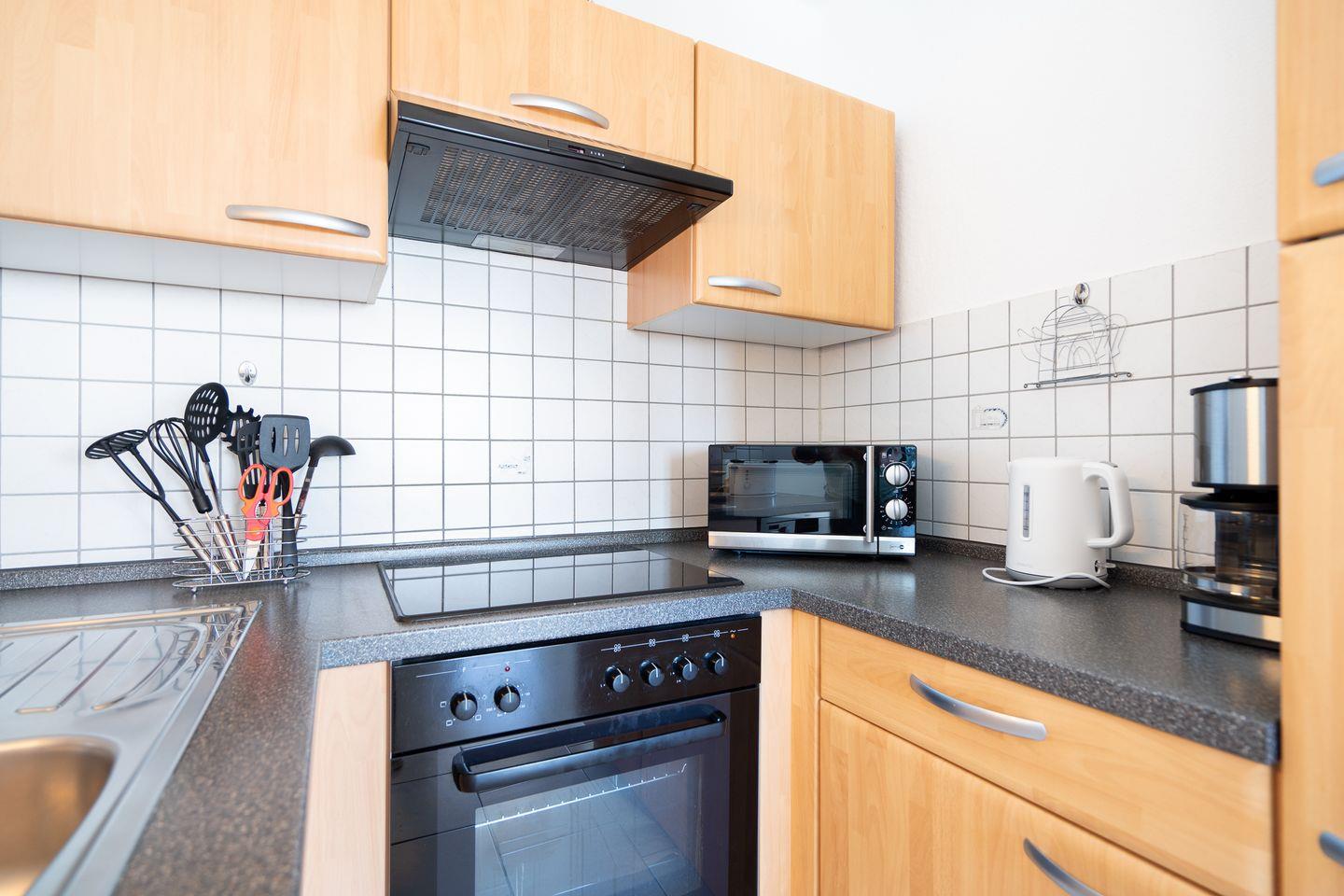 die Wohnung befindet sich im Hochhaus in der 4. Etage mit Balkon in Süd-Ost-Lage und Ostseeblick. Vom kombinierten Wohn- und Essbereich haben Sie Zugang zum Balkon. Die Küchenzeile ist zum Wohn- und Essbereich hin offen und mit Spülmaschine, Backofen und Herd ausgestattet. Im ersten Schlafraum befindet sich ein Doppelbett (2 x 90 cm x 200 cm) und im Kinderschlafraum ein Etagenbett (jeweils 90 cm x 200 cm). Auf dem Sofa (125 x 200 cm) im Wohnzimmer ist ein weiterer Schlafplatz. Es gibt ein innenliegendes Wannenbad. Zum Strand sind es nur wenige Fußschritte. PKW-Stellplatz inklusive.