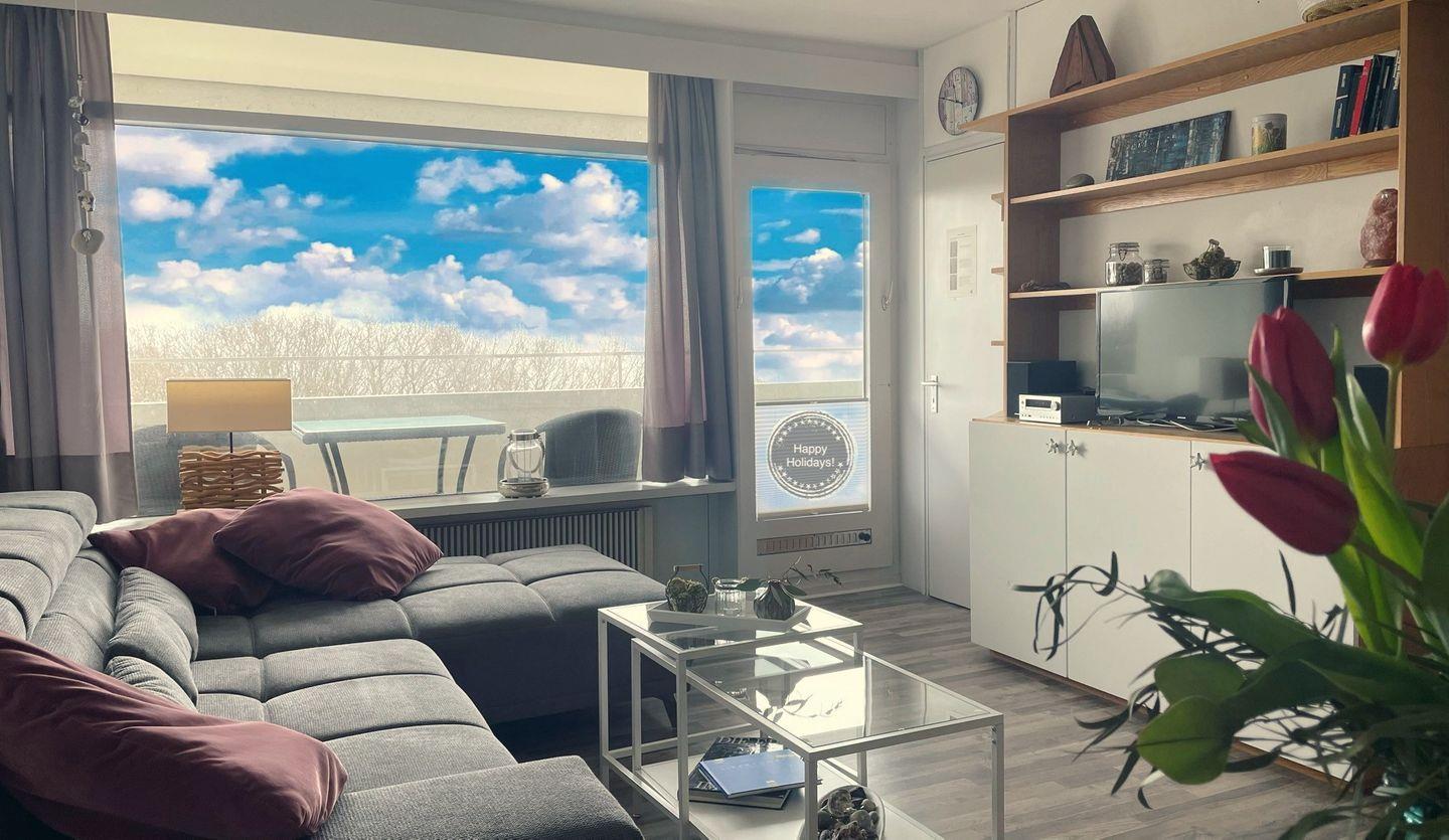 Die 3-Raum-Wohnung liegt in der 5. Etage und hat einen Balkon in Ostlage. Dieser bietet über die Bäume einen schönen Blick auf die Ostsee. Die mit Spülmaschine, Backofen und Herd ausgestattete Küche ist in den kombinierten Wohn- und Essbereich mit einer Durchreiche hin offen. Im 1. Schlafraum steht ein Doppelbett, der 2. Schlafraum ist innenliegend und mit zwei Einzelbetten ausgestattet. Das Wannenbad ist innenliegend. WLAN wird geboten. Die Nutzung des Schwimmbads in der Anlage ist inklusive.