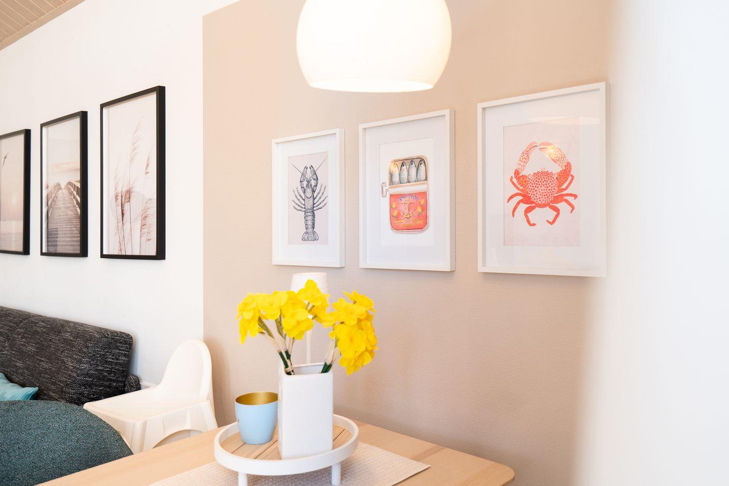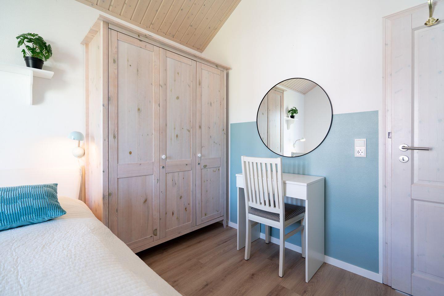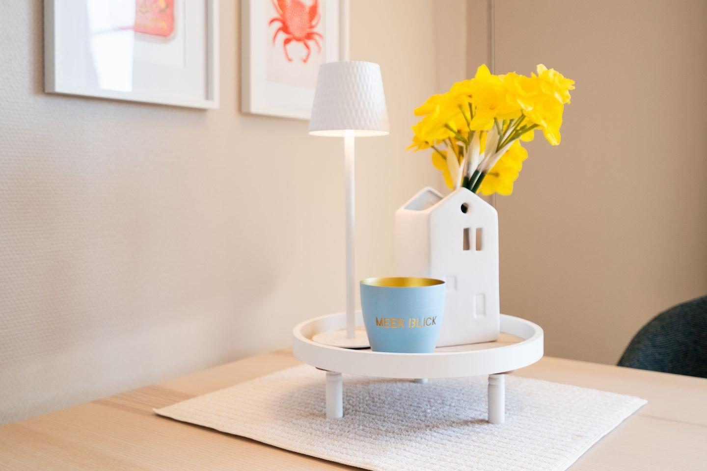 Der Wohnbereich ist hell und einladend gestaltet und mit einer gemütlichen Sofaecke, TV, WLAN sowie integriertem Essbereich ausgestattet. Ein Kaminofen sorgt auch an kühleren Tagen für eine angenehme Atmosphäre. Vom Wohnbereich aus gelangen Sie direkt auf den Balkon, auf dem Sie den Blick auf die Ostsee genießen können.