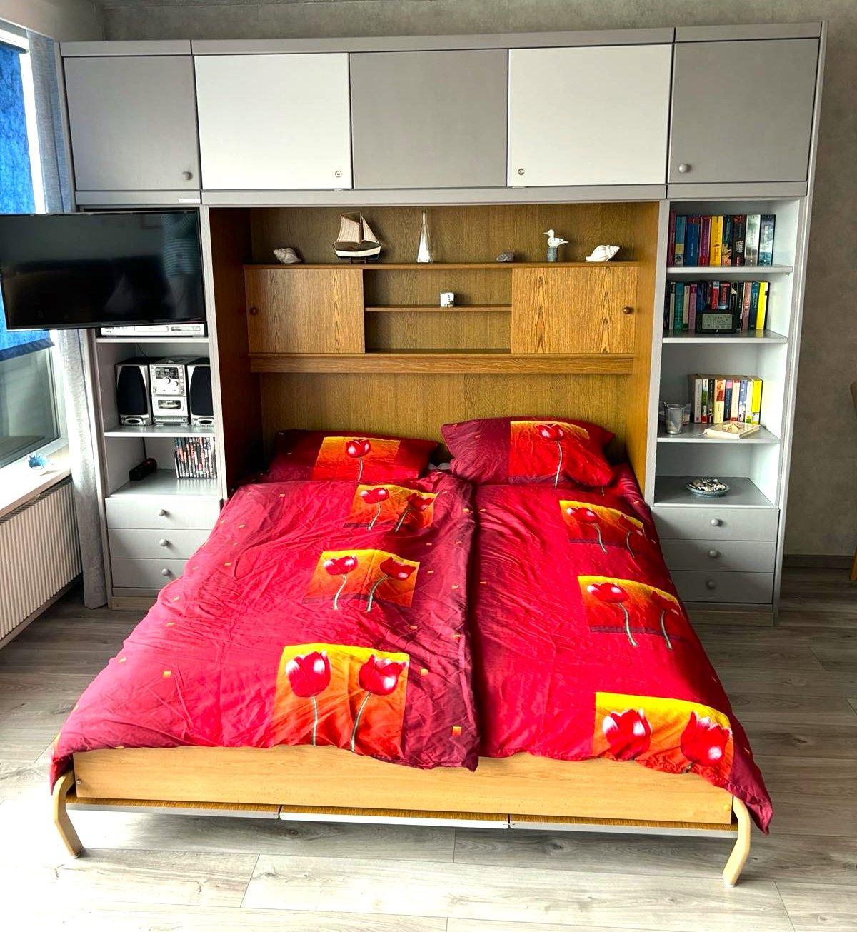 diese Wohnung befindet sich in der 8. Etage mit Balkon in Nord-Ost-Lage und Ostseeblick in die Neustädter Bucht. Die Küche ist mit Spülmaschine, Backofen und Herd ausgestattet und zum Wohn- und Essbereich hin offen. Im innenliegenden Schlafraum befindet sich ein Doppelbett (2x 80 cm x 200 cm). Im Wohnraum befindet sich zusätzlich ein Schrankbett (2 x 80 cm x 200 cm). Das Duschbad ist innenliegend. Zum Strand sind es nur wenige Fußschritte. PKW-Stellplatz inklusive.