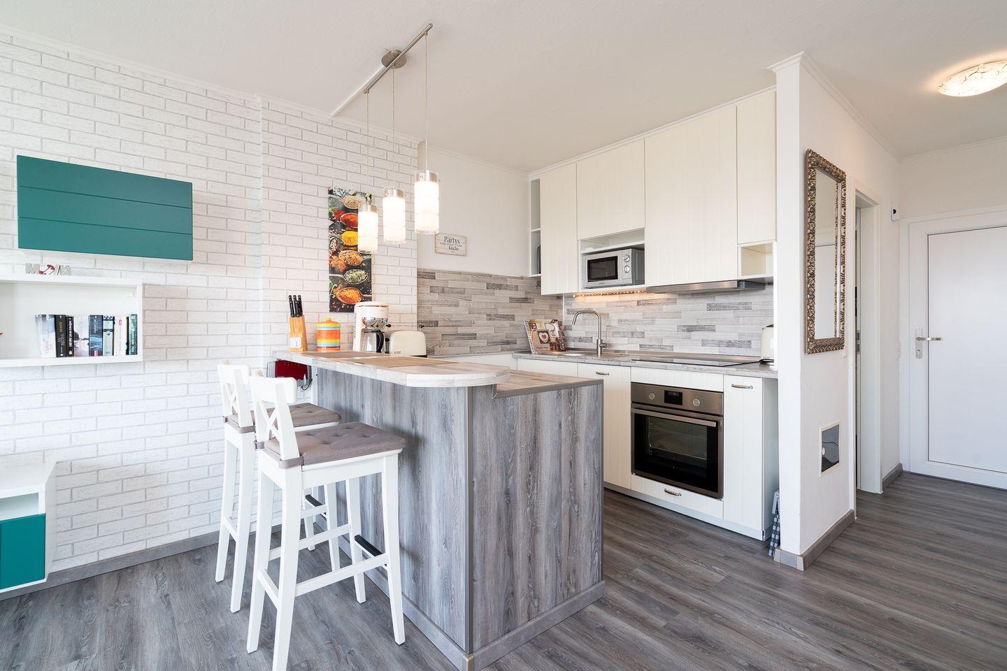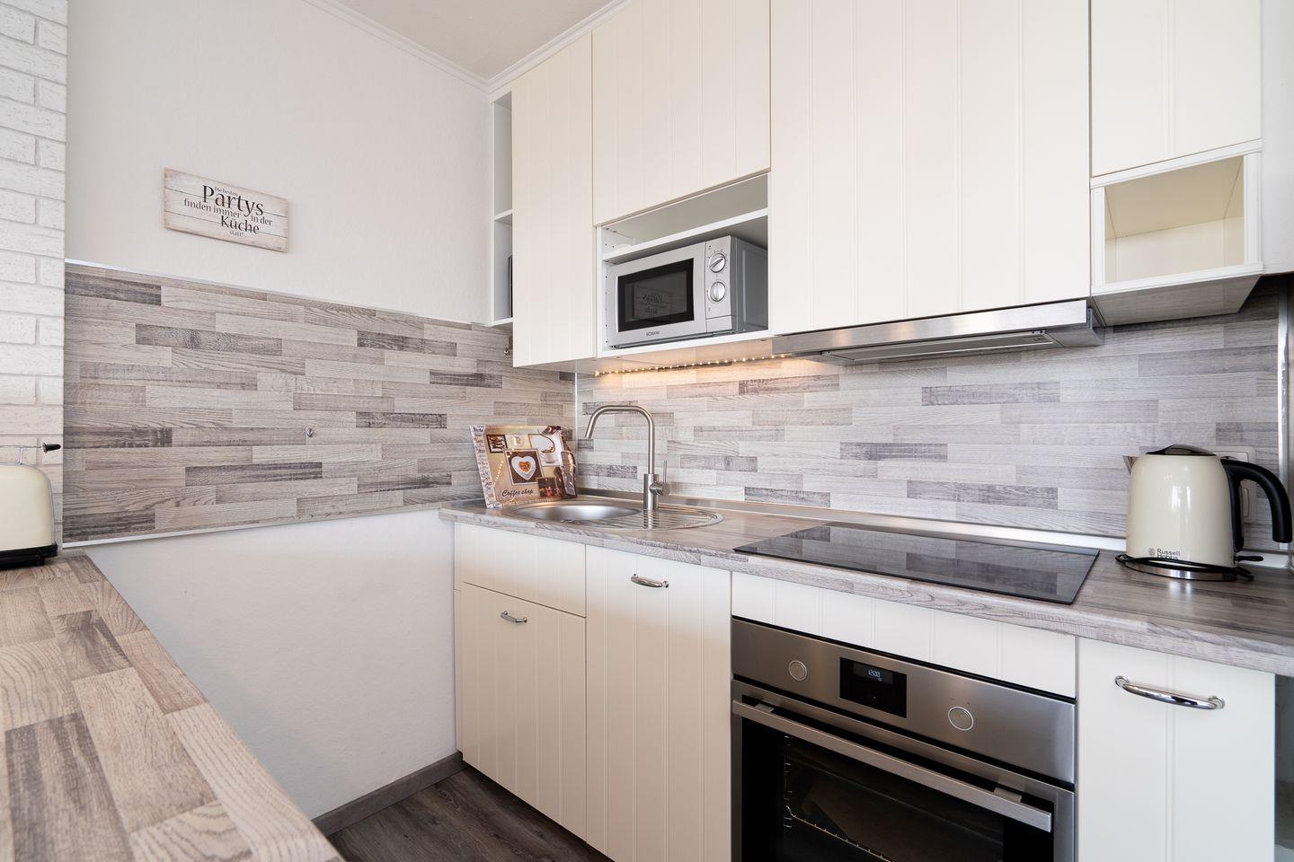 diese moderne Wohnung befindet sich in der 6. Etage mit Balkon in Süd-West-Lage und seitlichem Ostseeblick. Vom kombinierten Wohn- und Schlafbereich haben Sie Zugang zum Balkon. Die in den Wohnbereich integrierte Küche ist mit Spülmaschine, Backofen, Herd und Küchentresen ausgestattet. Im offenen Schlafbereich befindet sich ein französisches Bett (160 cm x 200 cm). Zudem steht Ihnen eine Schlafcouch (160 x 200 cm) zur Verfügung. Es gibt ein modernes, innenliegendes Duschbad. Zum Strand sind es nur wenige Gehminuten. PKW-Stellplatz inklusive.