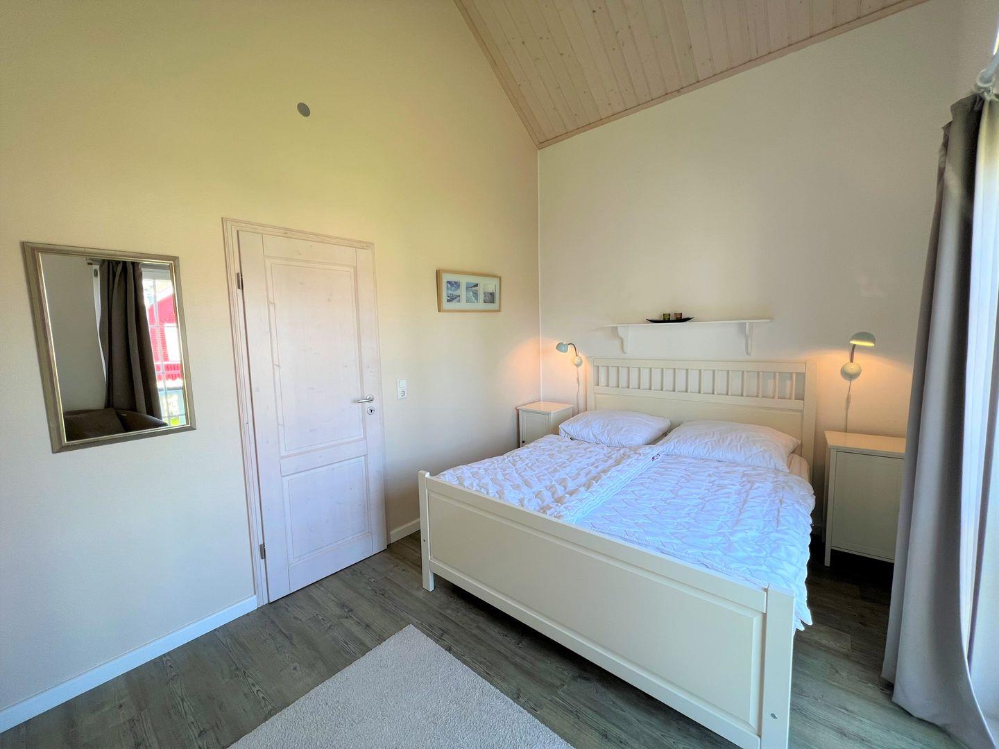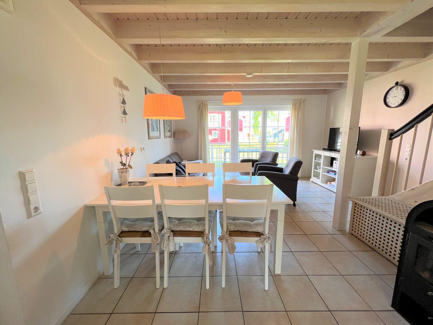 Die komfortable Doppelhaushälfte „Windjammer“ Nr. 54 ist wunderbar für Ihren Familienurlaub am Strand geeignet. Vom gemütlichen Wohn-Essbereich im EG mit Kamin haben Sie Zugang zur Terrasse. Die offene Küche ist voll ausgestattet mit Geschirrspüler, Backofen, Herd und Waschmaschine. Das Duschbad mit Sauna ist ebenfalls im EG. In der 1. Etage sind 2 Schlafräume mit Doppelbetten, sowie das Bad mit Whirlwanne. In der offenen Galerie unterm Dach stehen 2 Einzelbetten. WLAN ist inklusive.