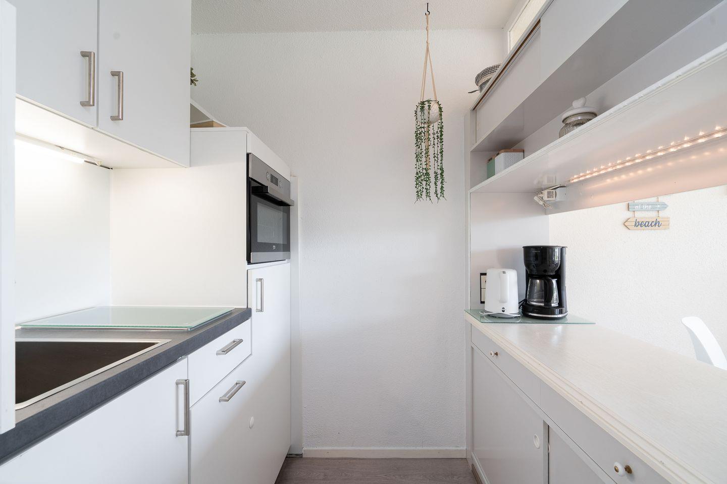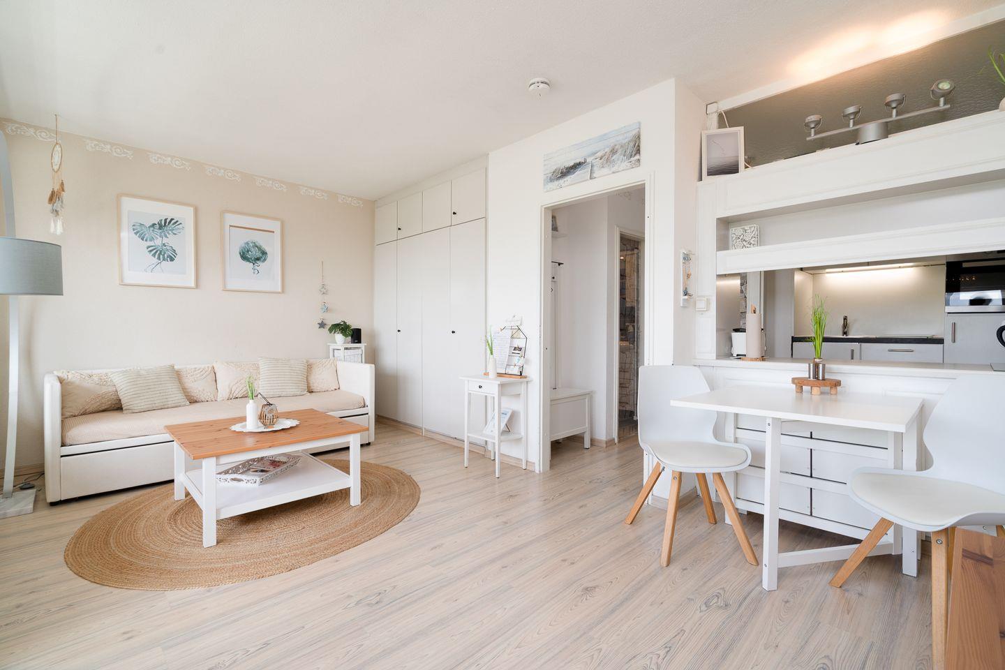 Die gemütliche 1-Raum-Ferienwohnung Nr. 734 hat einen Balkon mit seitlichem Ostseeblick in Süd-West-Lage. Im kombinierten Wohn- und Schlafraum steht eine komfortable Schlafcouch zur Verfügung. Es gibt eine kleine Küche, die aber mit Spülmaschine, Backofen und Herd gut ausgestattet ist und mit einer Durchreiche zum Wohn-/Schlafbereich hin offen ist. Das modernisierte Duschbad ist innenliegend. Zum Strand sind es nur wenige Fußschritte.