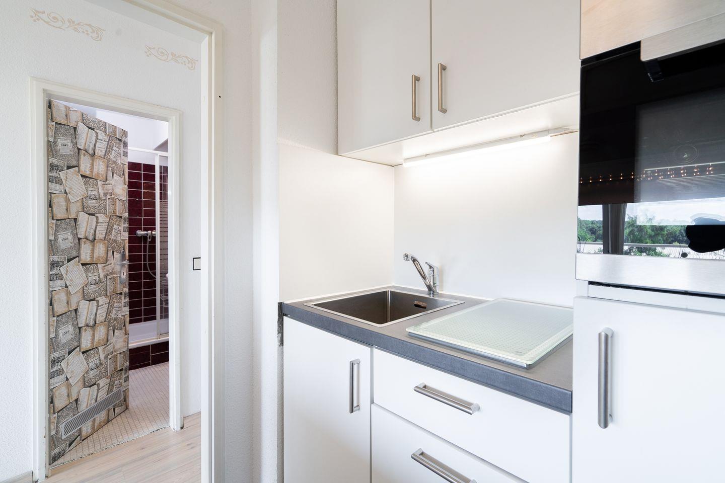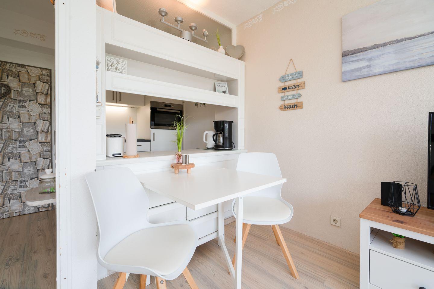 diese gemütliche 1-Raum-Ferienwohnung ist 33 qm groß und hat einen Balkon mit seitlichem Ostseeblick in Süd-West-Lage. Im kombinierten Wohn- und Schlafraum steht Ihnen eine komfortable Schlafcouch (2x 80 cm x 200 cm, allerdings sind die Matratzen dann nicht auf einer Ebene) zur Verfügung. Es gibt eine kleine Küche, die aber mit Spülmaschine, Backofen und Herd gut ausgestattet ist und mit einer Durchreiche zum Wohn-/Schlafbereich hin offen ist. Das modernisierte Duschbad ist innenliegend. Zum Strand sind es nur wenige Fußschritte. PKW-Stellplatz inklusive.