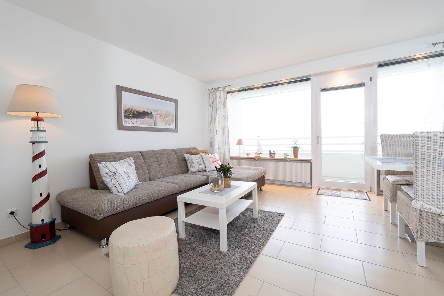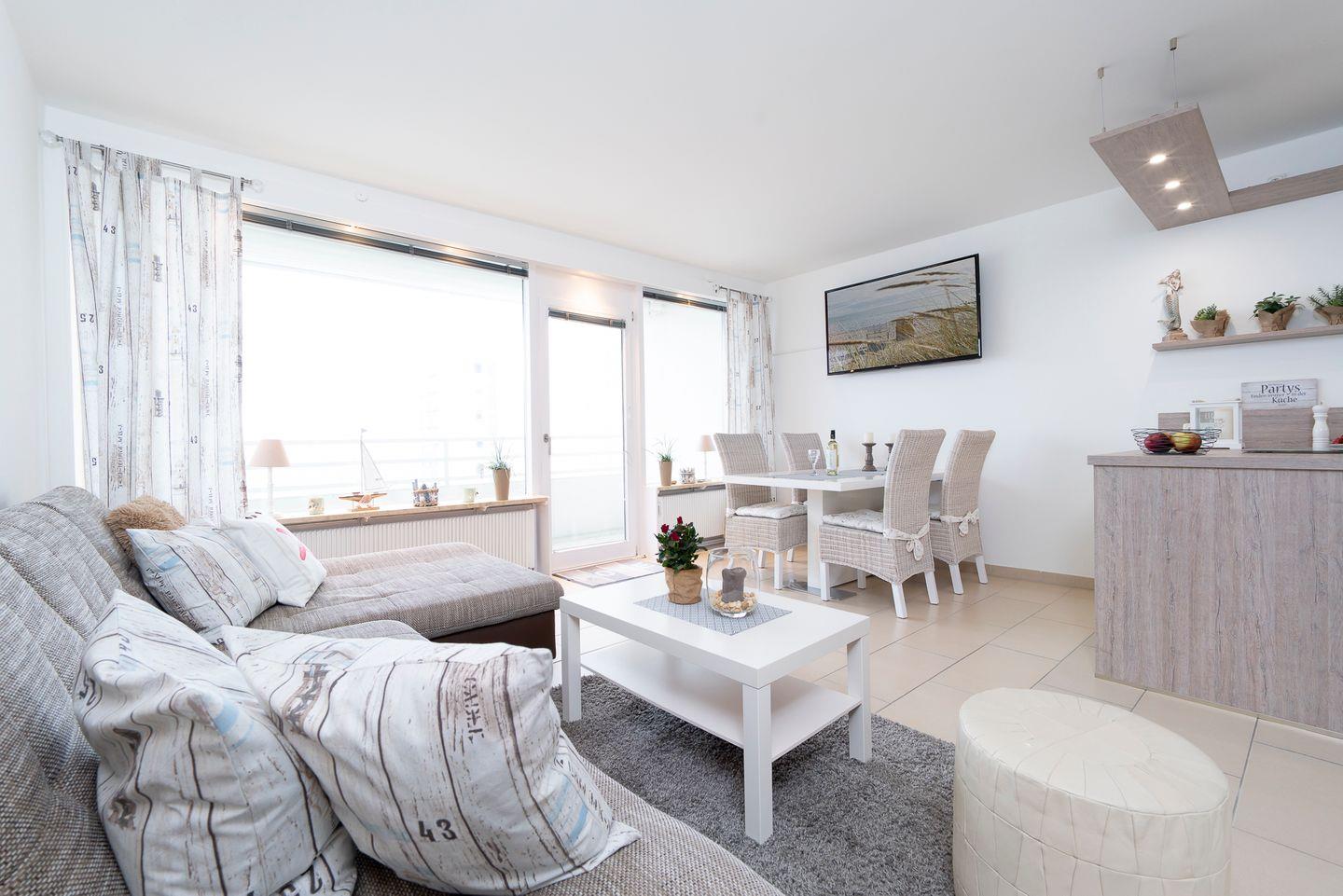 Helle 2-Zimmer-Ferienwohnung mit Balkon und Ostseeblick, nur 100 m vom Strand entfernt.