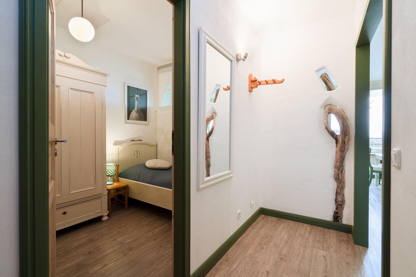 die mit viel Liebe zum Detail im schwedischen Stil eingerichtete Ferienwohnung liegt im Hochparterre mit einem Nord-Ost-Balkon und ein wenig Ostseeblick. Die mit Spülmaschine, Herd und kleinem Backofen ausgestattete Küche ist in den gemütlichen Wohn- und Essbereich integriert. Der innenliegende Schlafraum hat getrennte Betten. Im Wohnzimmer steht zudem ein Schlafsofa. Das moderne Duschbad ist innenliegend. Zum Strand sind es nur wenige Schritte.