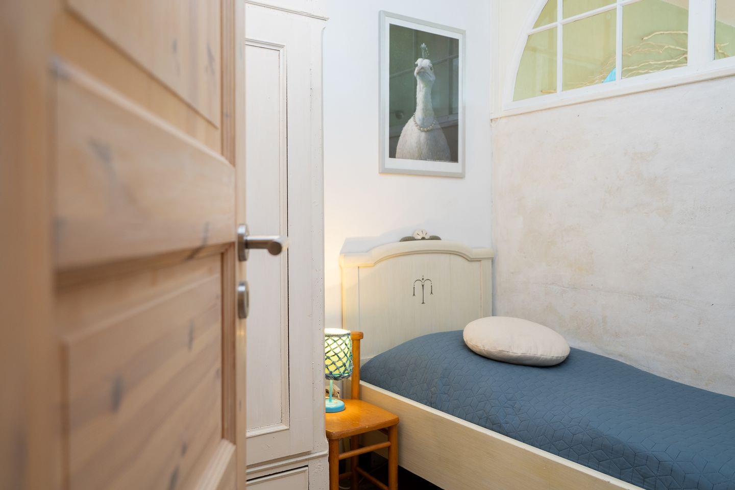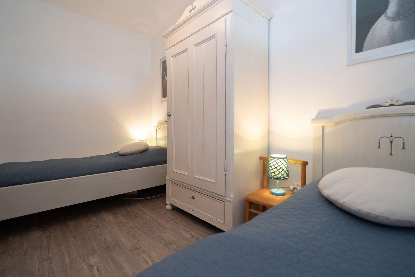 Das Schlafzimmer ist mit zwei getrennten Betten (80 cm x 195 cm) ausgestattet, die man nicht zusammenschieben kann.