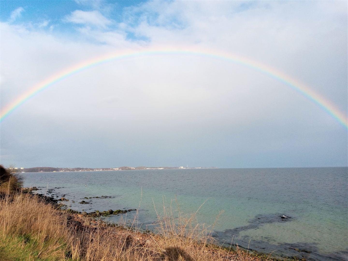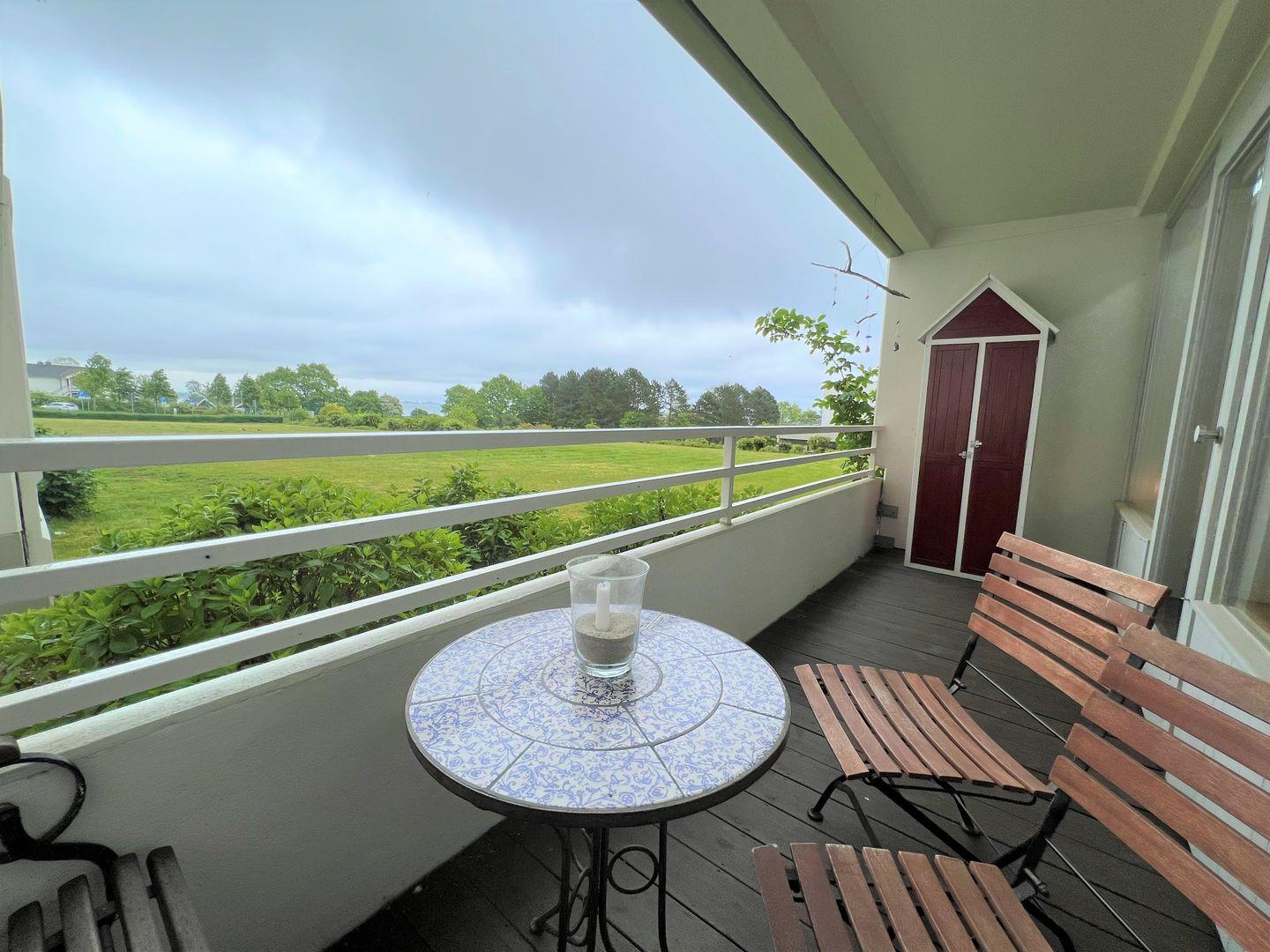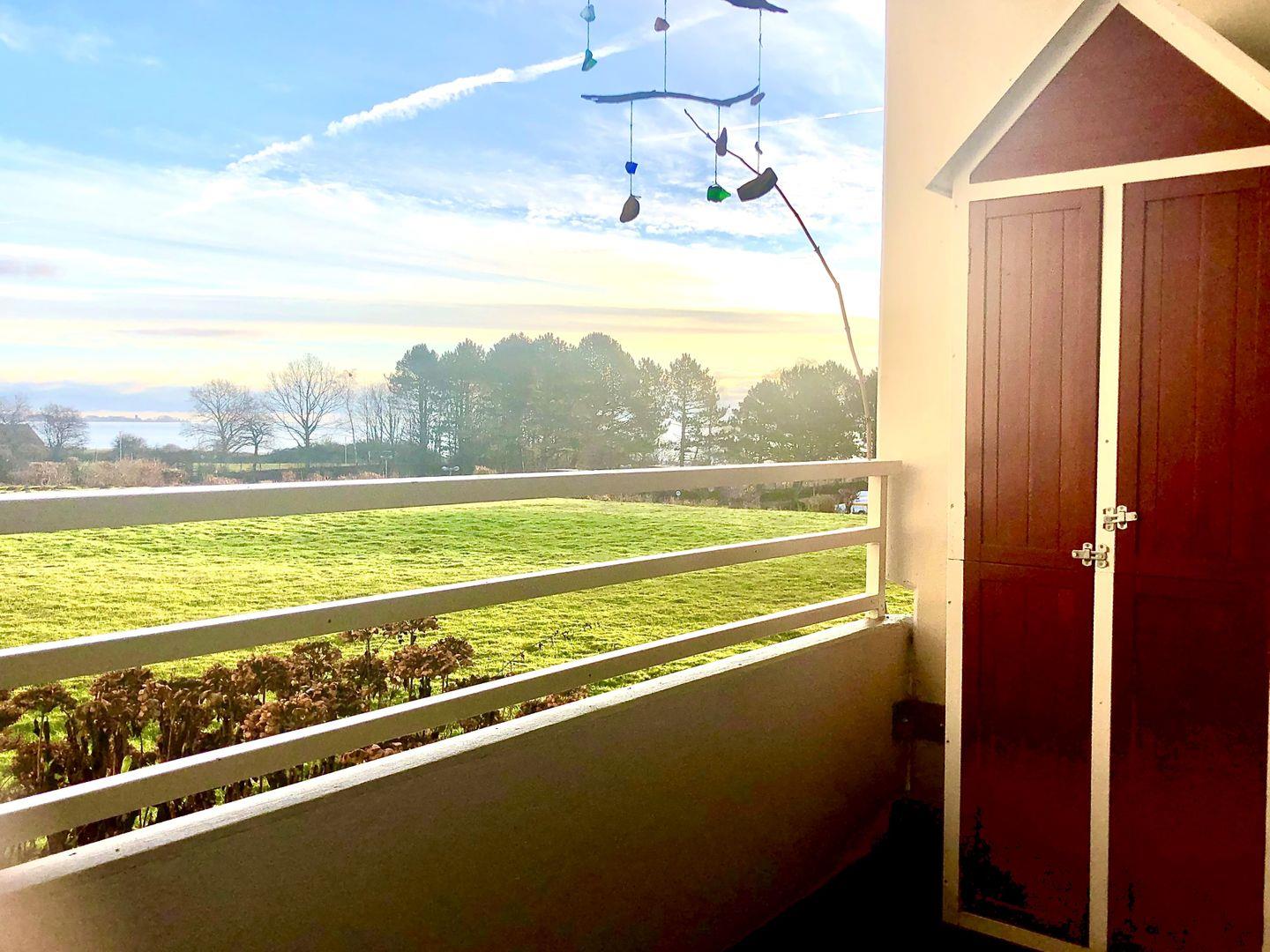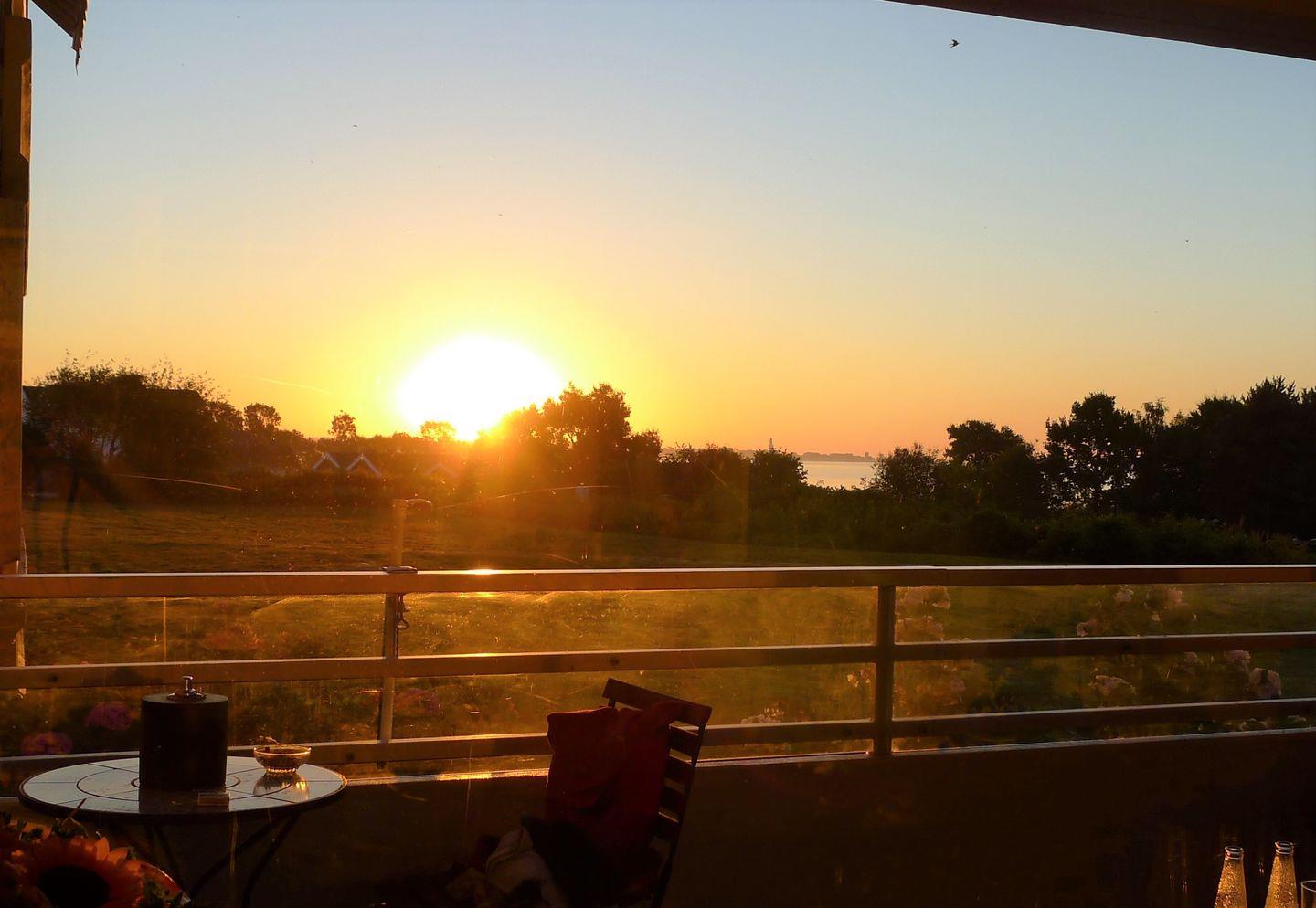 Vom möbliertem Nord-Ost-Balkon kann man auf einen Teil der Ostsee schauen. Zudem hat man u.a. einen entfernten Blick auf den Leuchtturm von Pelzerhaken, der abends mit seinem Lichtspiel beeindruckt.