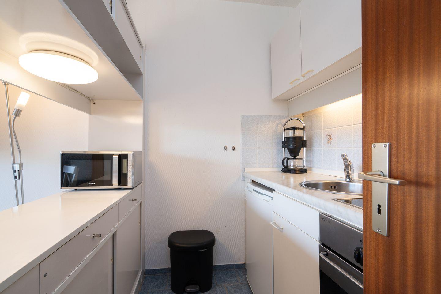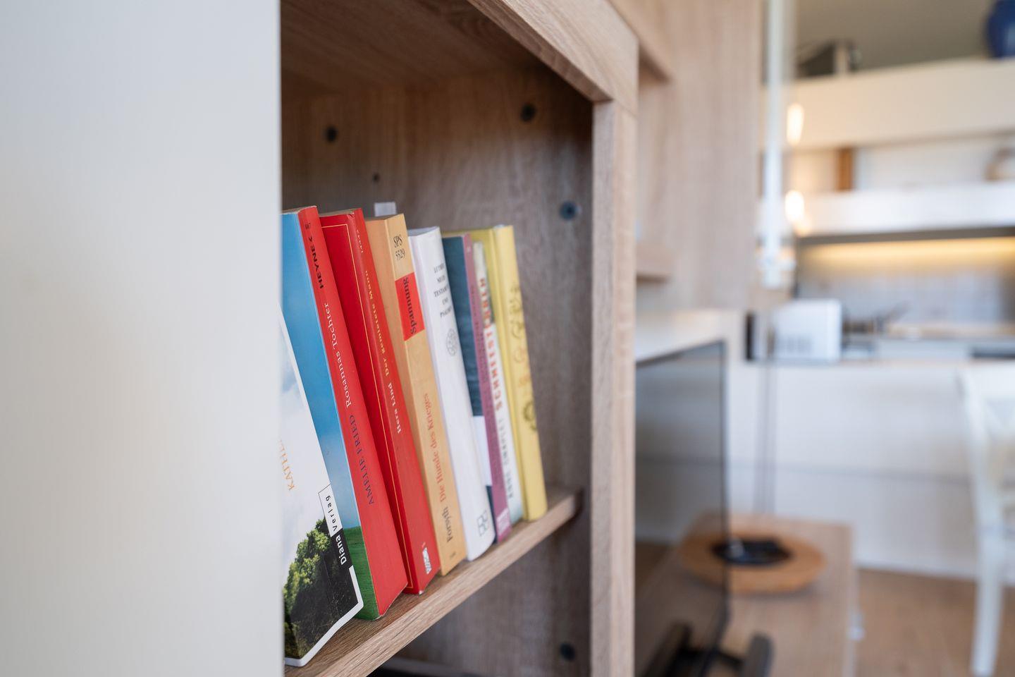 Das Appartement verfügt über ein geschmackvoll eingerichtetes Schlafzimmer, das bequem Platz für bis zu zwei Personen bietet. Hier finden Sie einen ruhigen Rückzugsort nach einem erlebnisreichen Tag am Strand. Das moderne Wohnzimmer, das offen mit der voll ausgestatteten Küche verbunden ist, schafft eine einladende Atmosphäre zum Entspannen und geselligen Beisammensein. Die Küche ist mit hochwertigen Küchenutensilien, einem Backofen, einem Ceranherd, einer Mikrowelle sowie einem Kühlschrank mit Gefrierfach ausgestattet – ideal, um eigene Mahlzeiten zuzubereiten.